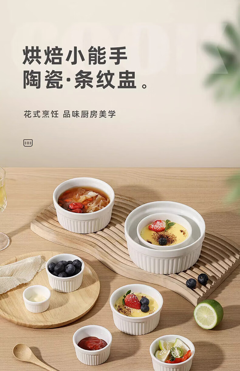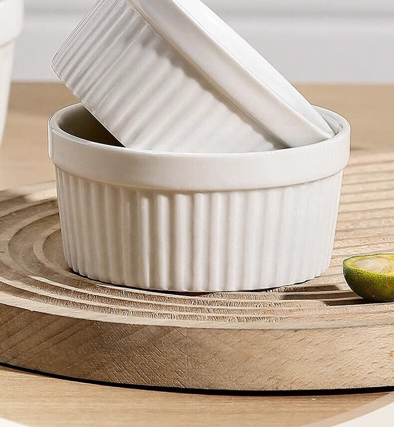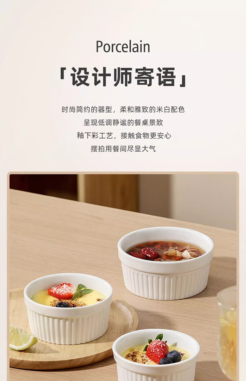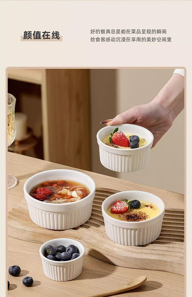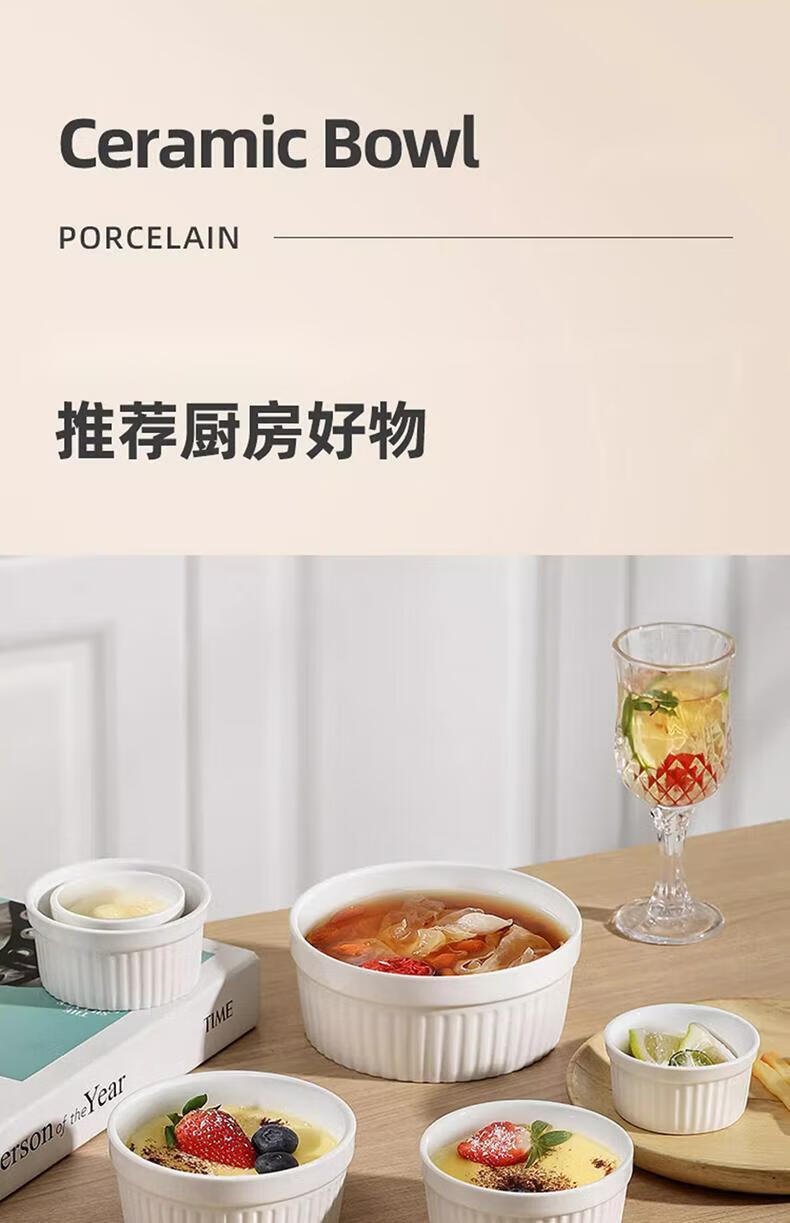 Porcelain Soul Ceramic Baking Bowl Bird's Nest Cup Baking Soufflé Home Oven Steamed Egg Bowl Pudding Yogurt Bowl White 4 Pack