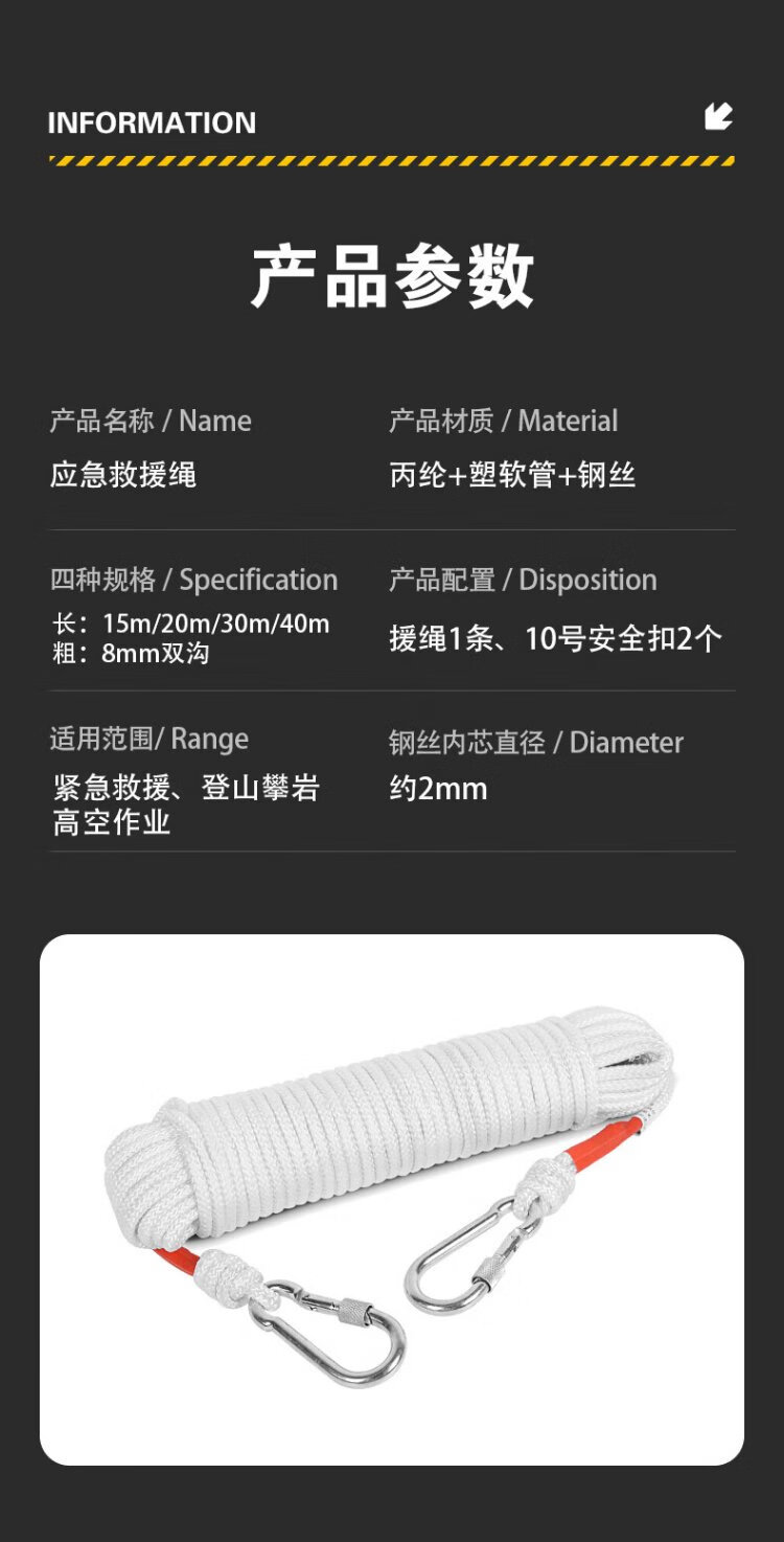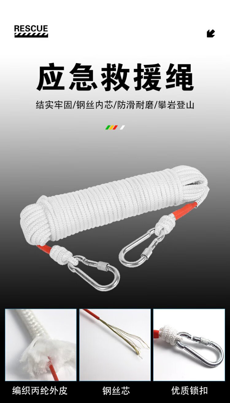 40,000 kilometers of steel wire emergency rope, high-altitude operation drill rope, high-rise residential mountain climbing, rock climbing, slow descent, flood prevention and rescue, double hook 15 meters