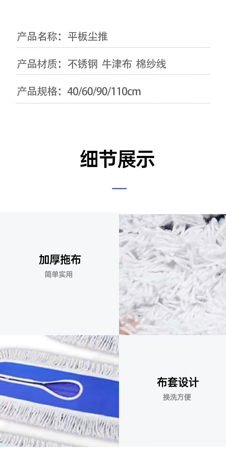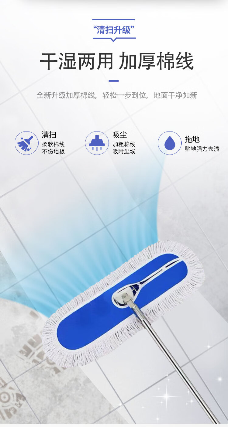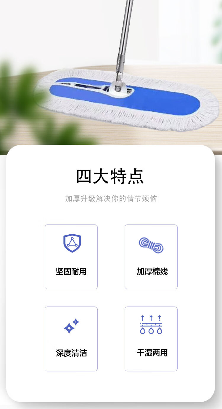 Hauskop flat mop 60cm commercial large factory workshop cleaning housekeeping office cotton line absorbent mop detachable