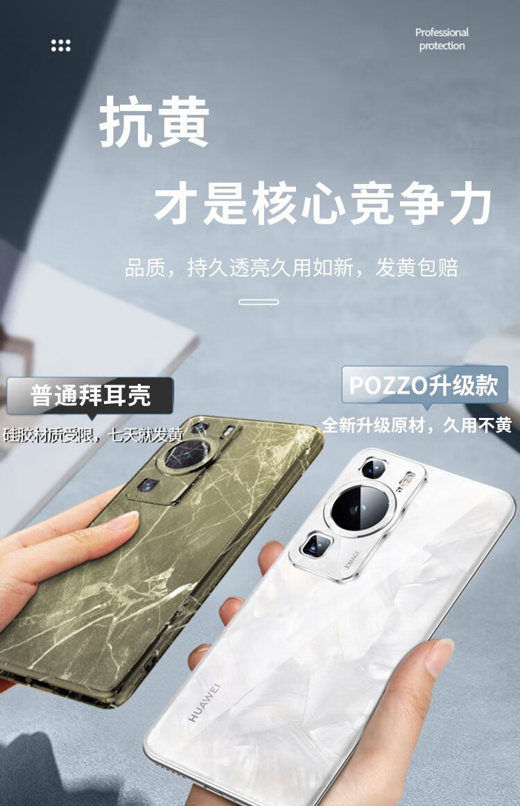POZZO Long-term use, no yellowing, suitable for Huawei P60/60Pro mobile phone case huaweiP60/60Pro protective cover, anti-fall, anti-fingerprint, all-inclusive, bare metal lens protection, fully transparent