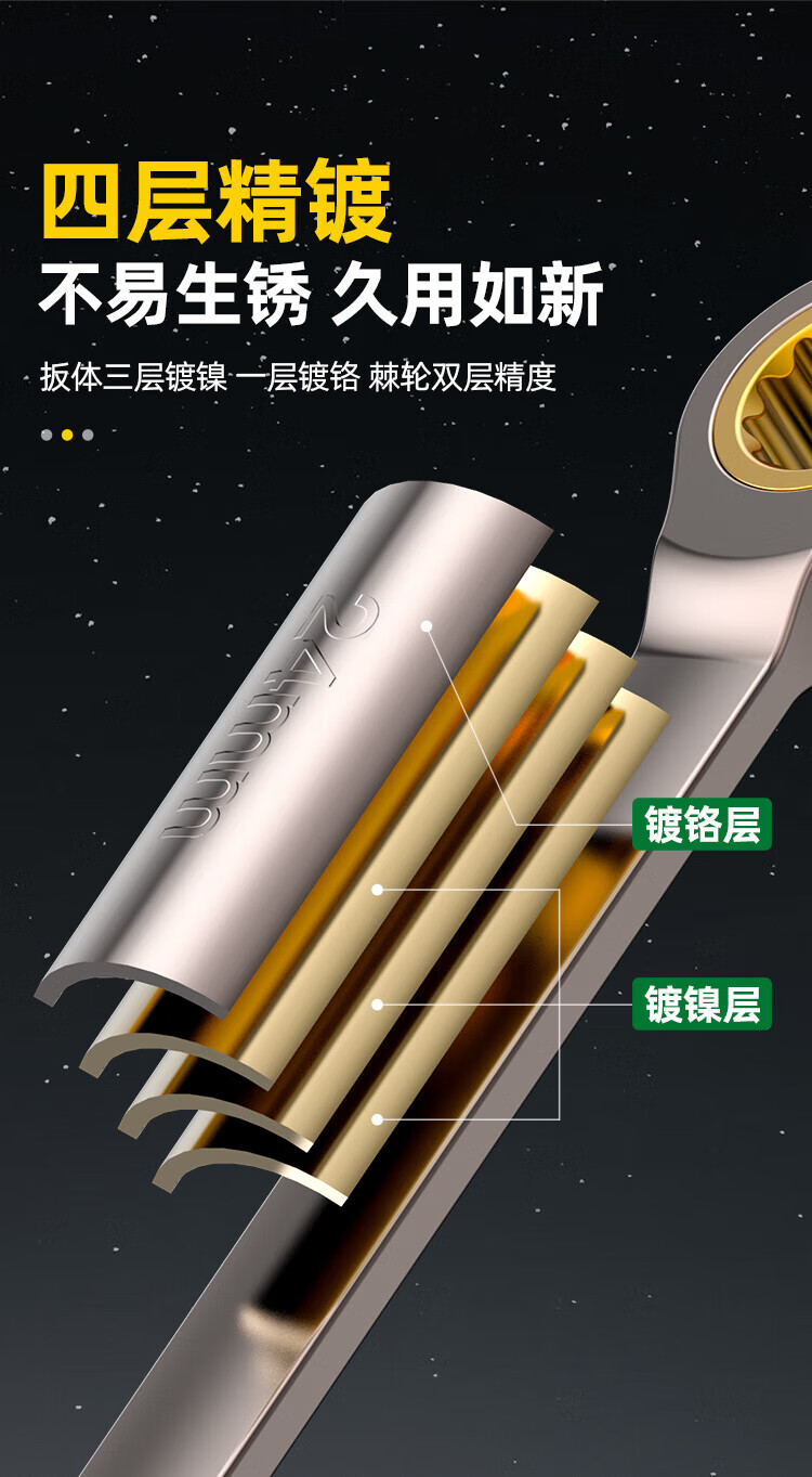 Shengda ratchet wrench dual-purpose automatic two-way wrench set quick pull double-headed open plum blossom wrench tool household 14mm