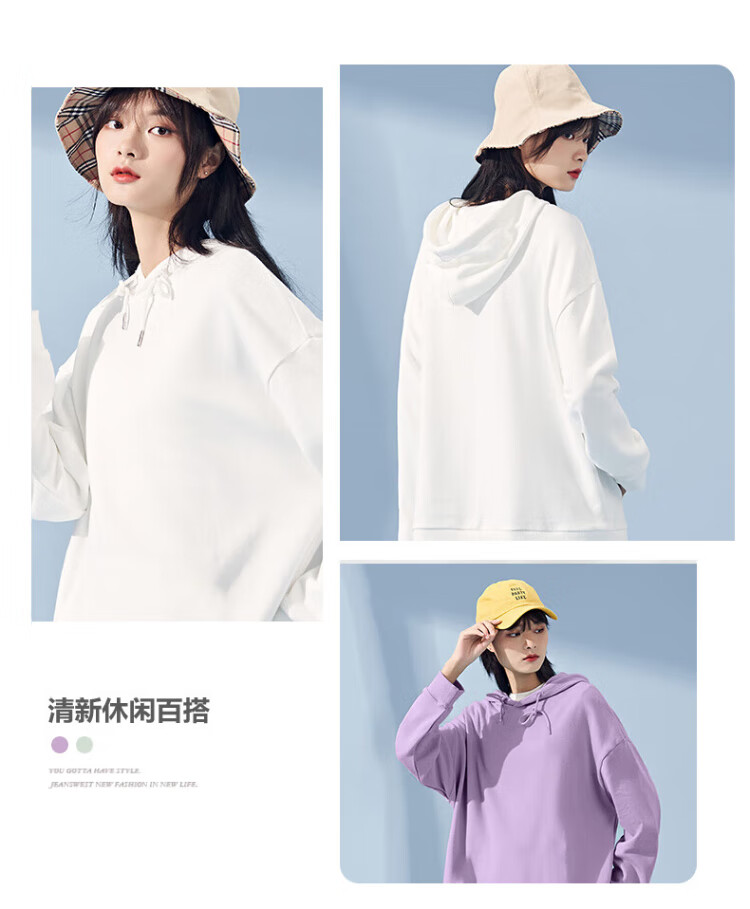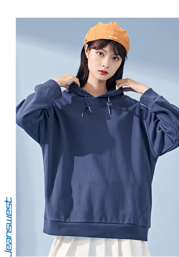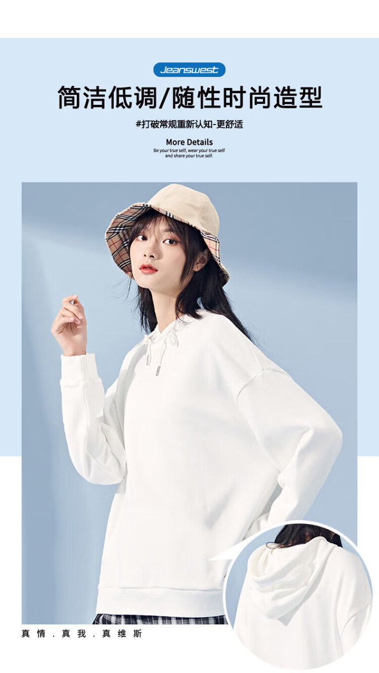 Jeanswest velvet sweatshirt for women winter warm thickened hooded top loose little man coat milky white L