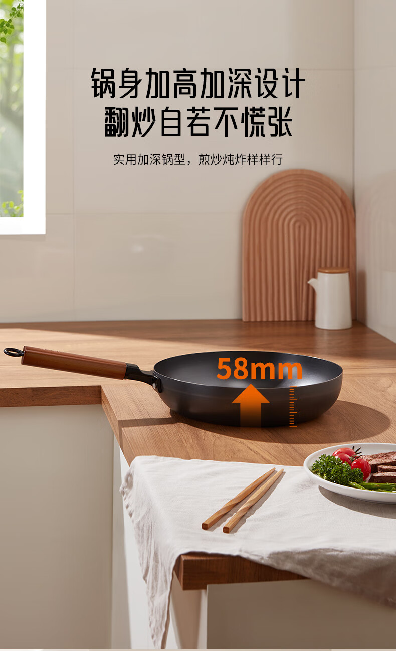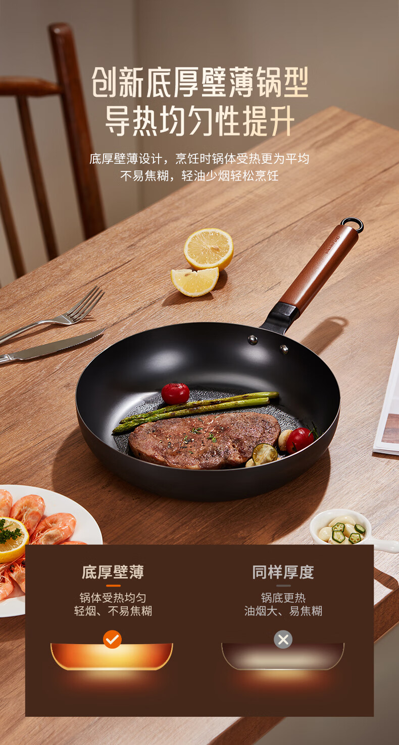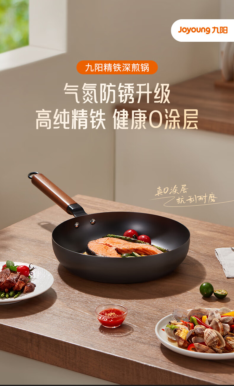 Joyoung frying pan, fine iron omelette pan, deepened pan, breakfast pan, steak, household induction cooker, gas stove, universal 24cm