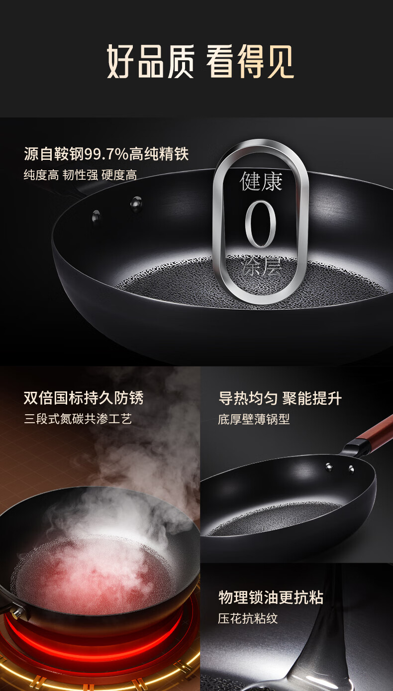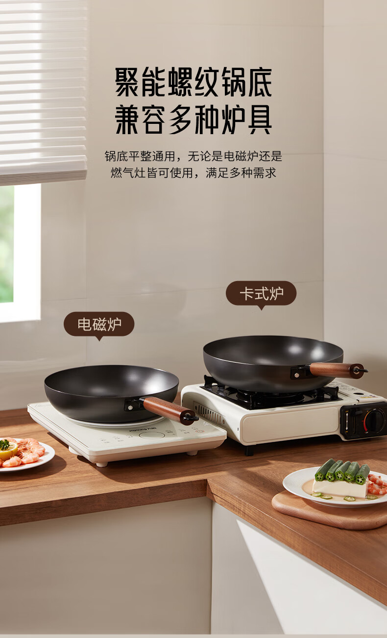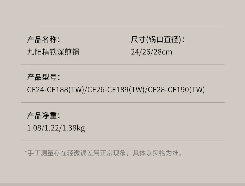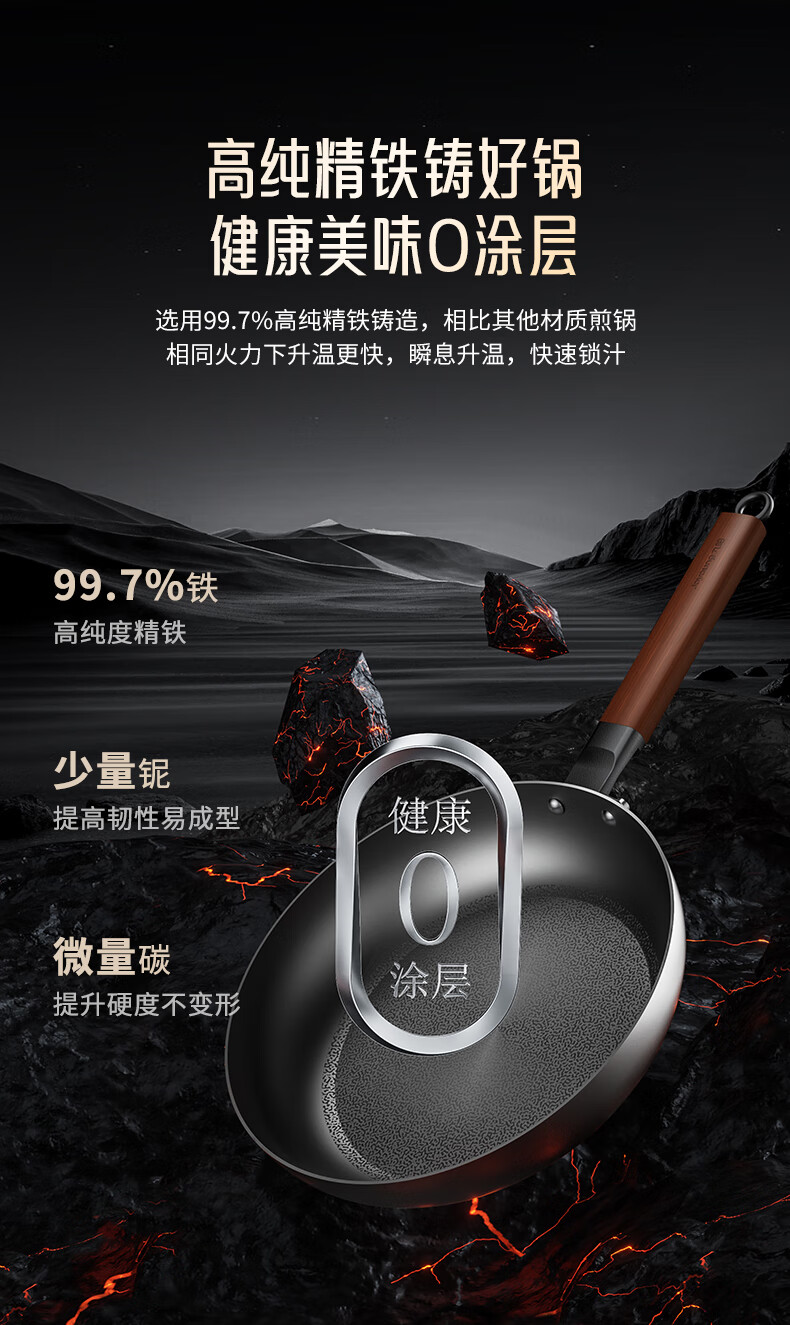 Joyoung frying pan, fine iron omelette pan, deepened pan, breakfast pan, steak, household induction cooker, gas stove, universal 24cm