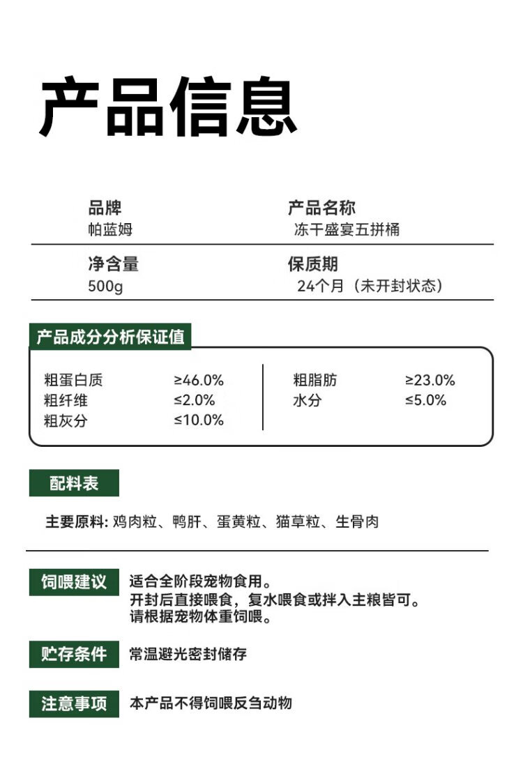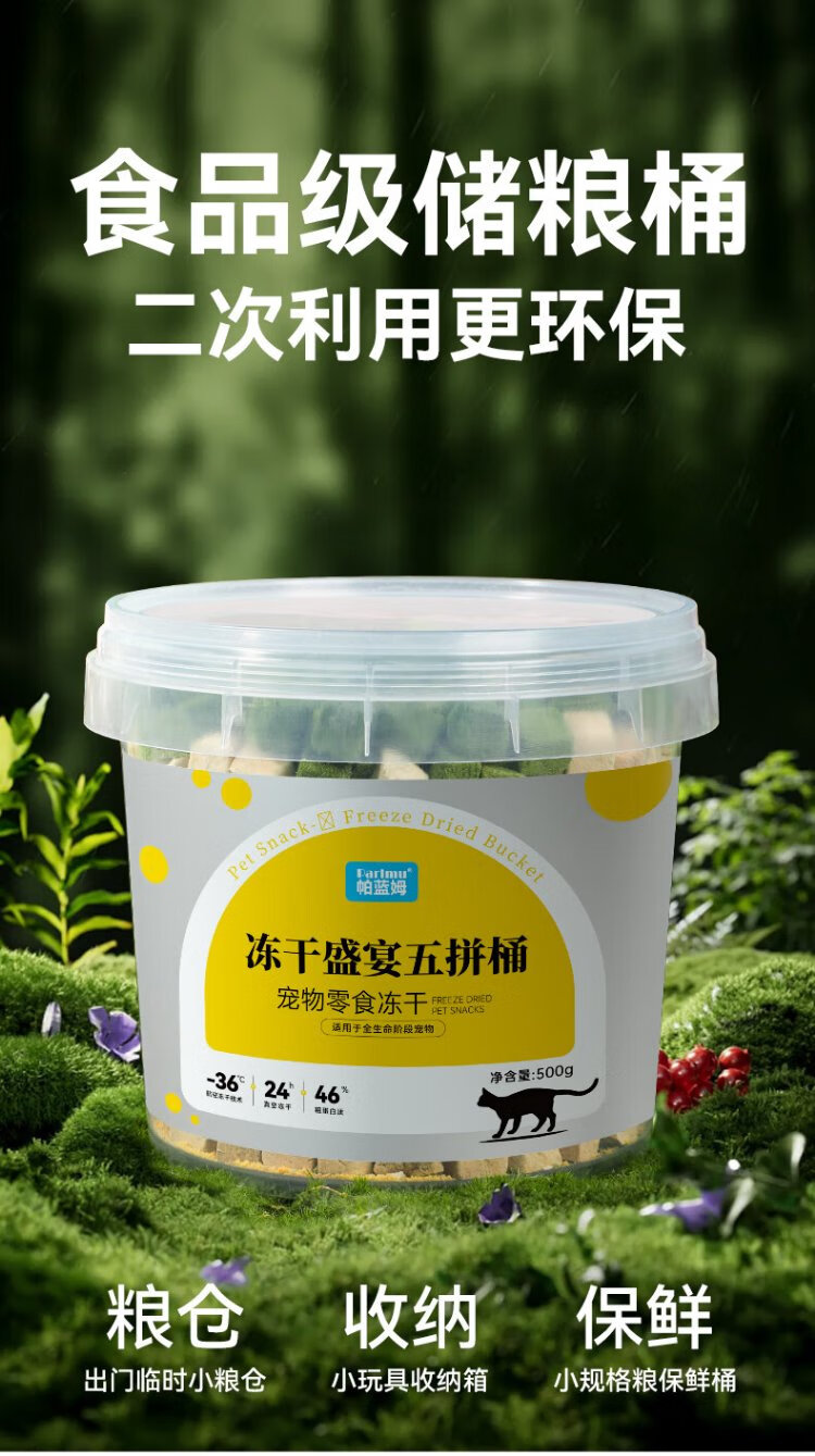 Parlmu Parlam freeze-dried cat snacks dog snacks chicken breast freeze-dried chicken cubes 5 kinds of mixed freeze-dried bucket 500g