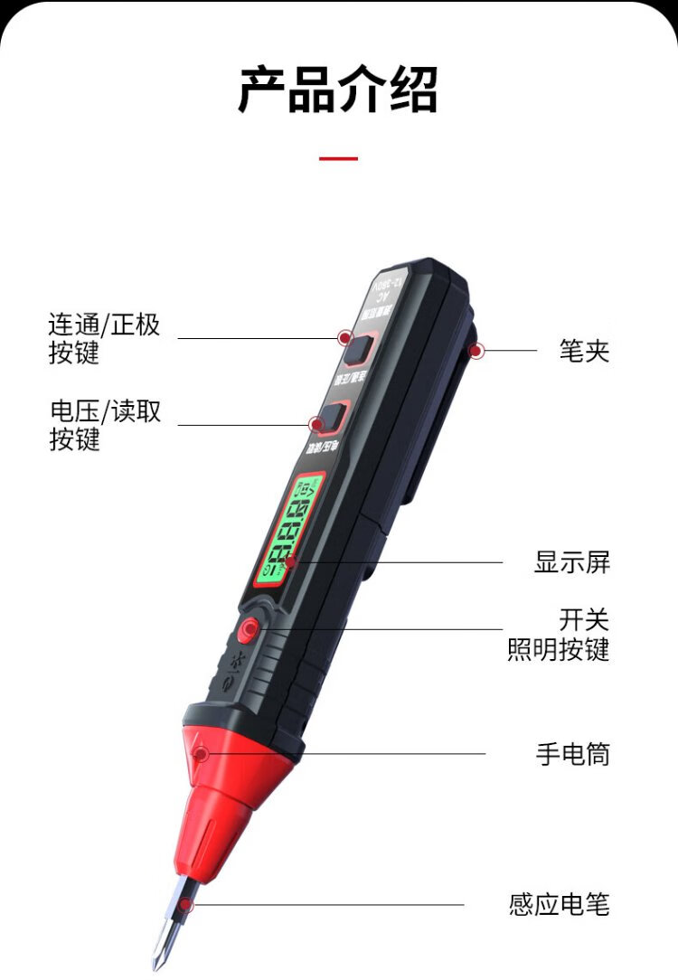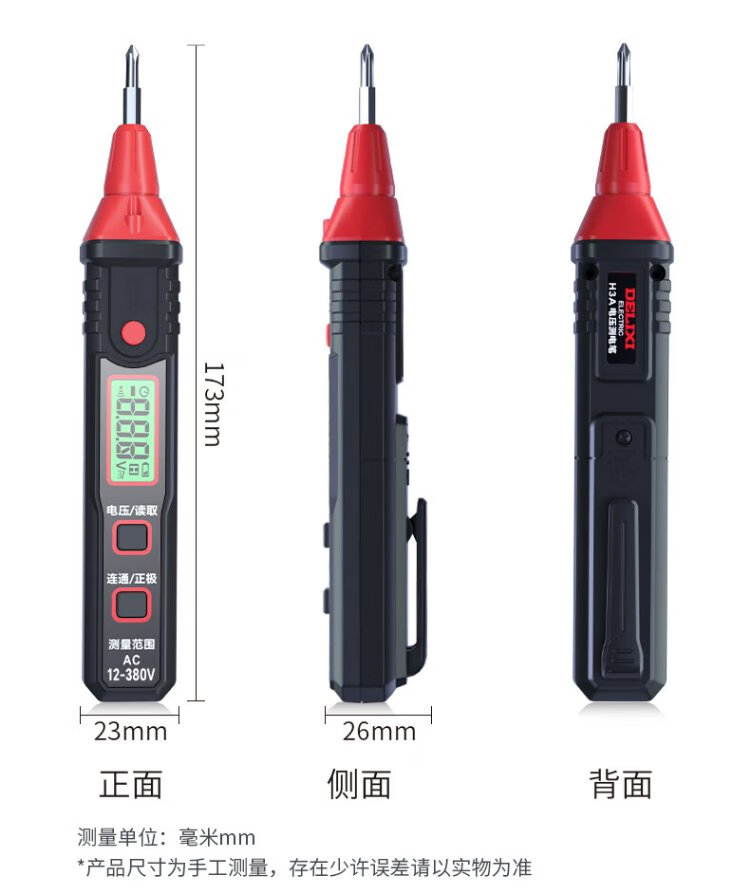 Delixi Electric Test Pen Multifunctional Digital Display Intelligent Induction Electrician Test Pen 380V Removable Batch H3A Test Pen