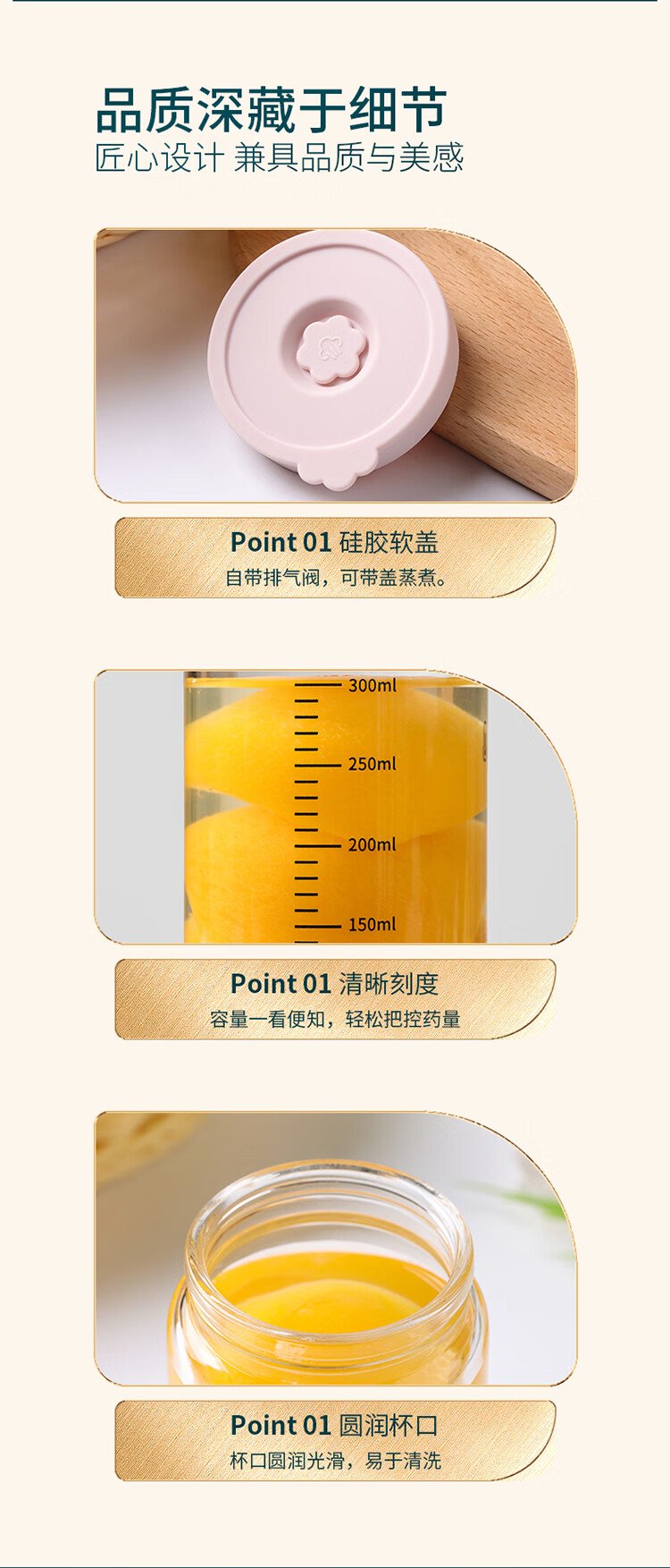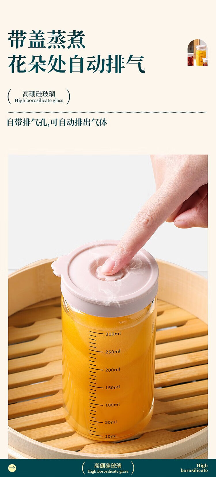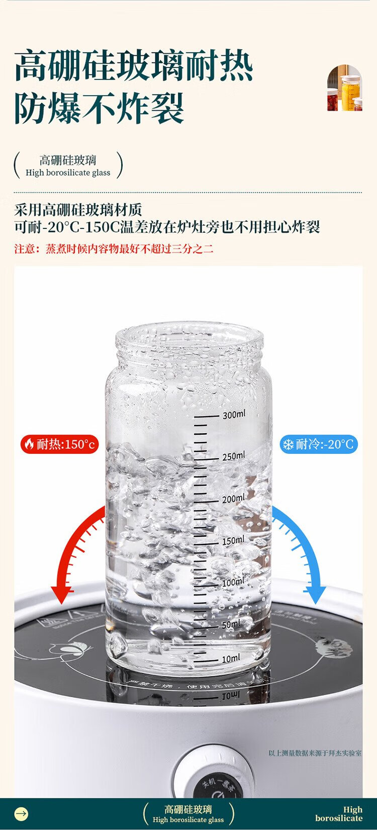 Baijie sealed jar bird's nest Chinese medicine sub-bottle can be steamed high borosilicate glass bottle bird's nest cup jam storage jar 500ml