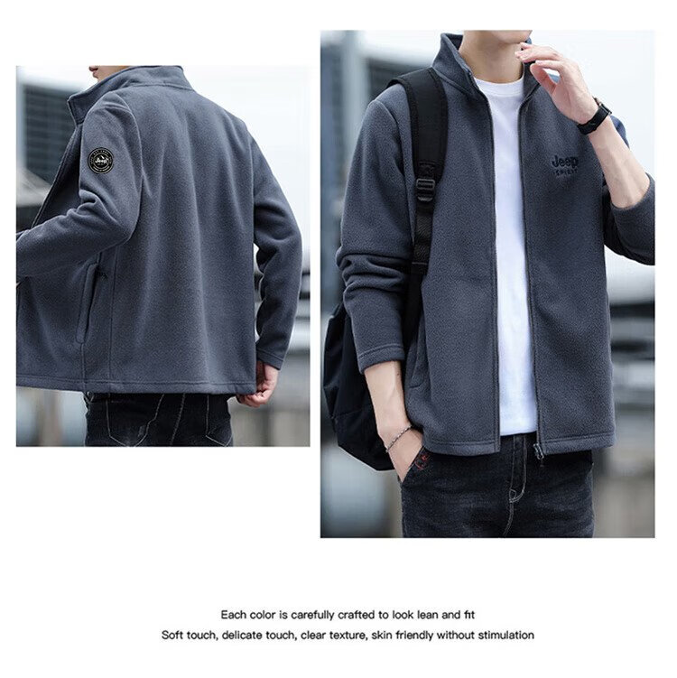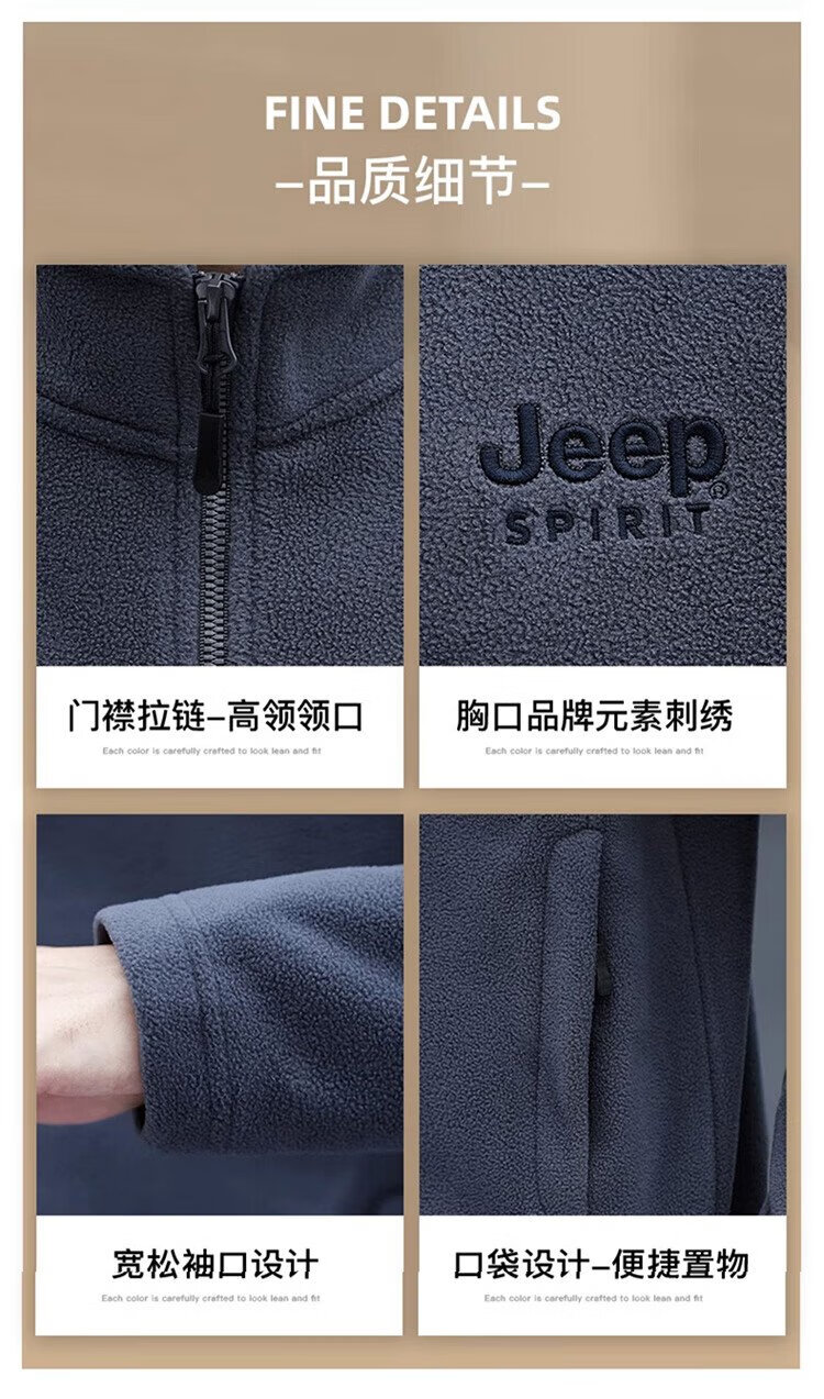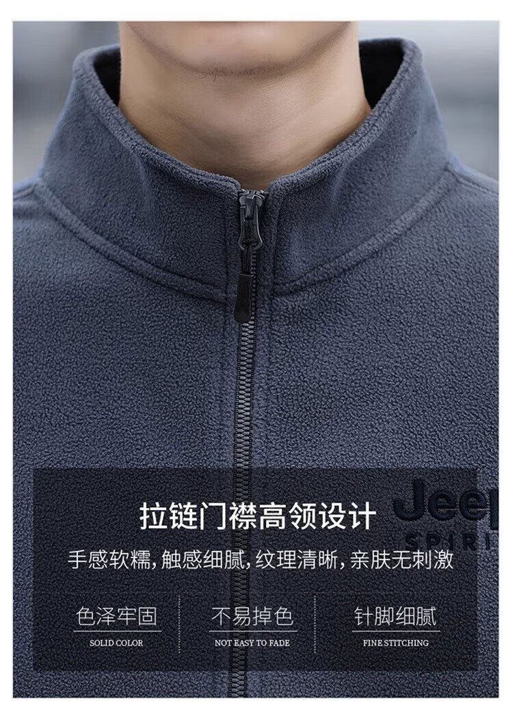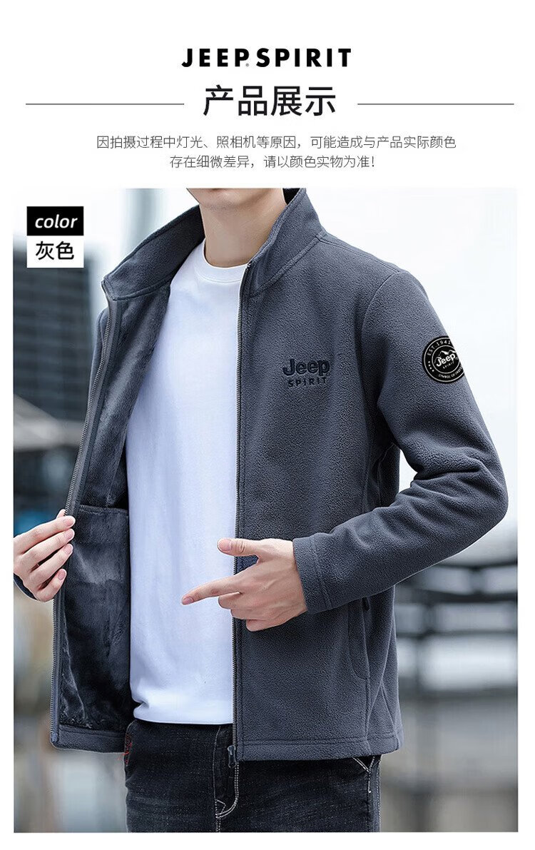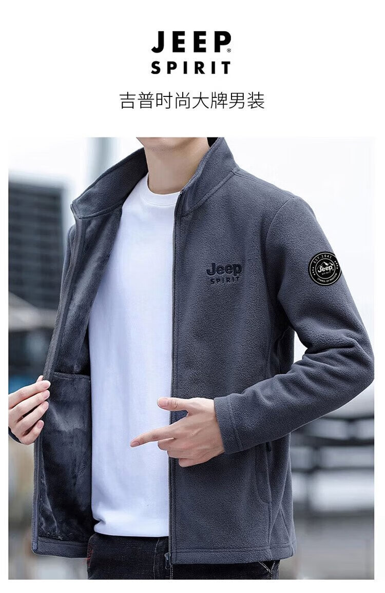 JEEP SPIRIT Jeep jacket men's cardigan sweatshirt men's autumn and winter men's long-sleeved loose casual trendy brand polar fleece clothes