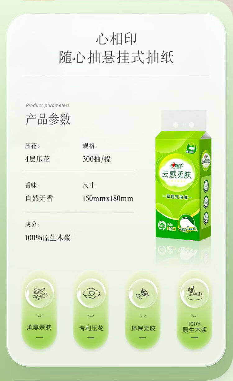 Heart to Heart, Tian Xuning's same style, paper hanging type, cloud-like soft skin, 4 layers, 300 pumps*6 lifts, thickened and upgraded, hanging pump