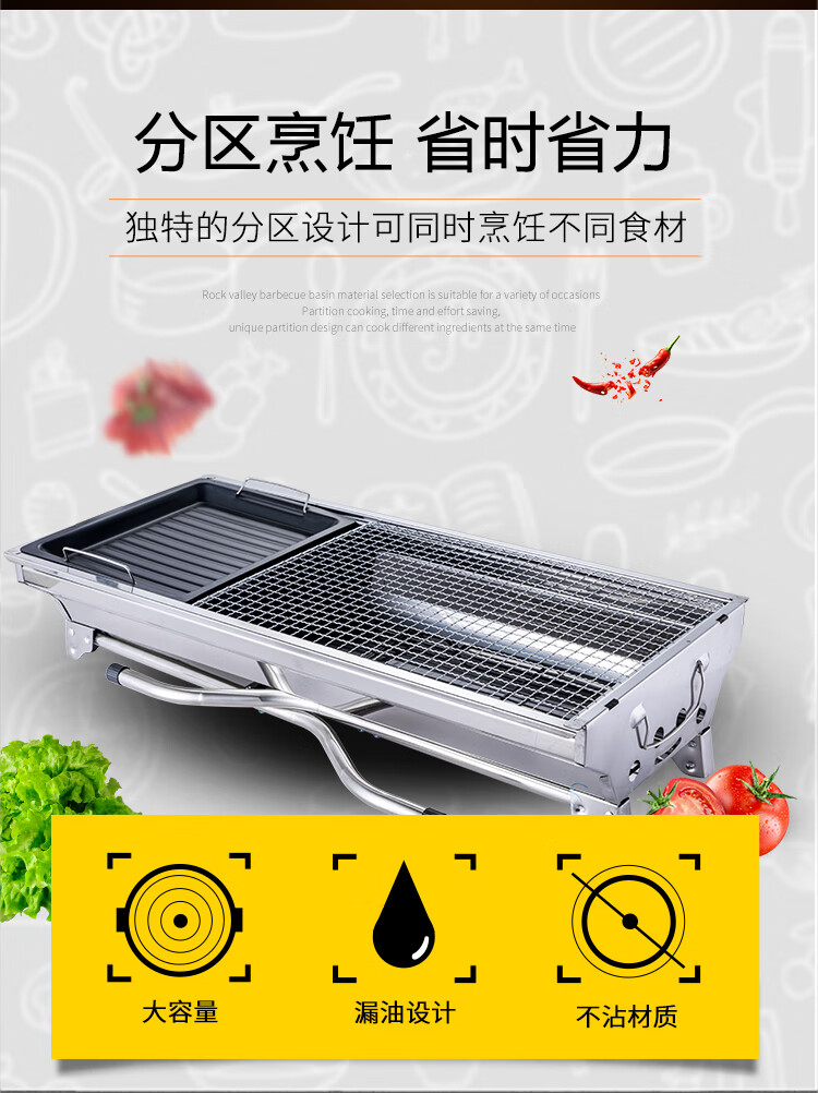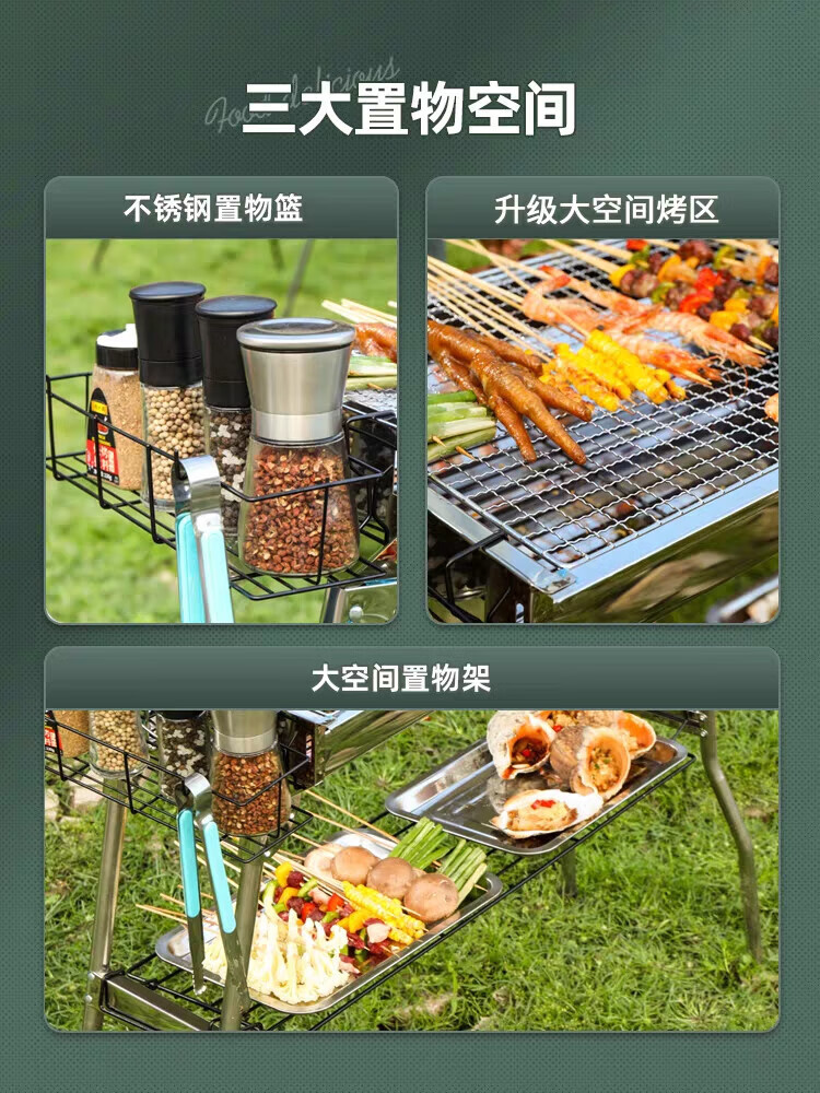 Muhuo grill household stainless steel grill portable foldable charcoal grill charcoal grill basic model