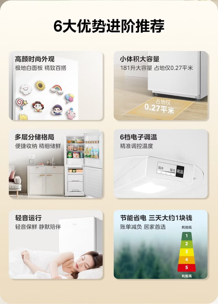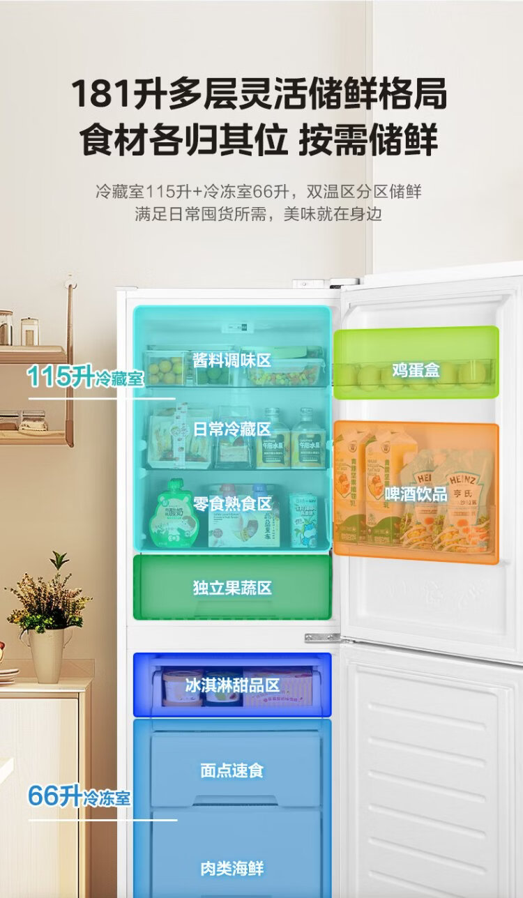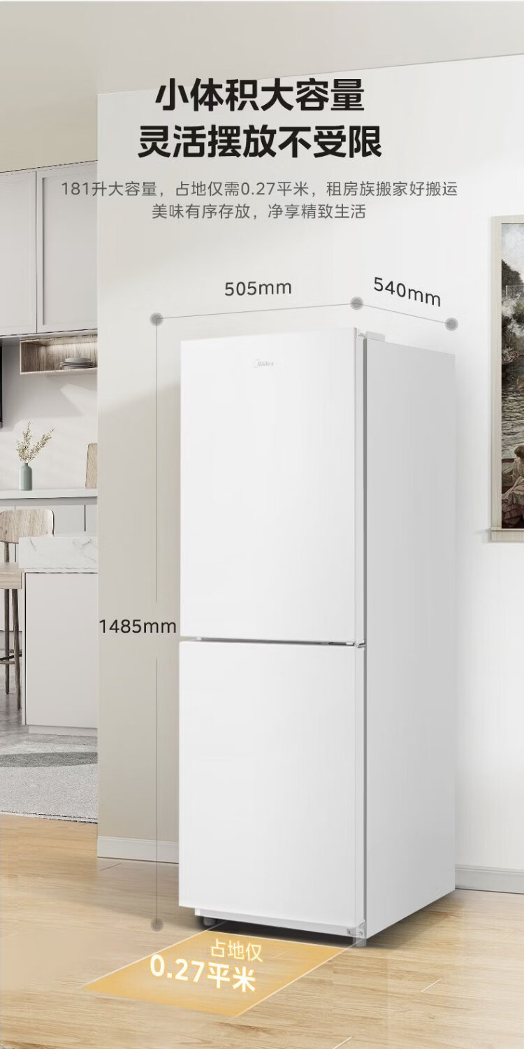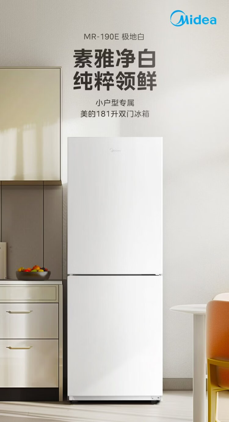 Midea 181 liter two-door refrigerator white two-door small living room home refrigerator rental dormitory bass energy-saving low noise can be refrigerated and frozen does not occupy an area MR-190E