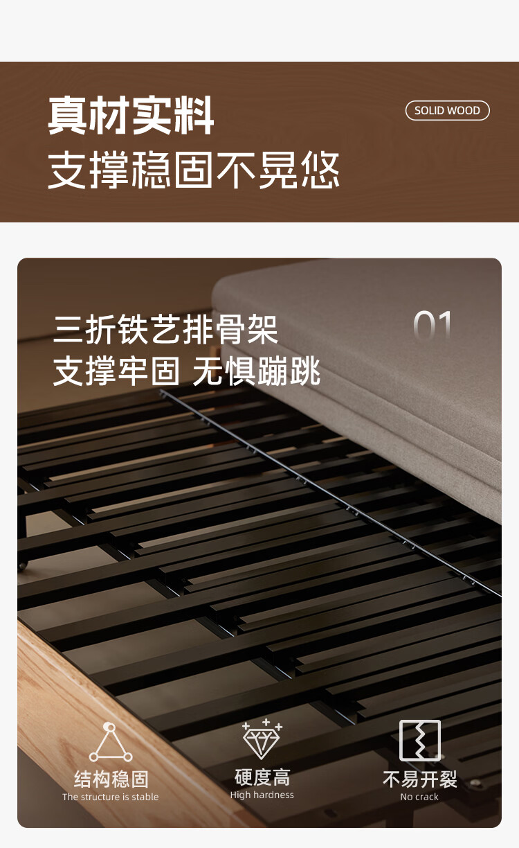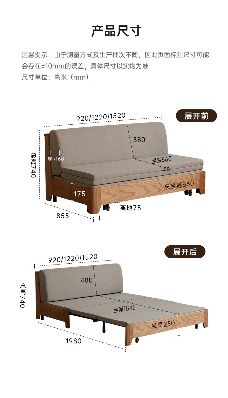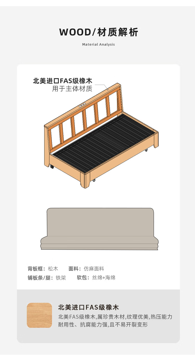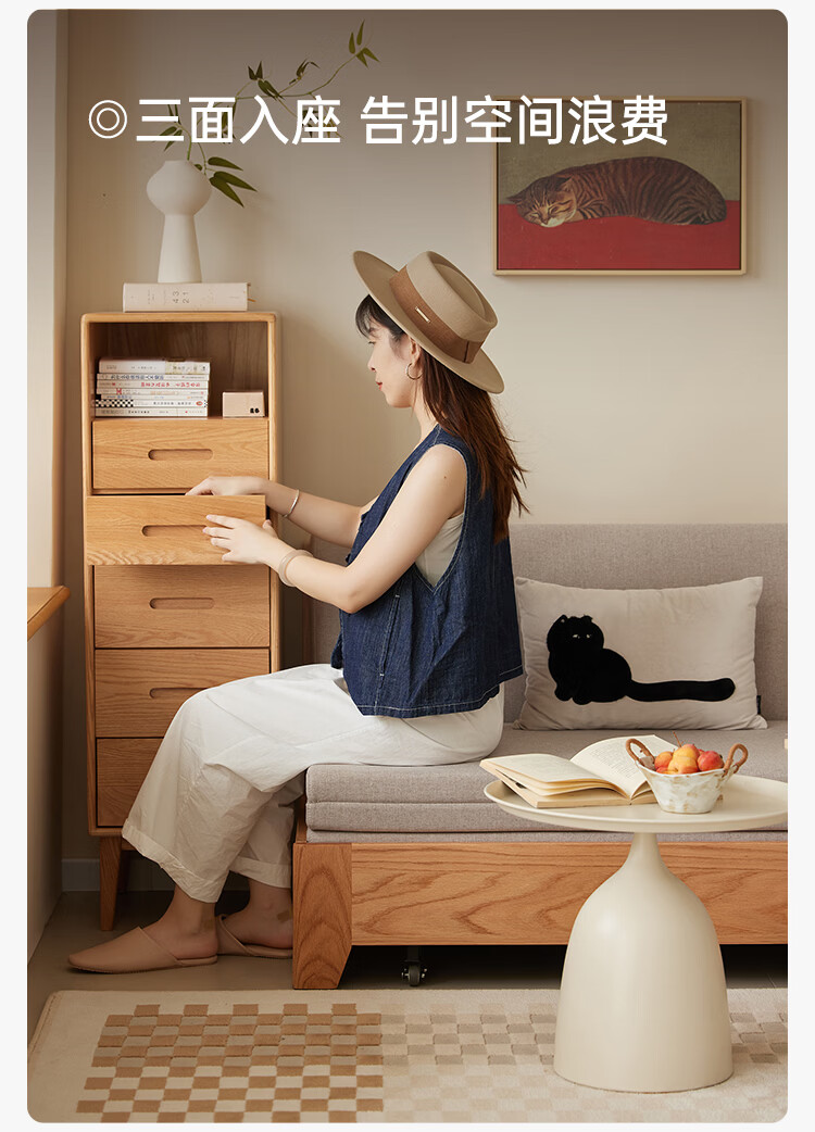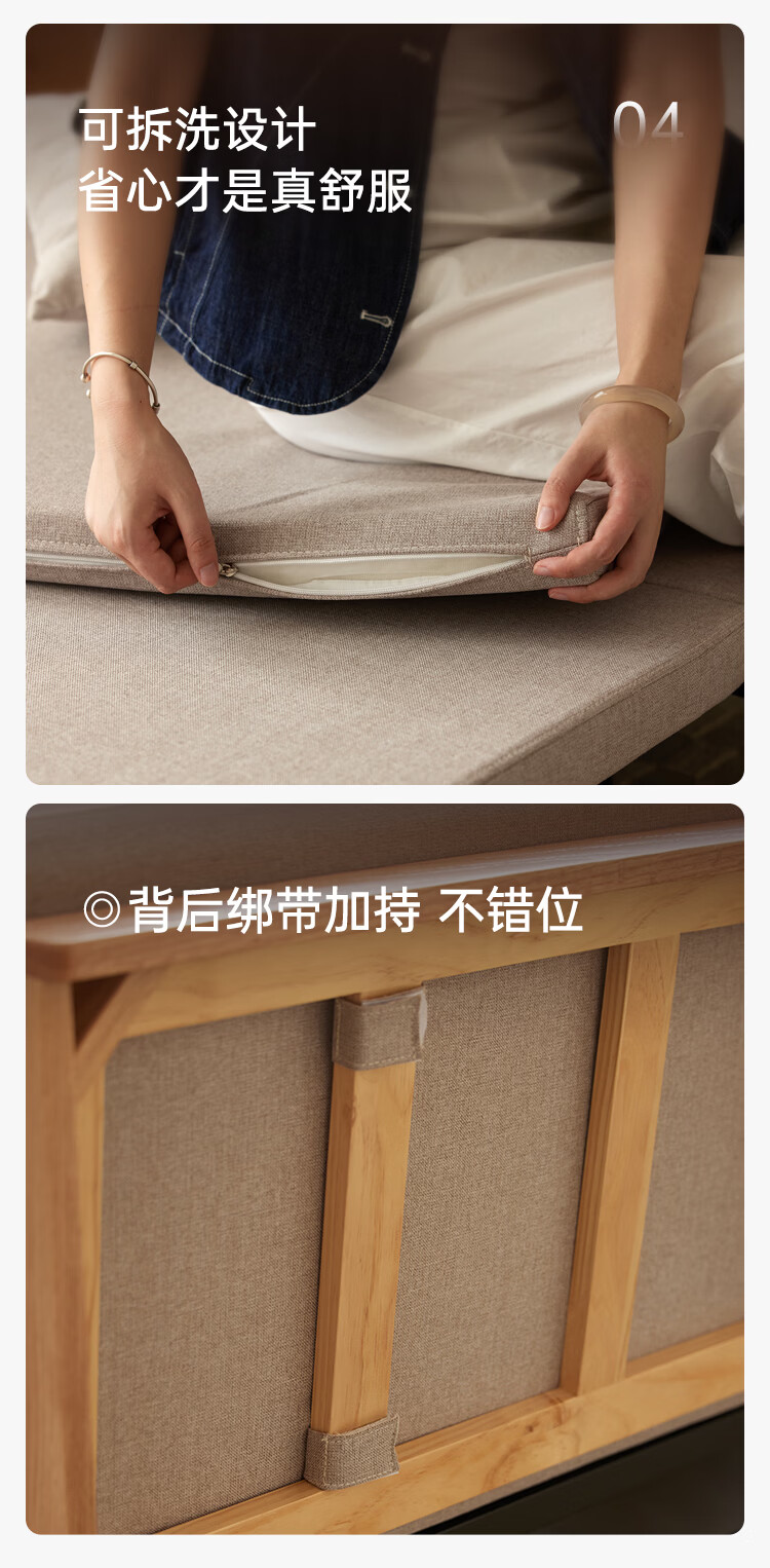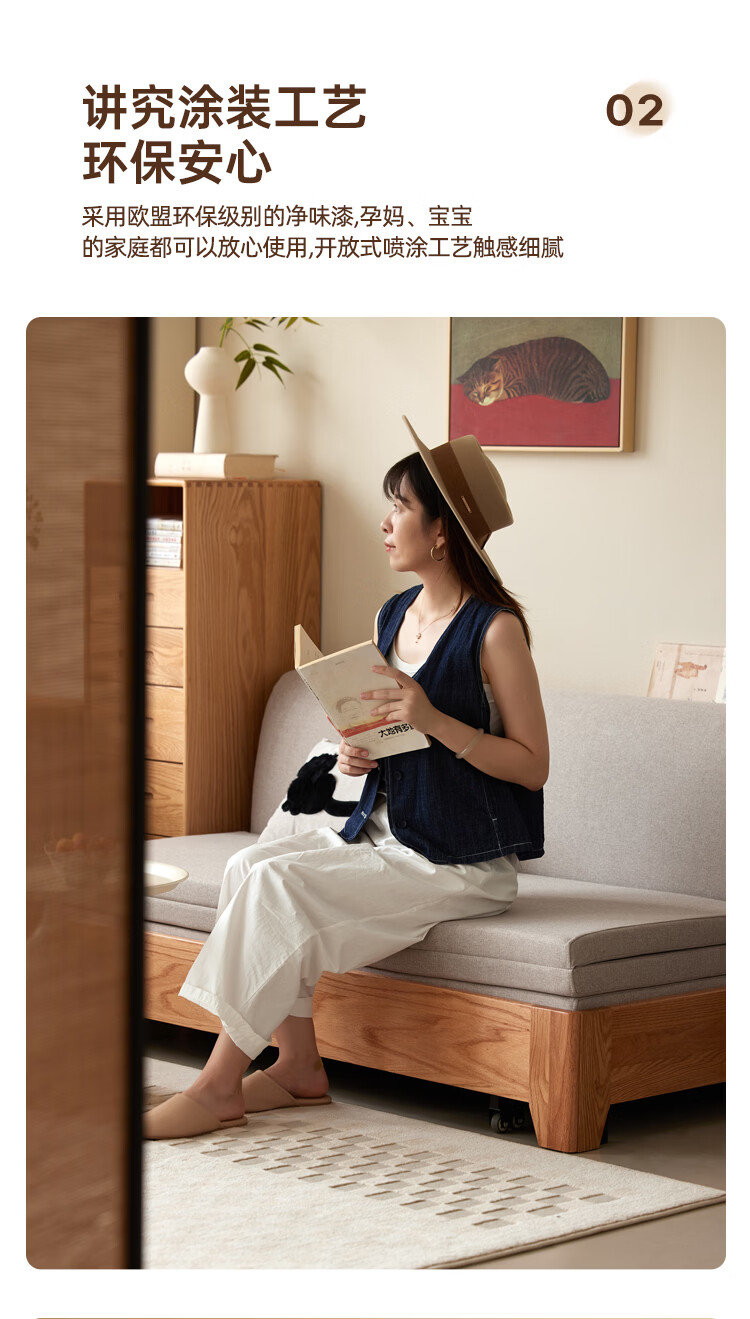 Original element modern simple solid wood sofa bed small apartment multi-functional folding 1.2m light beige N1067