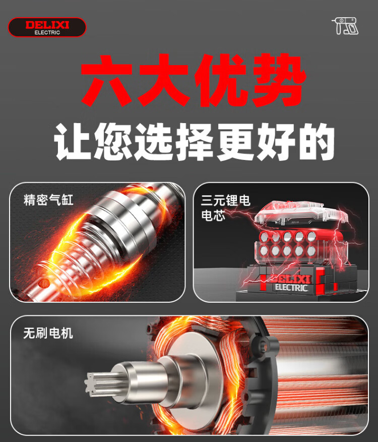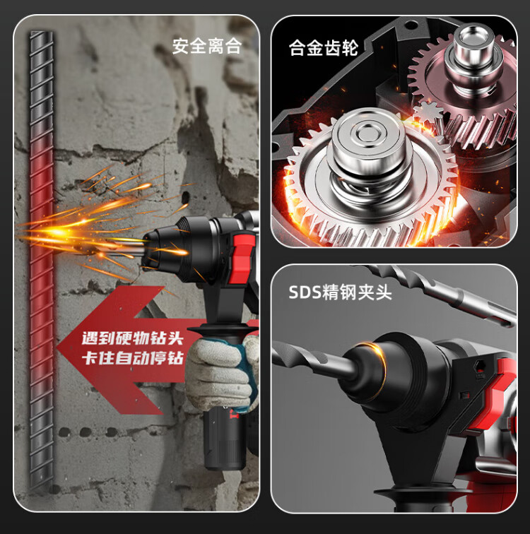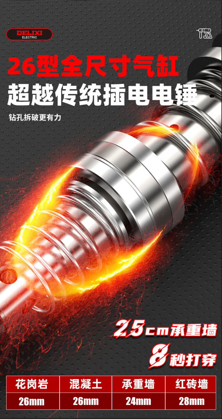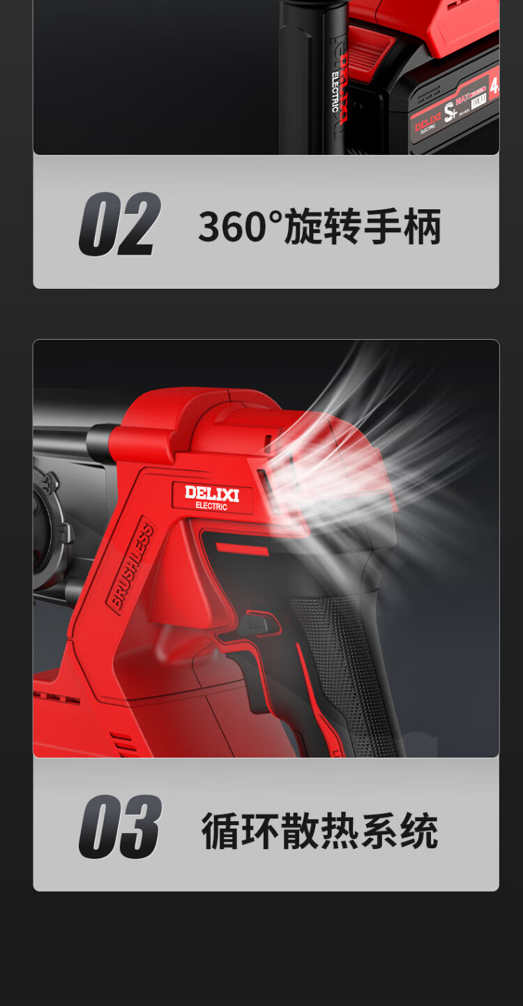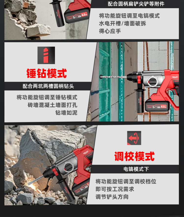 Delixi Electric 21V brushless lithium battery rechargeable electric hammer electric pick impact drill household multi-functional three-use high-power power tool