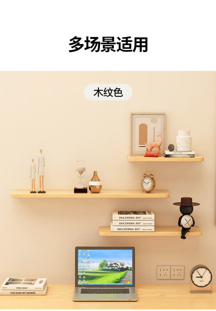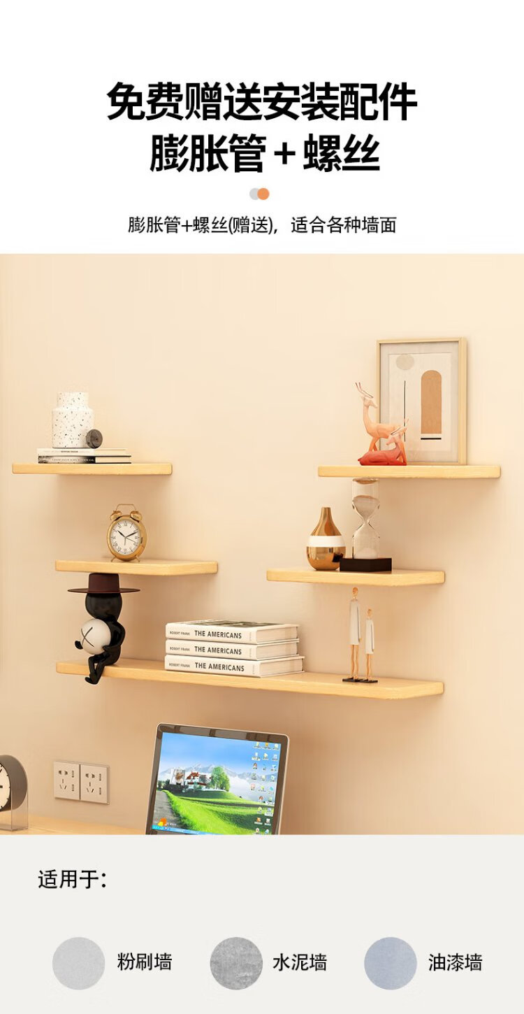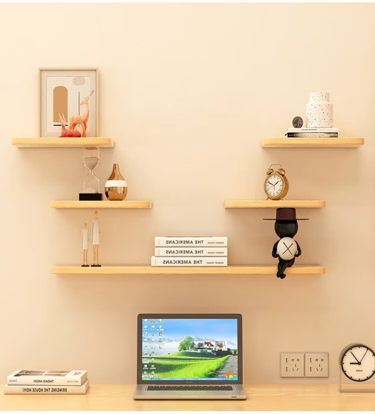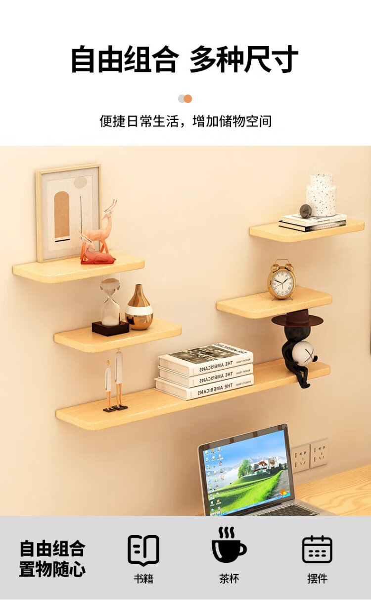 Fanshe living room wall one-word partition storage rack bedroom bedside wall simple storage bookshelf wood grain color 40cm