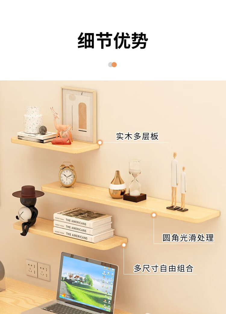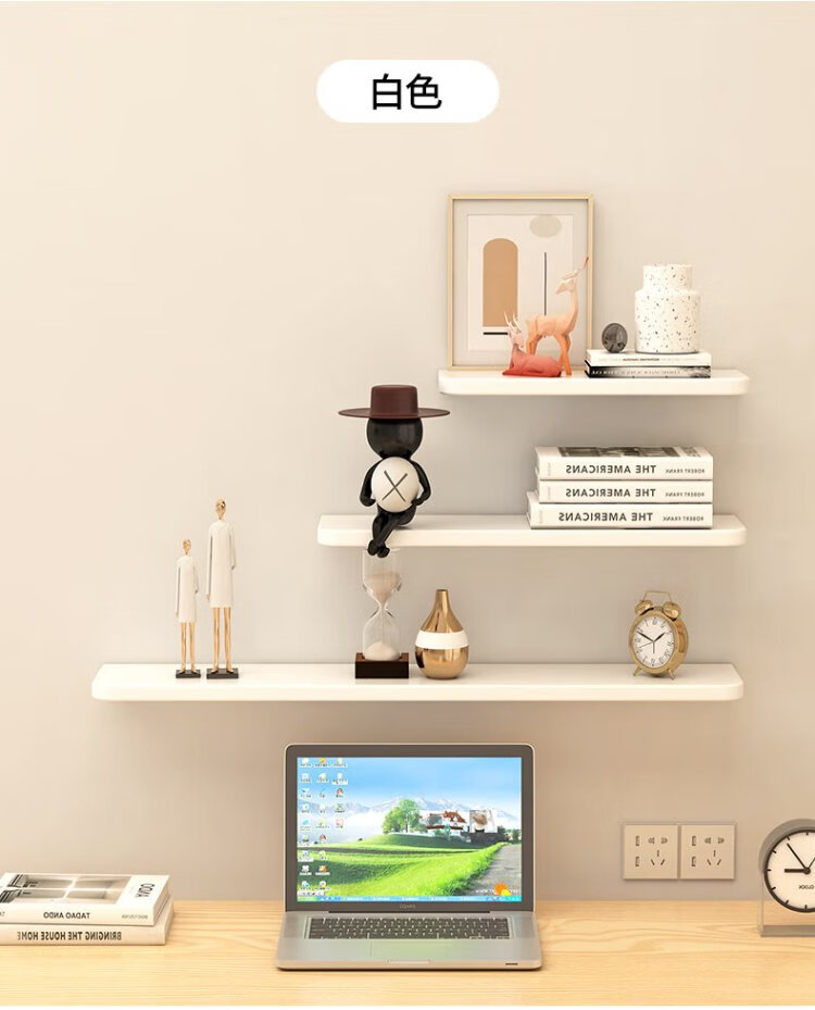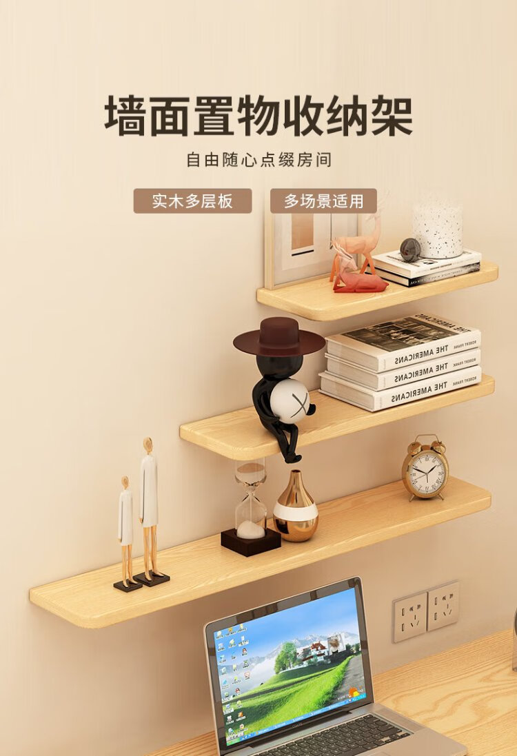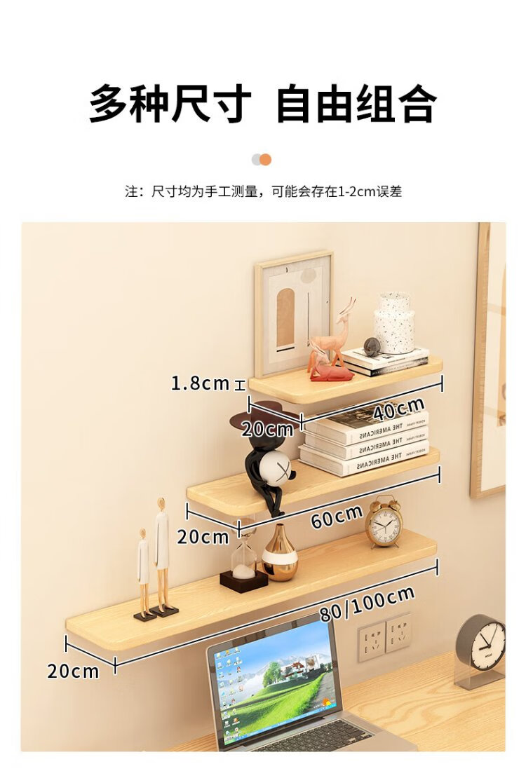 Fanshe living room wall one-word partition storage rack bedroom bedside wall simple storage bookshelf wood grain color 40cm