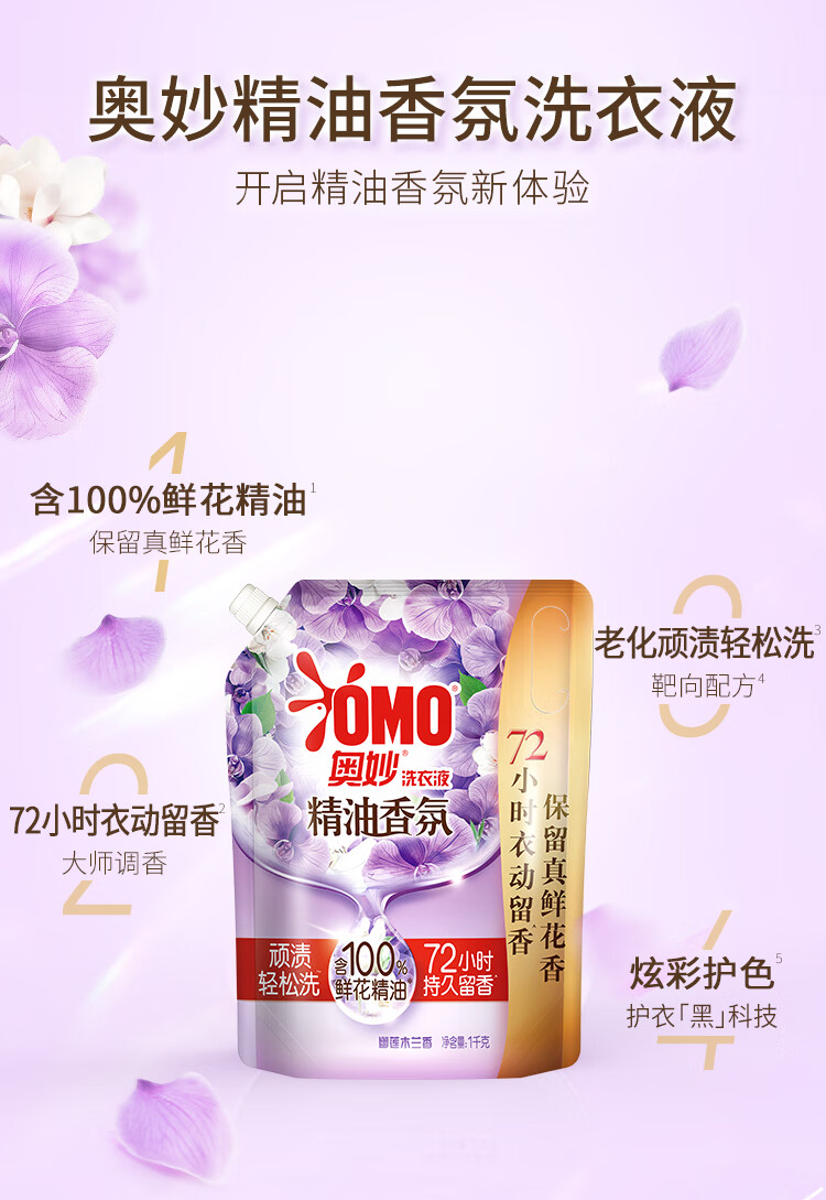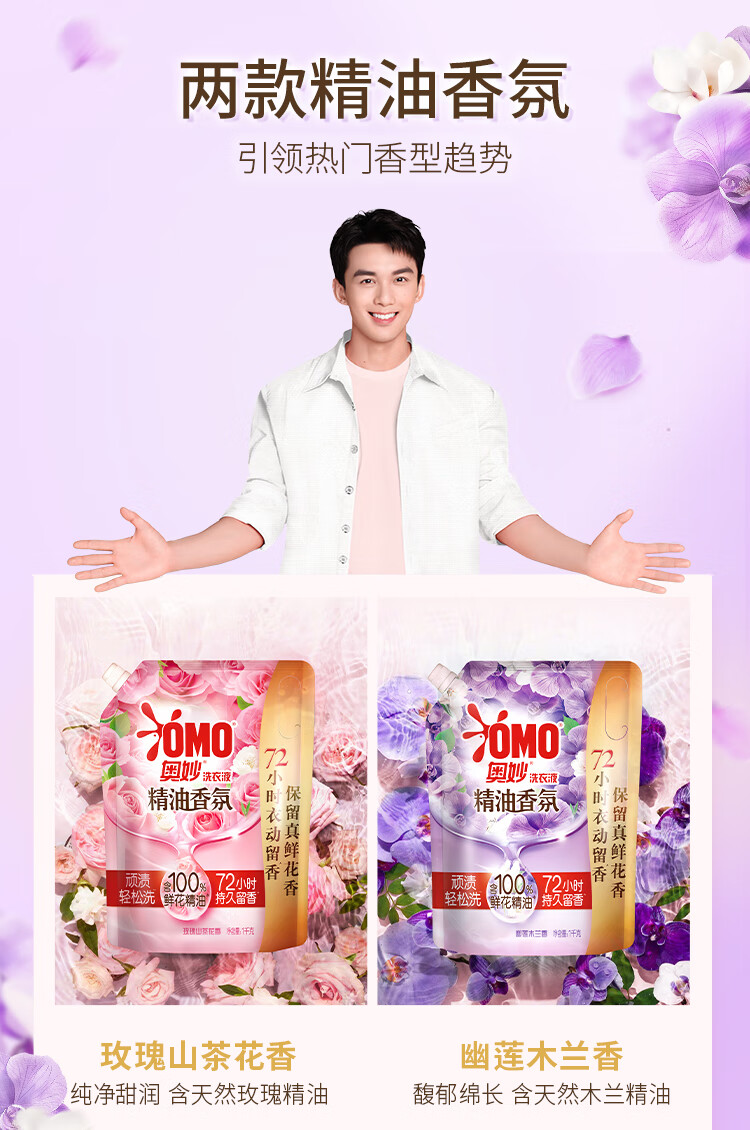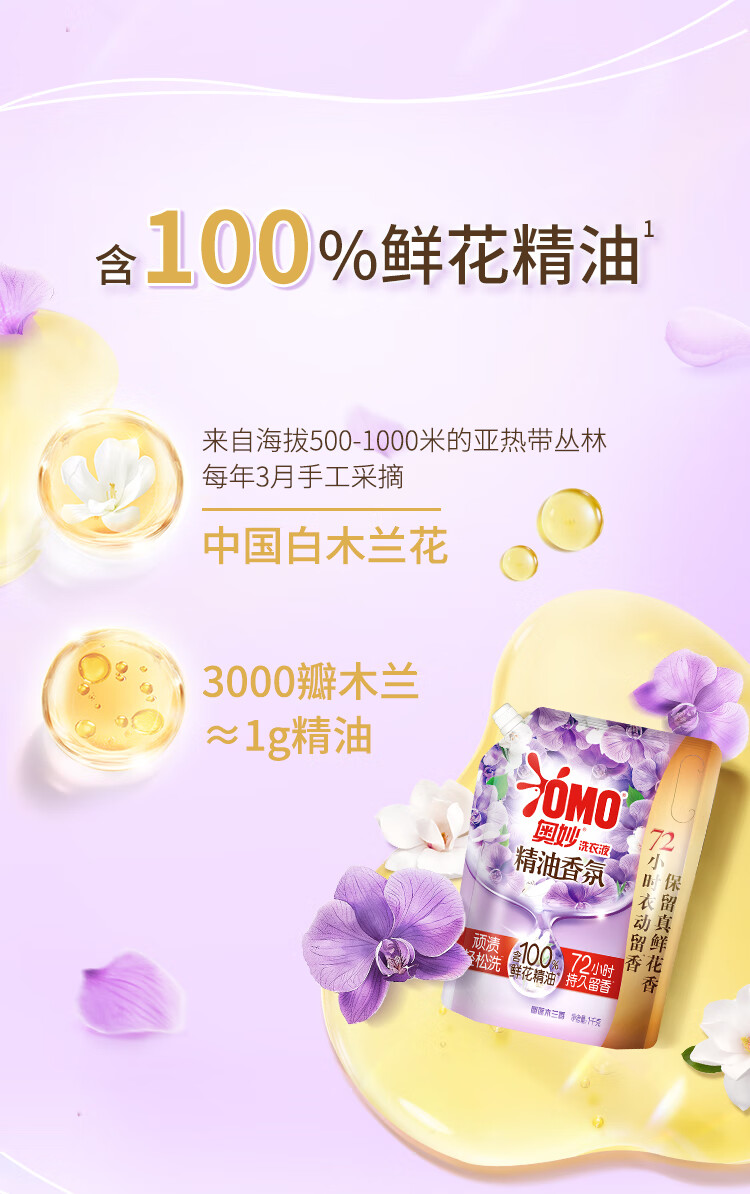 OMO Essential Oil Fragrance Master Fragrance Laundry Detergent Youlian Magnolia Ylang Fragrance 2kg (1kg bag) long-lasting fragrance