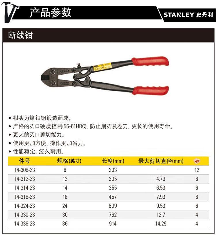 Stanley (STANLEY) steel bar bolt cutters powerful steel bar cutting steel wire wire large pliers scissors 14 inches 14-314-23