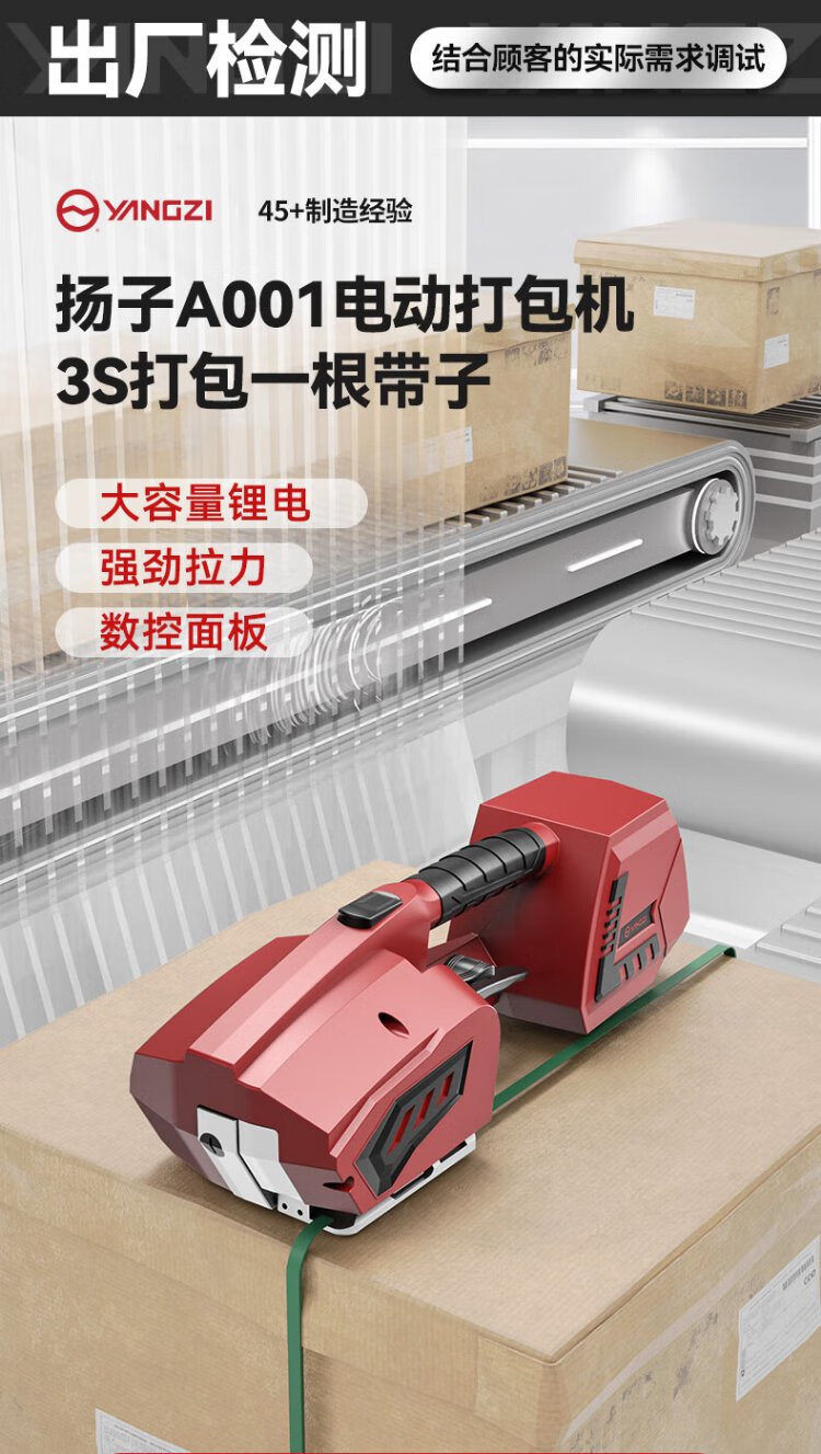 Yangzi (YANGZI) electric strapping machine fully automatic portable strapping machine PET plastic steel strap PP strap hot melt buckle-free tightening machine A001 dual battery 3200N