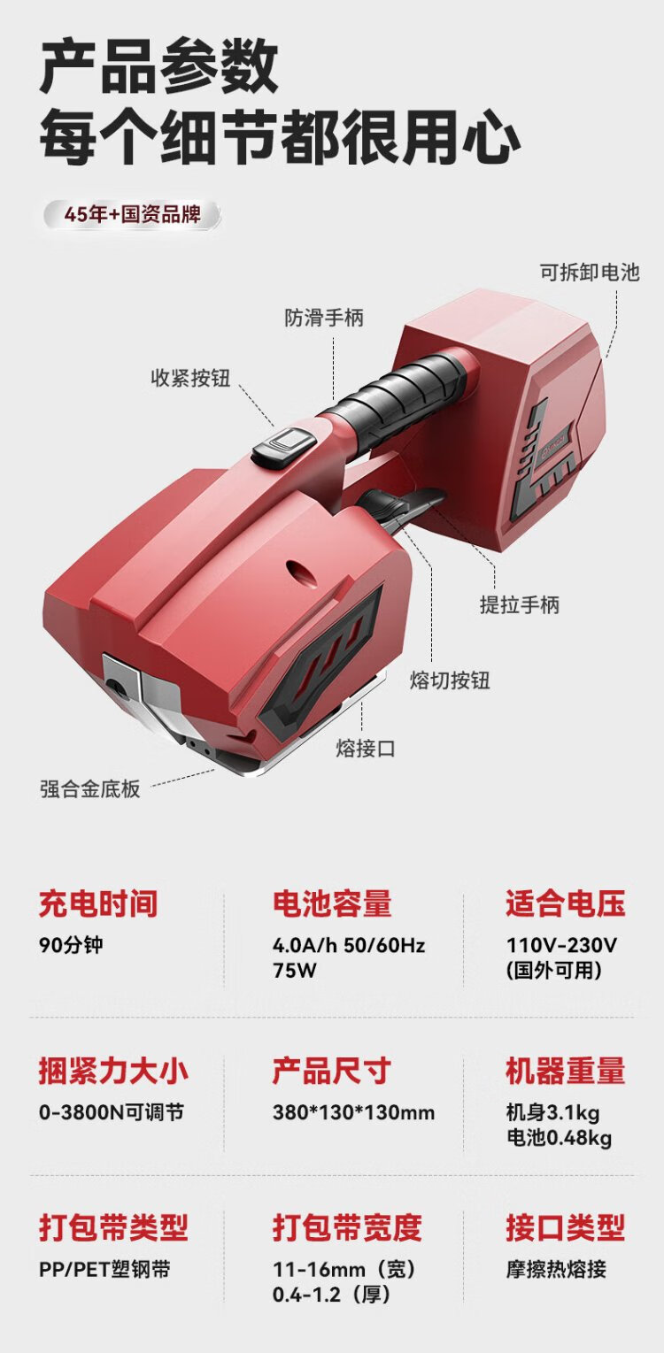 Yangzi (YANGZI) portable electric baler hot melt buckle-free strapping machine Brickyard wood carton baling and strapping machine A001 single battery 3500N