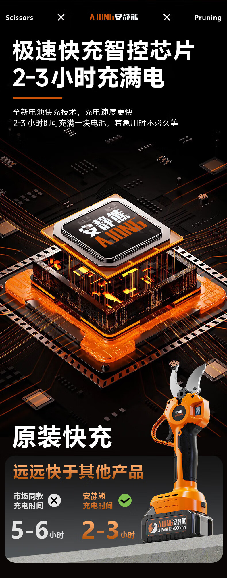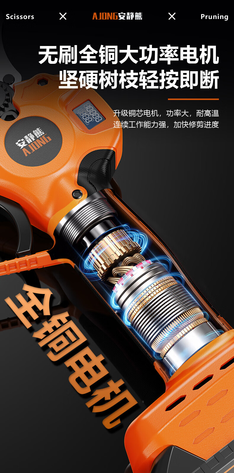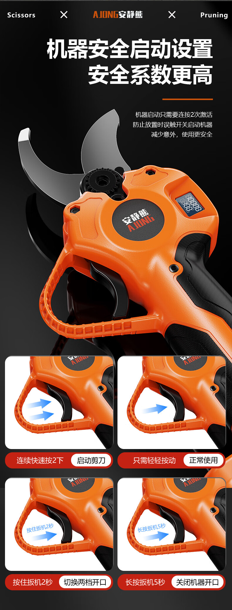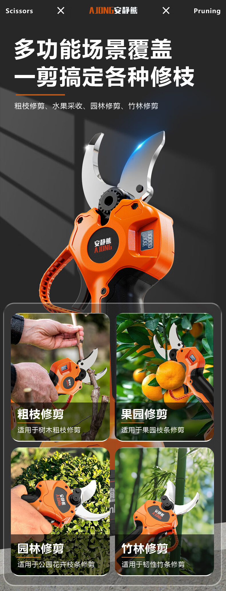 Quiet Bear electric scissors to cut branches, pruning branches, pruning shears, fruit tree electric scissors, lithium battery rechargeable thick branch pruning scissors