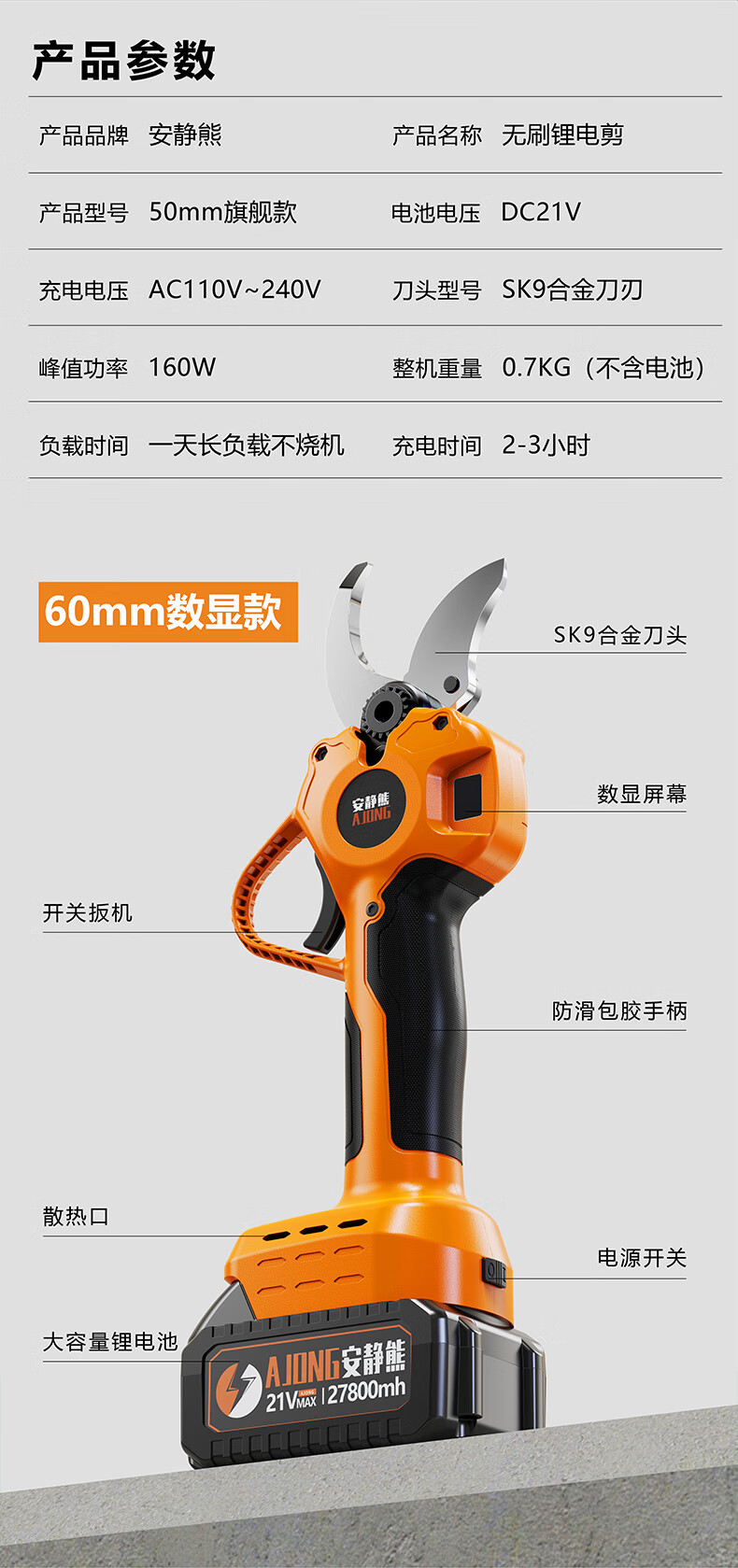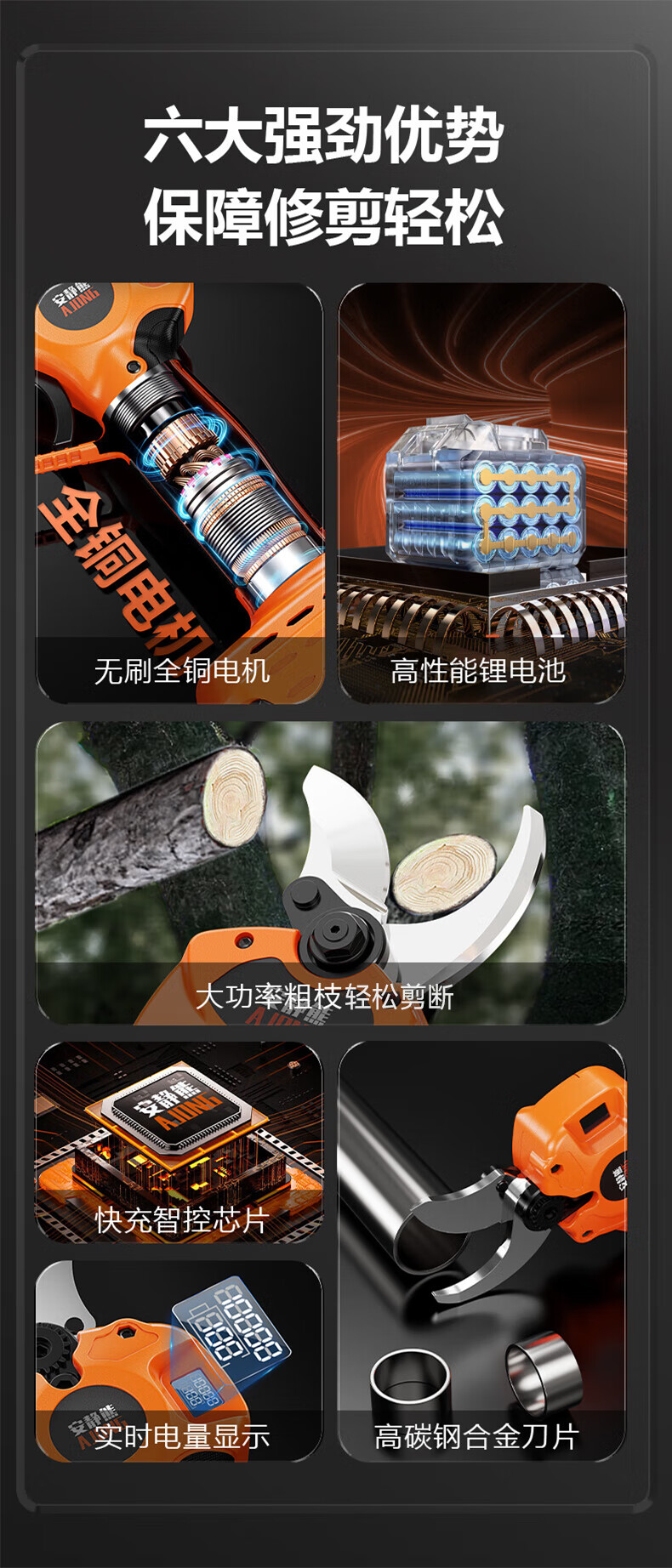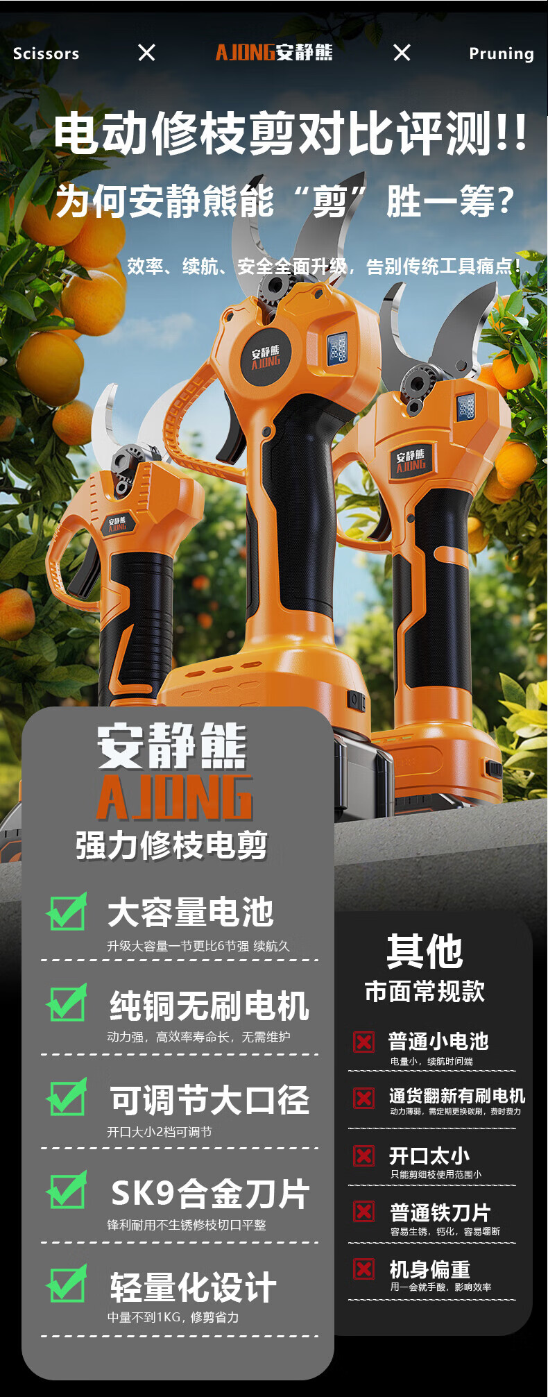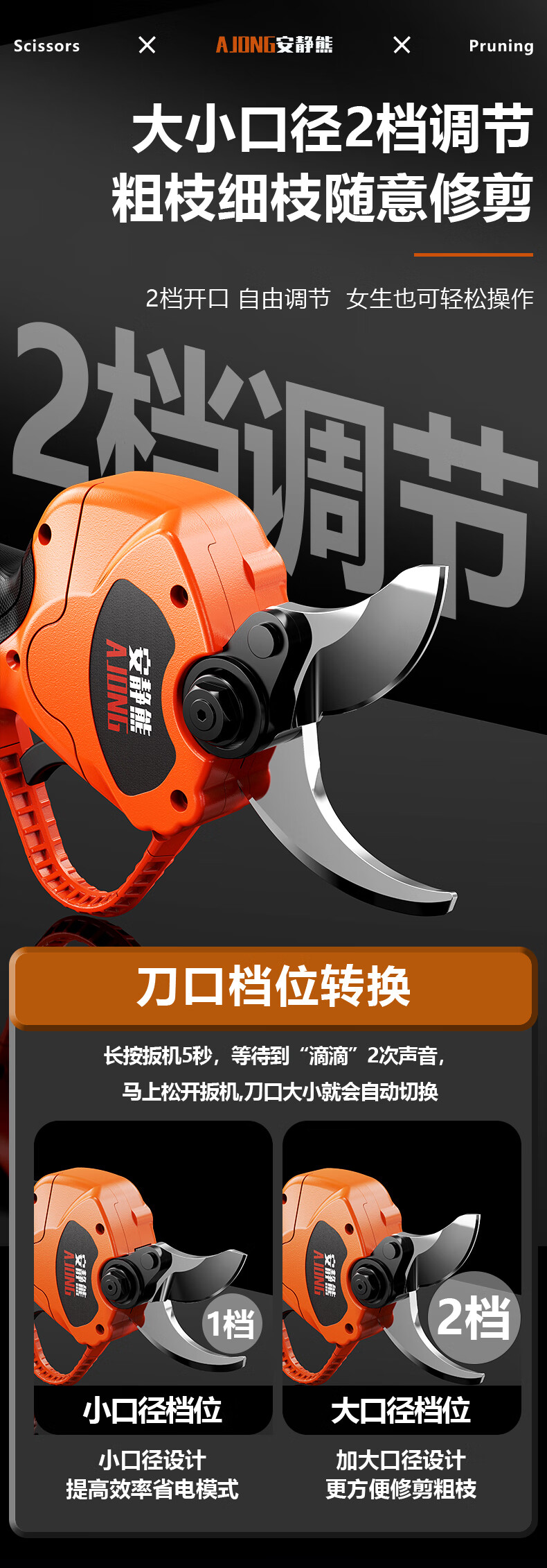 Quiet Bear electric scissors to cut branches, pruning branches, pruning shears, fruit tree electric scissors, lithium battery rechargeable thick branch pruning scissors