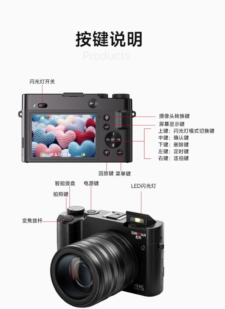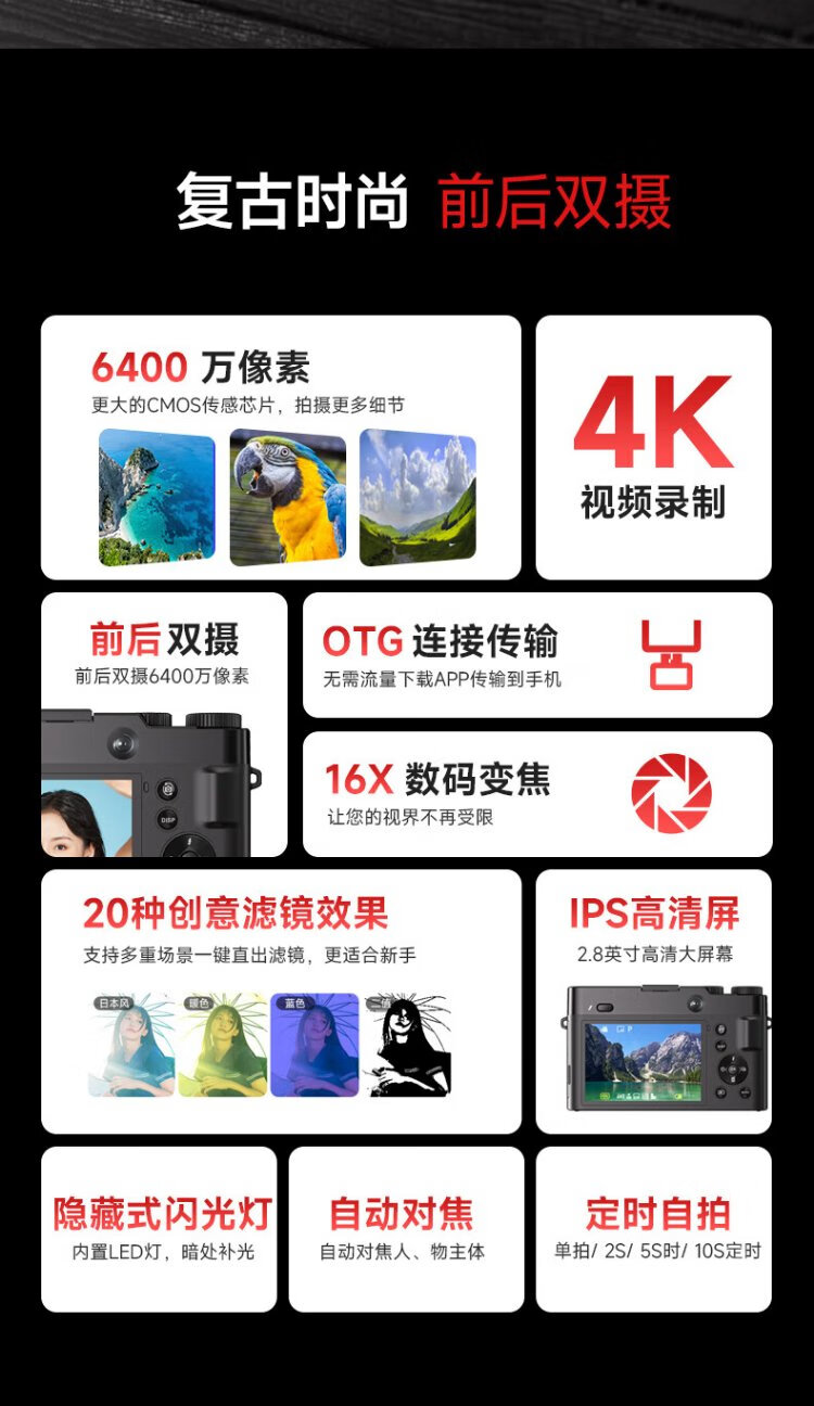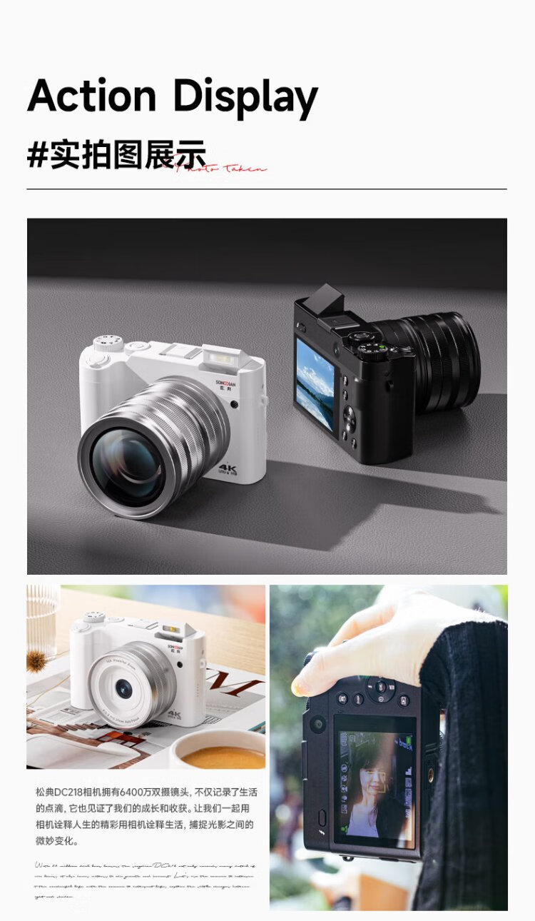 SONGDIAN digital camera front and rear dual camera 6400W high-definition mirrorless camera vlog portable student entry-level camera dc218 white 256G memory