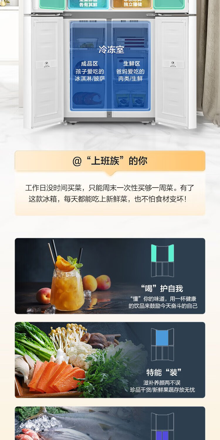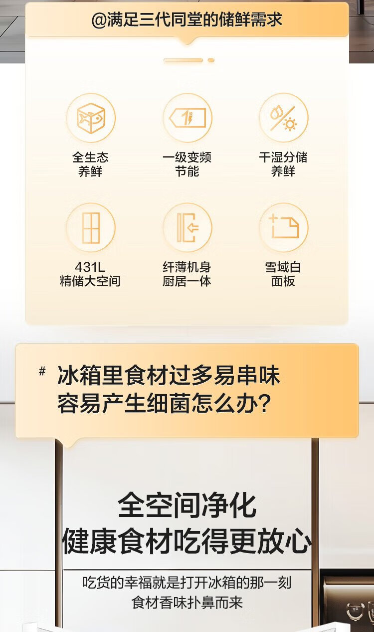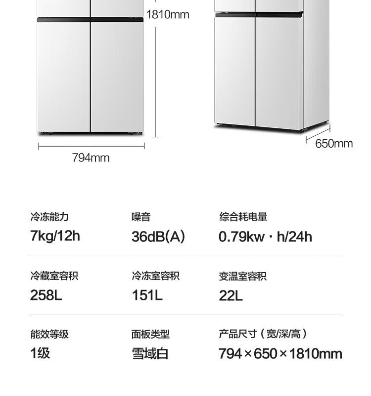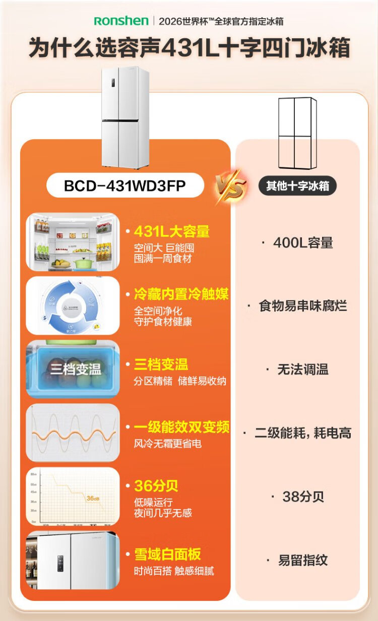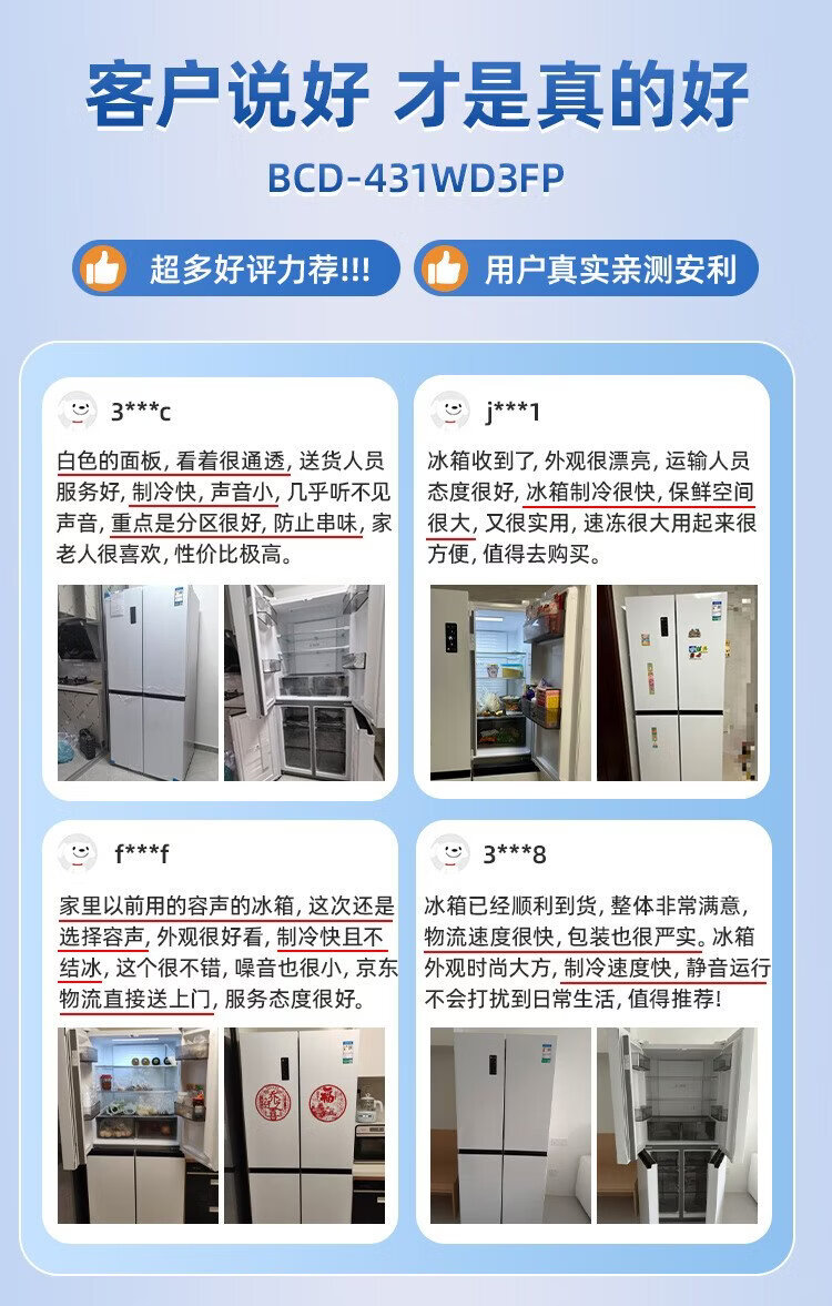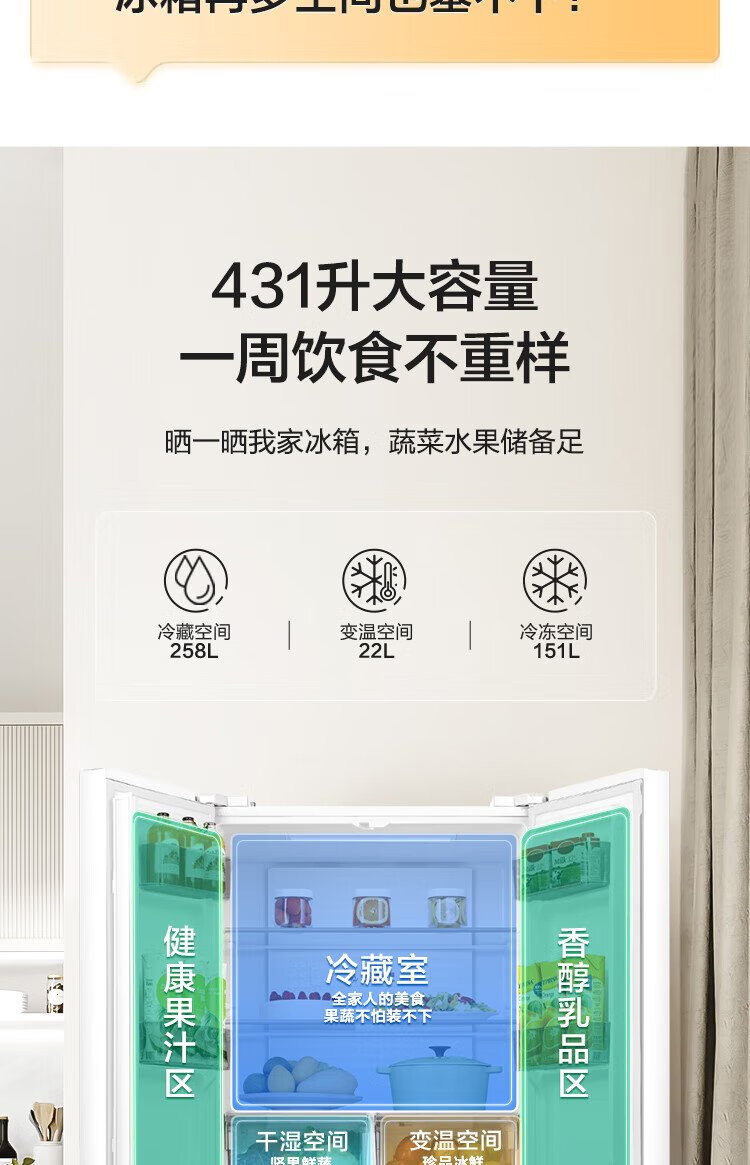 Rongsheng 431-liter cross-door four-door large-capacity household refrigerator first-class energy efficiency dual-frequency air-cooled frost-free mother and baby BCD-431WD3FP renewal subsidy