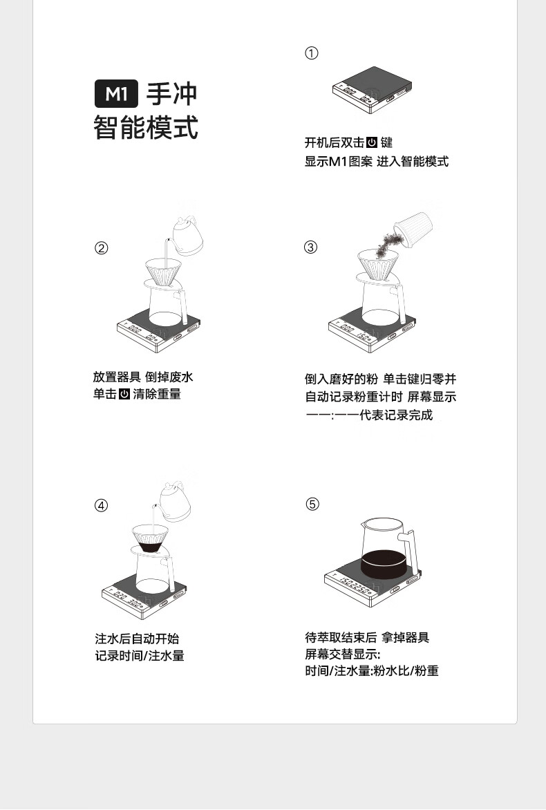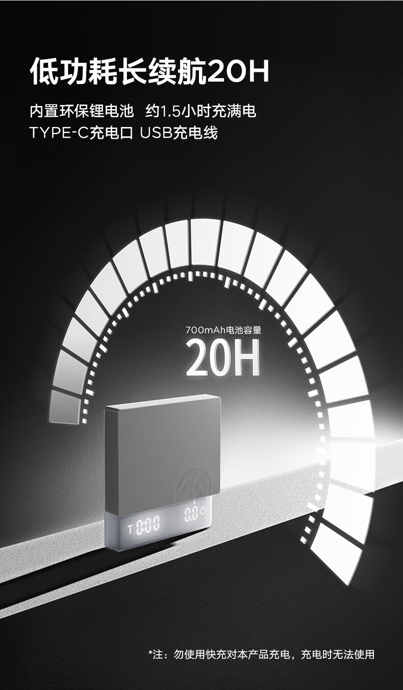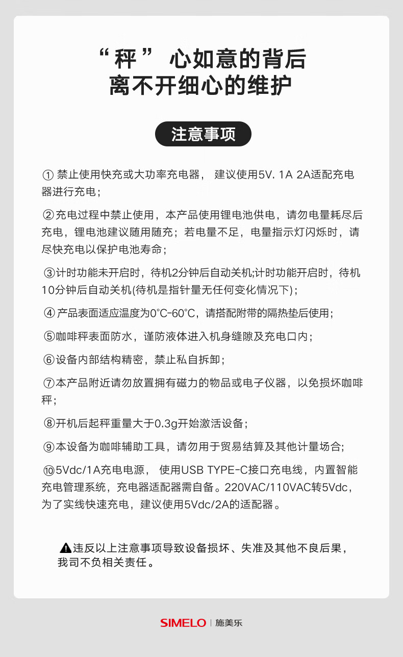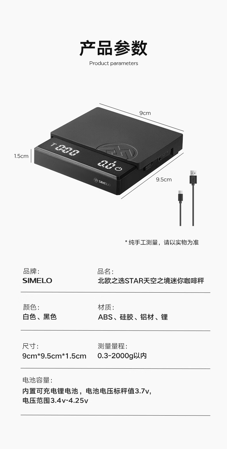 SIMELO coffee electronic scale kitchen food baking scale rechargeable smart digital display mini scale Italian hand brewing scale black