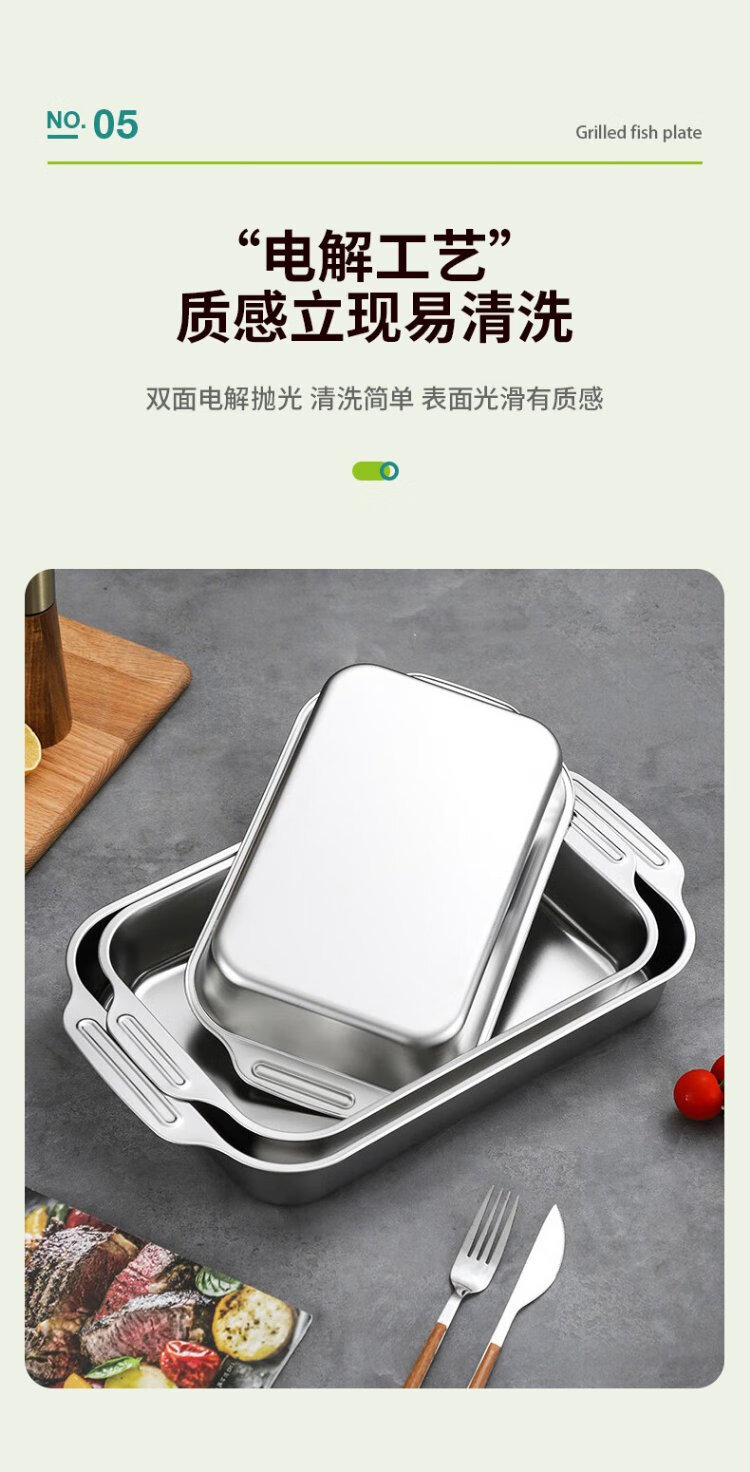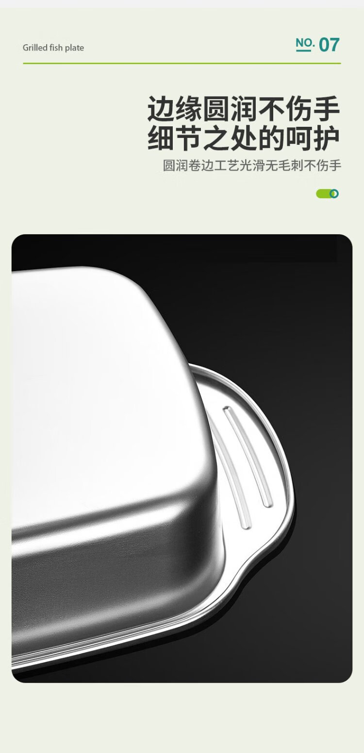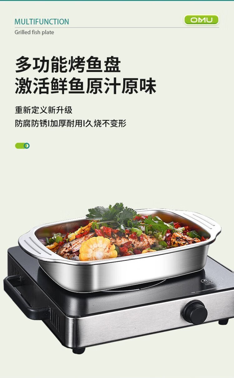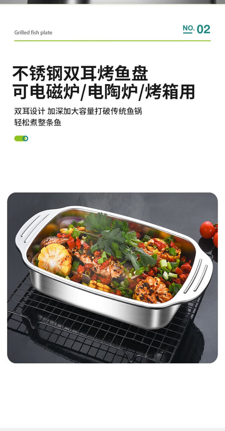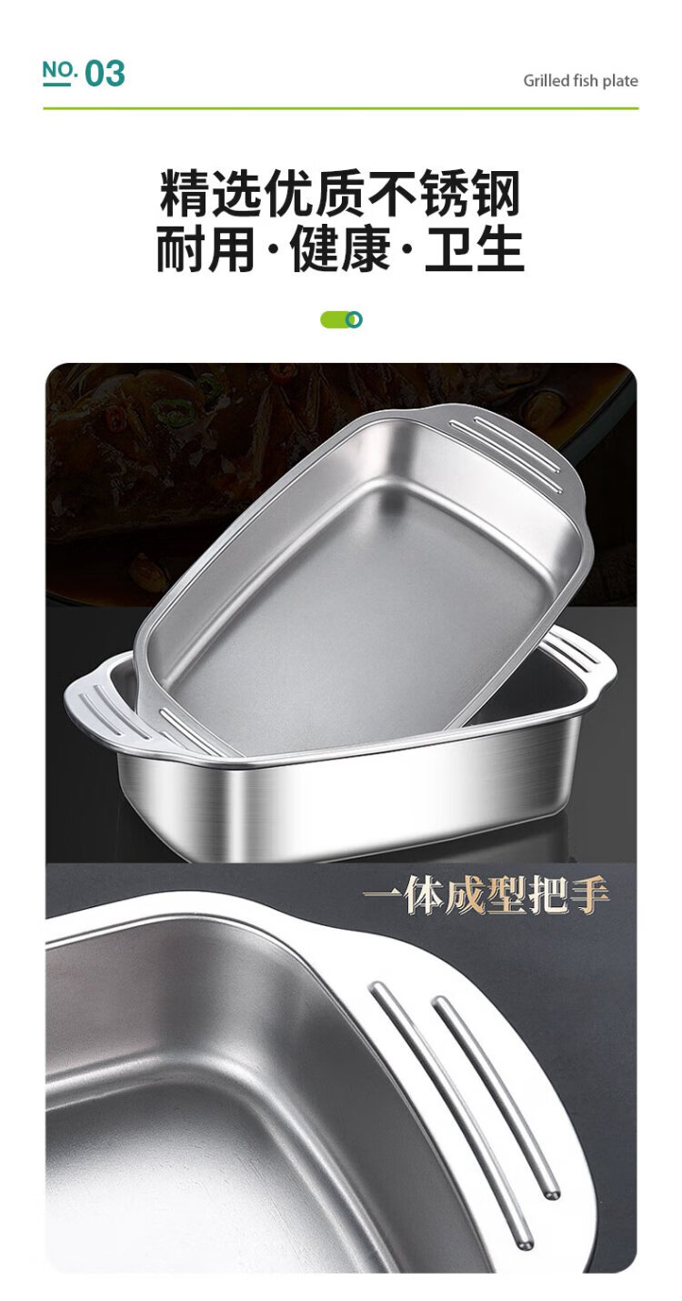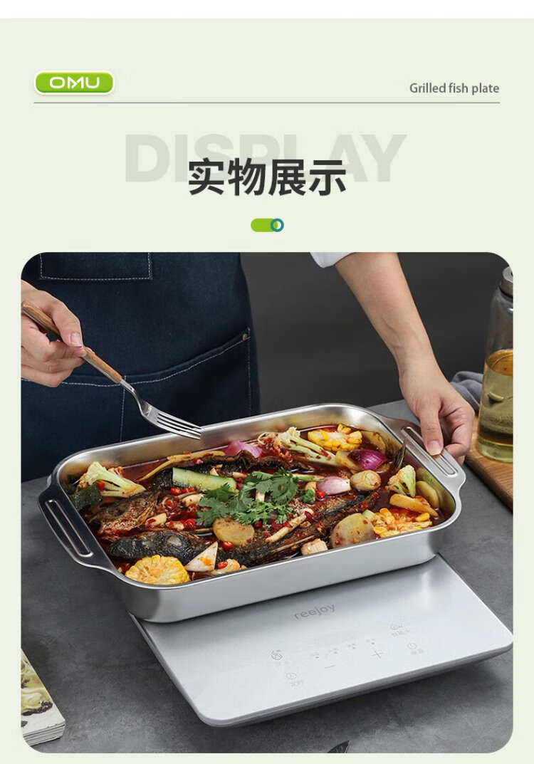 Ogilvy stainless steel grilled fish plate thickened rectangular household induction cooker grilled fish special square plate tray deepened 40cm