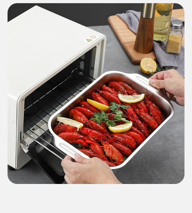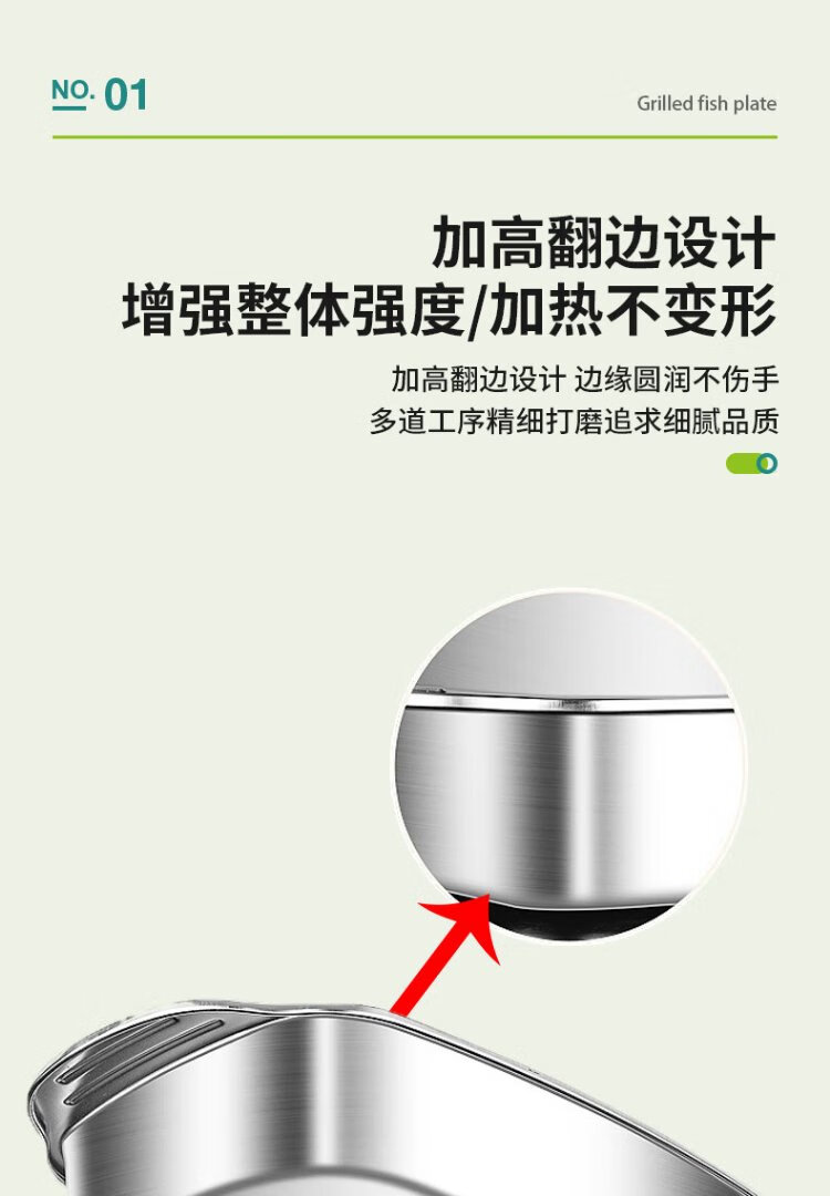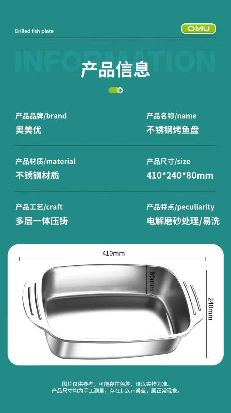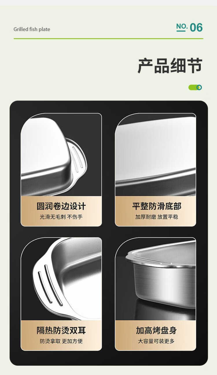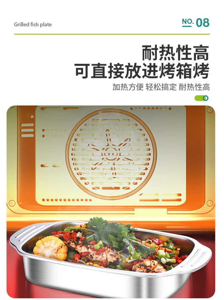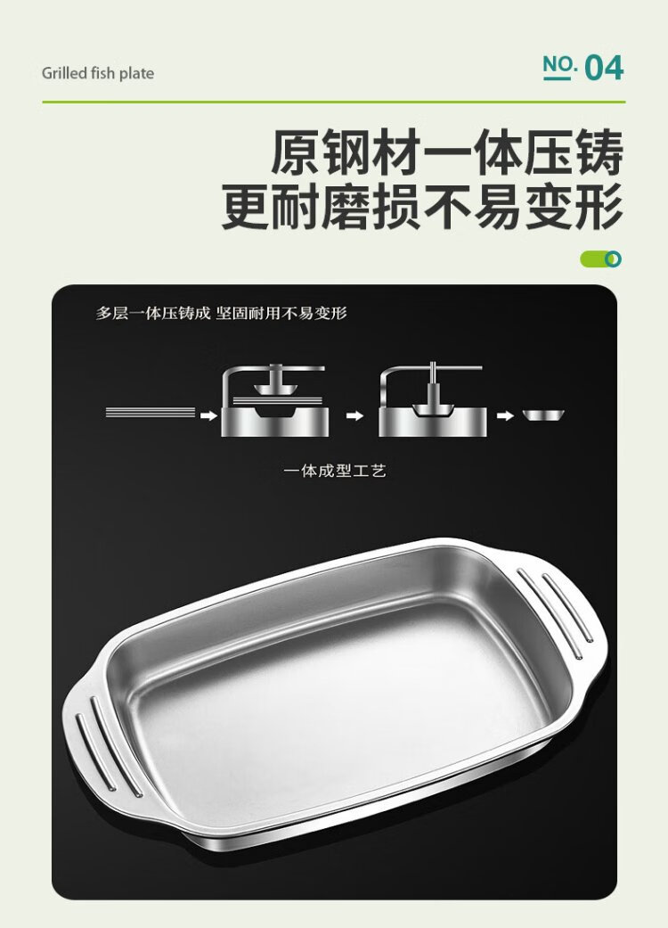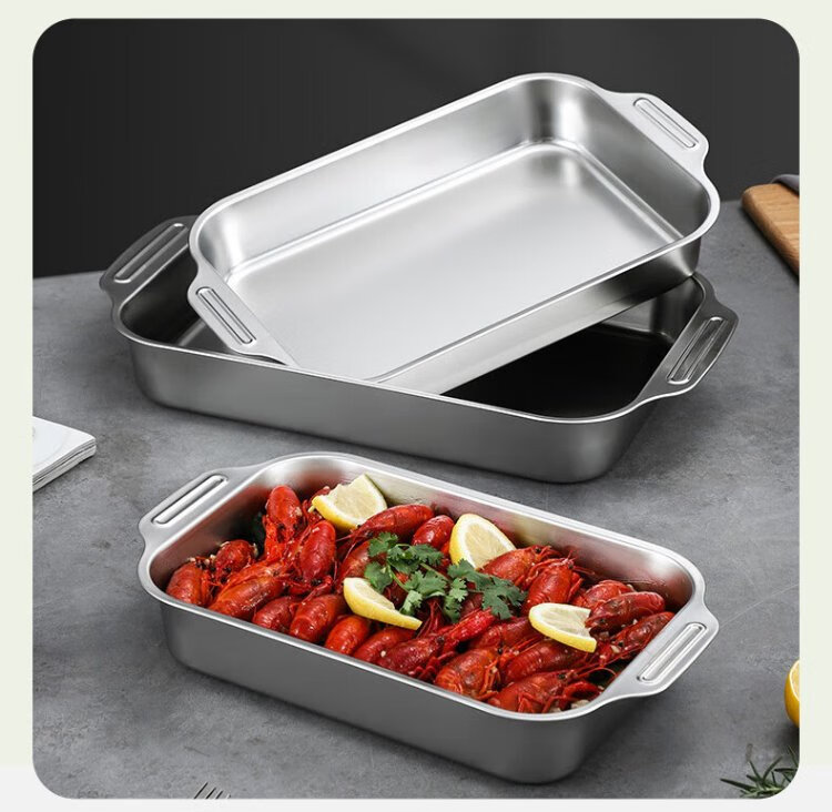 Ogilvy stainless steel grilled fish plate thickened rectangular household induction cooker grilled fish special square plate tray deepened 40cm