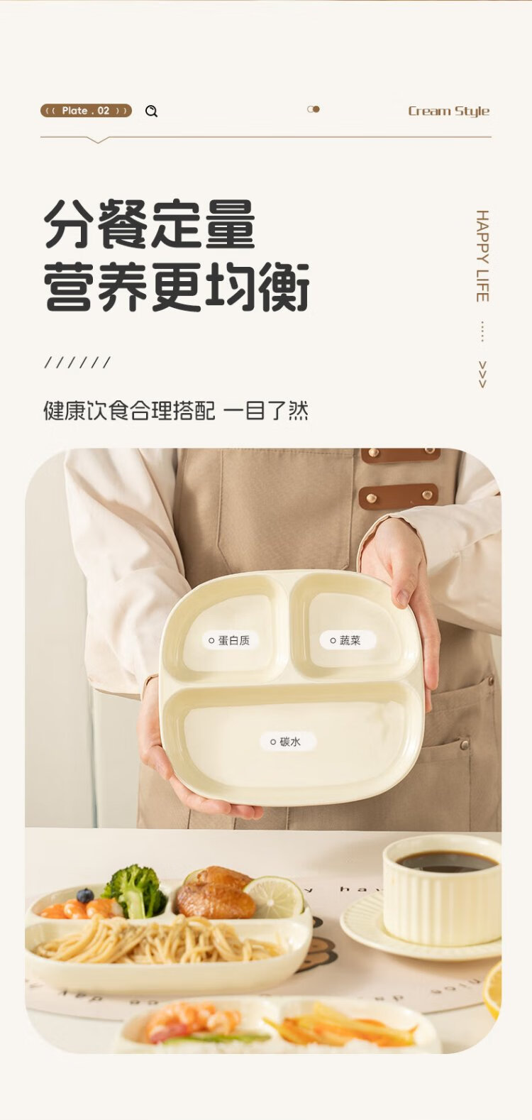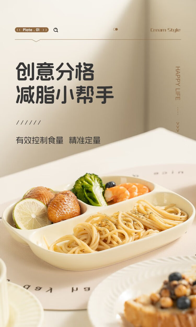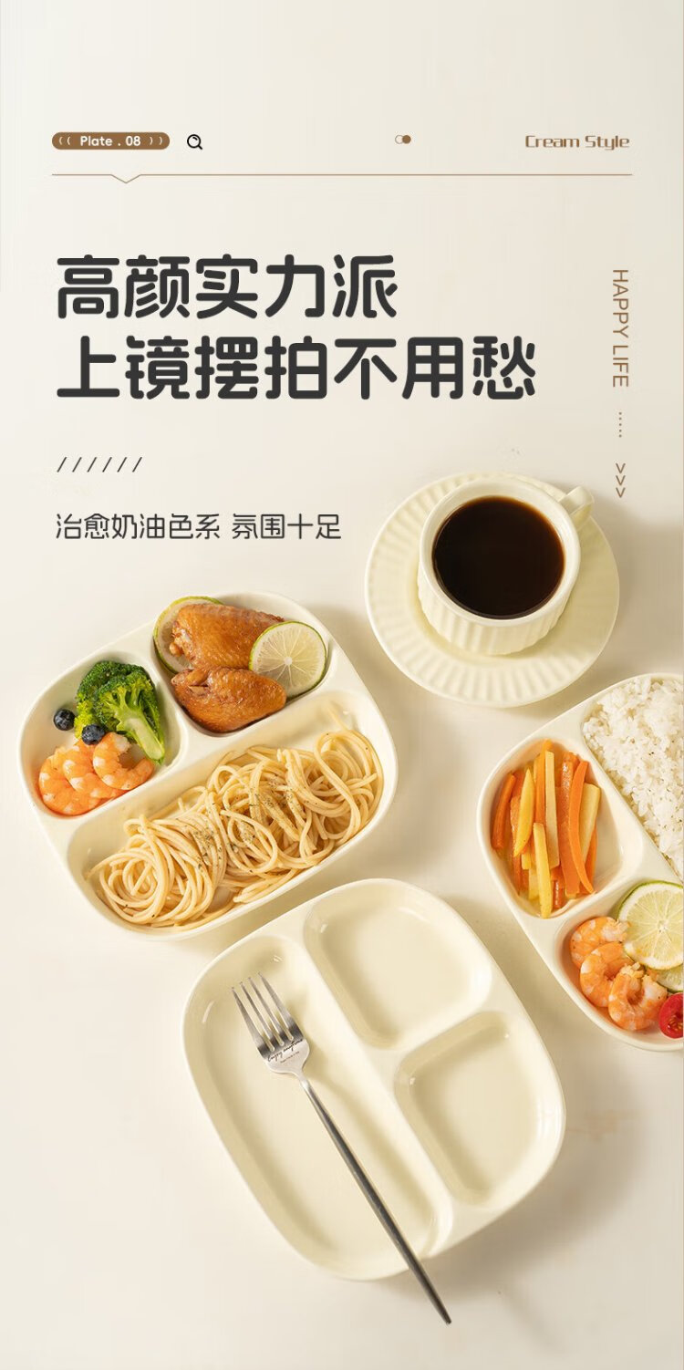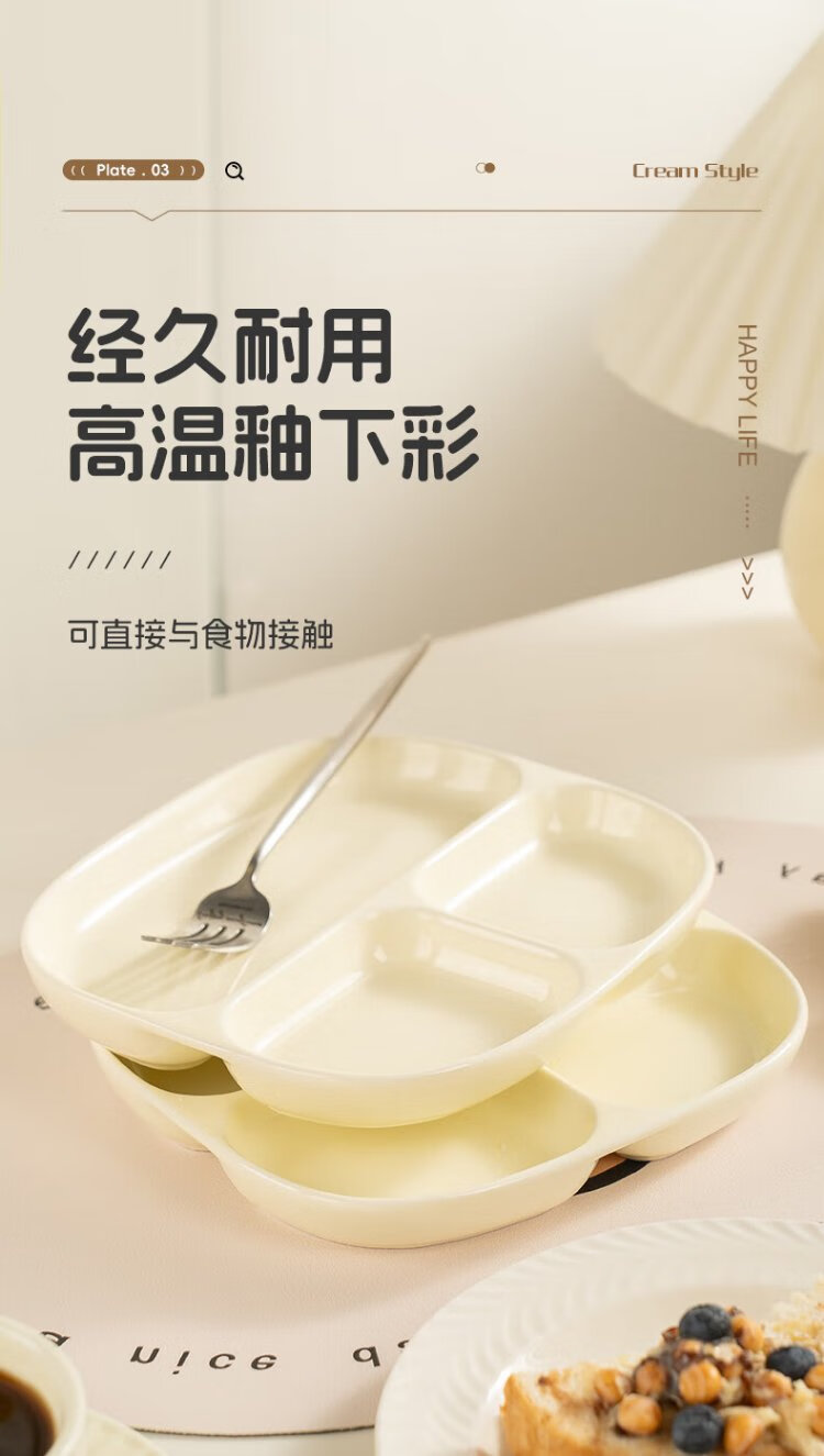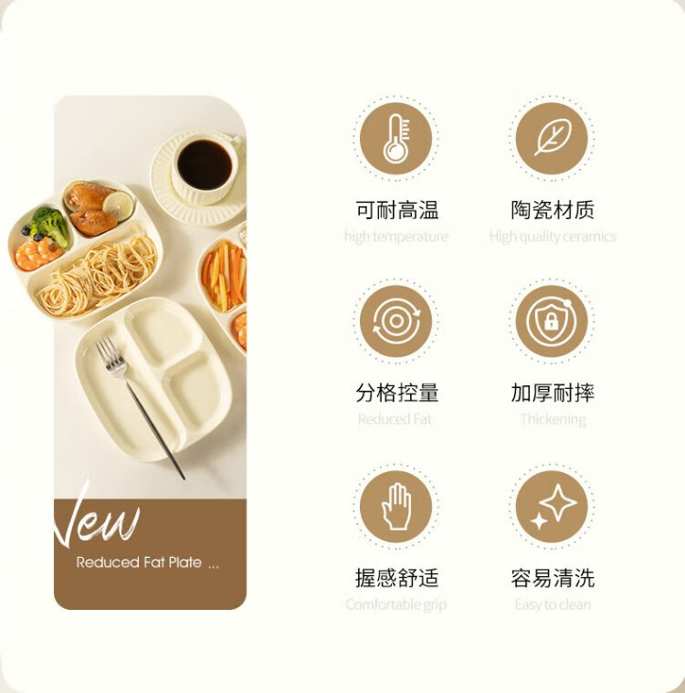 Caizhi (CAIZHI) ceramic plate divided plate student breakfast plate dumpling plate fruit plate 211 reduced fat dinner plate CZ6968