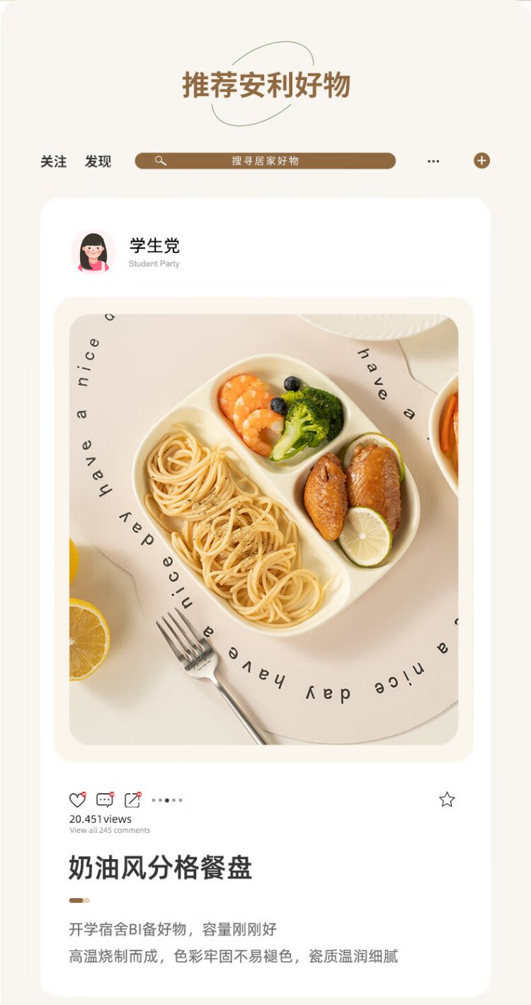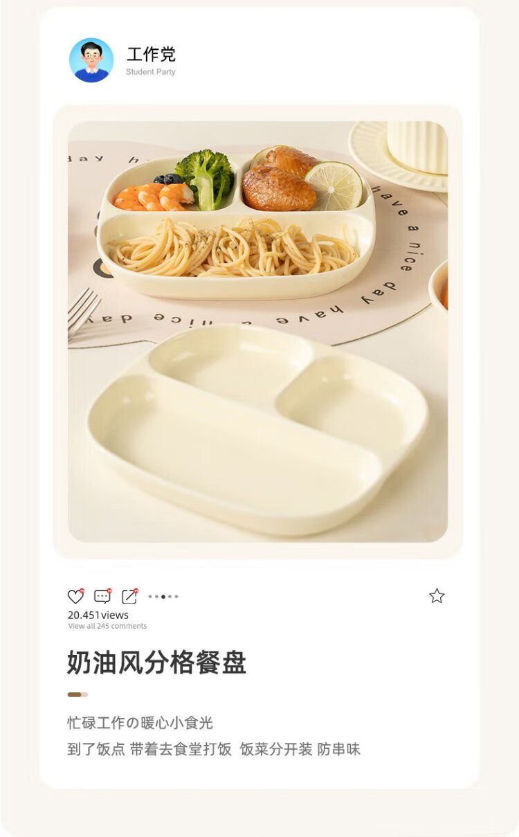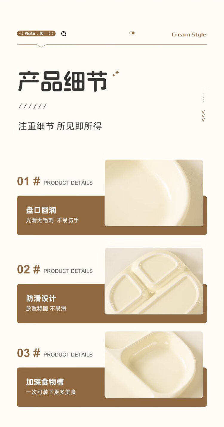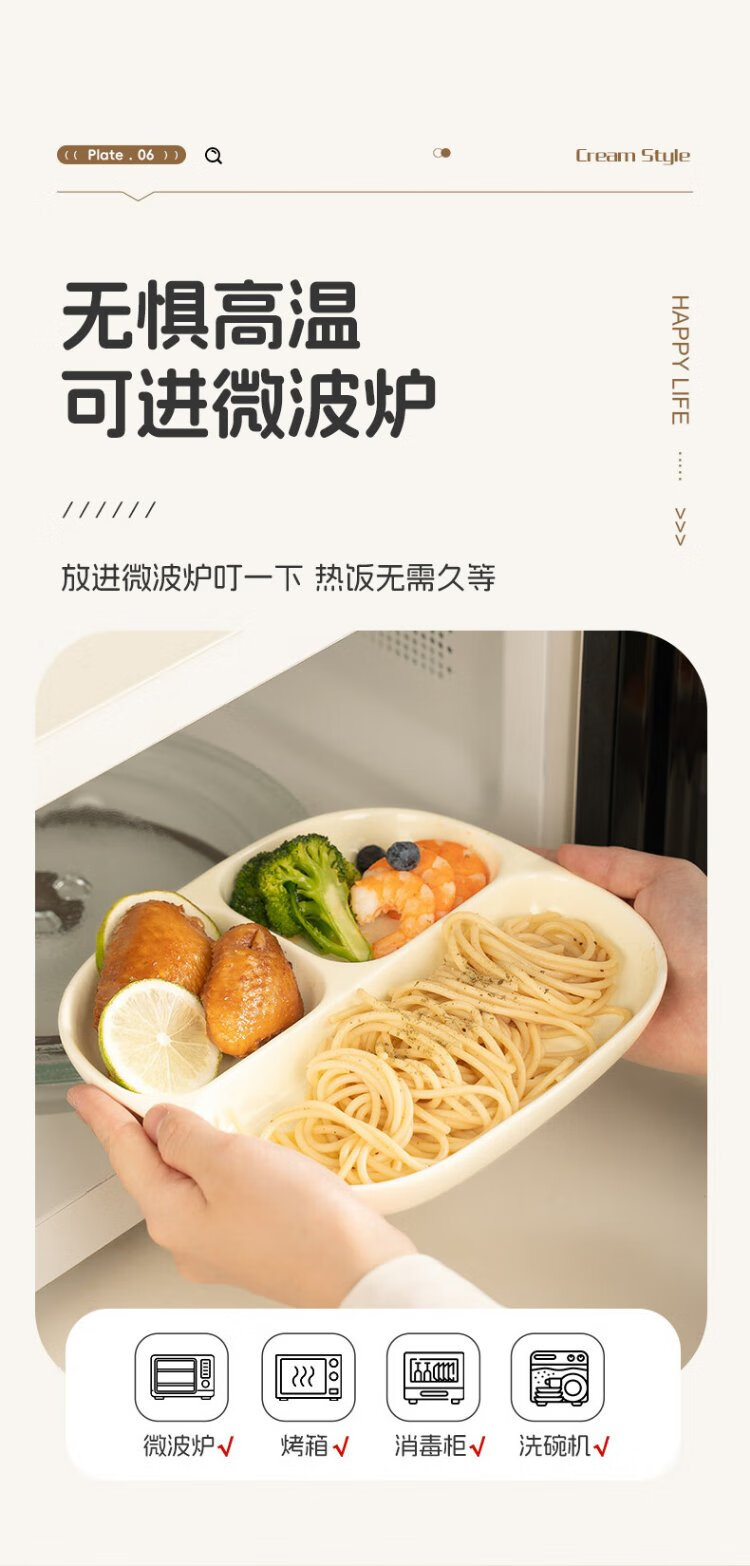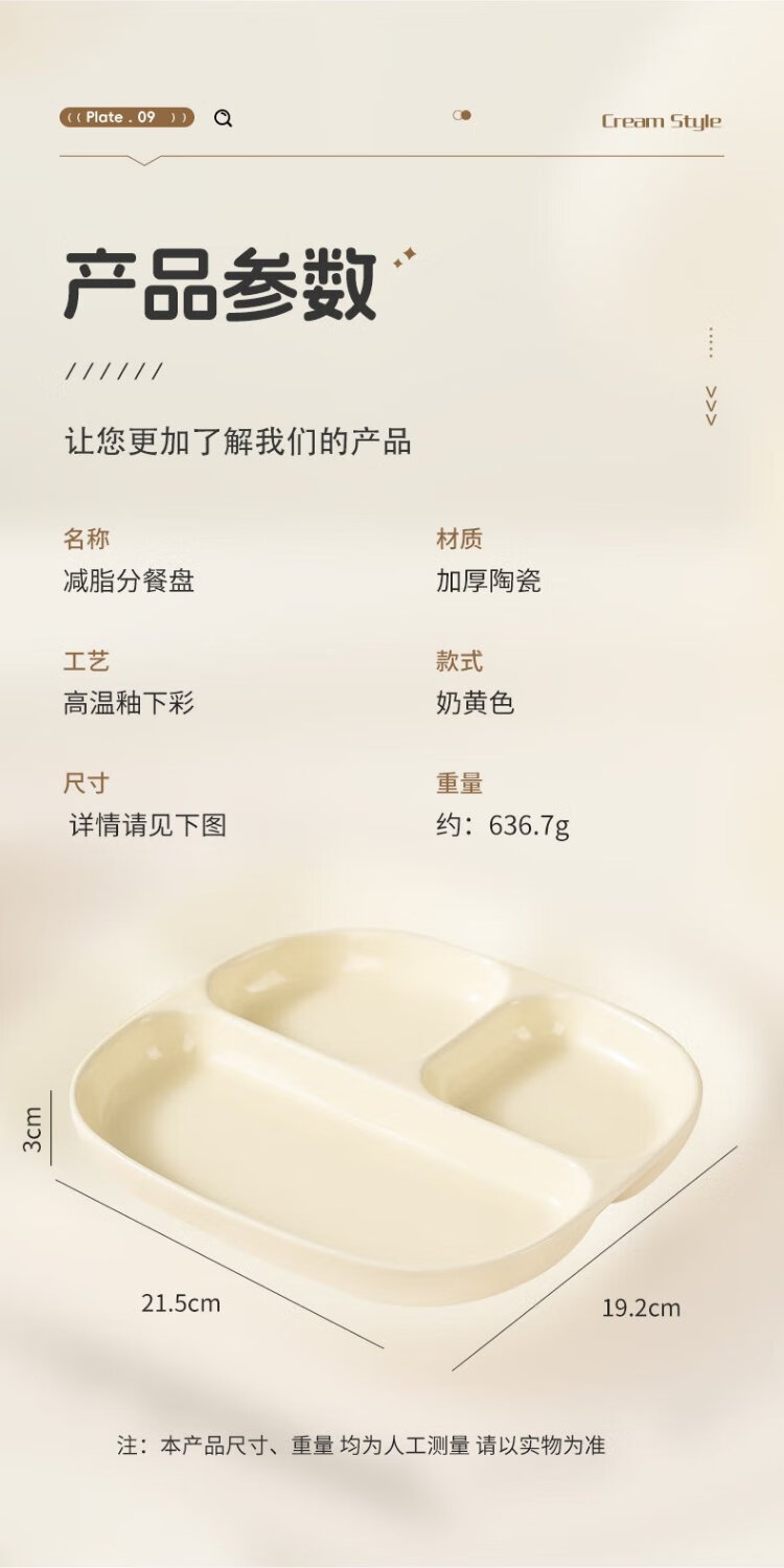 Caizhi (CAIZHI) ceramic plate divided plate student breakfast plate dumpling plate fruit plate 211 reduced fat dinner plate CZ6968