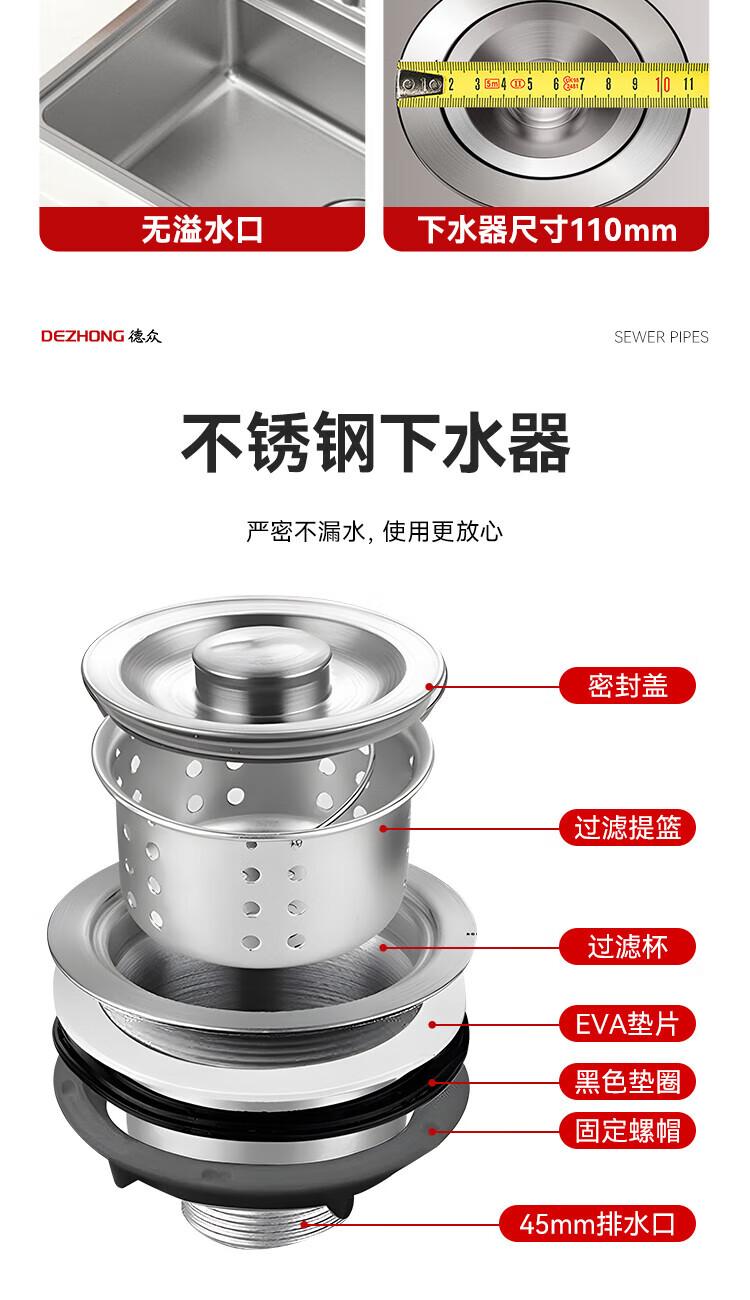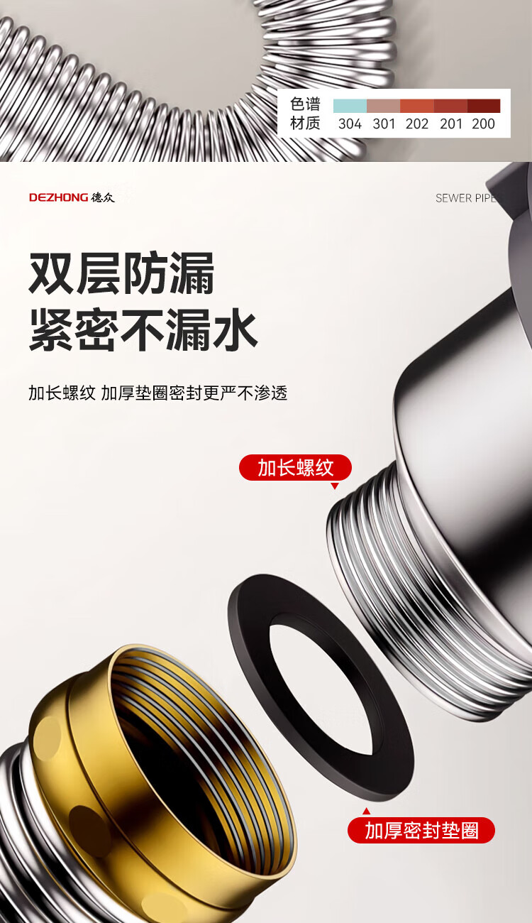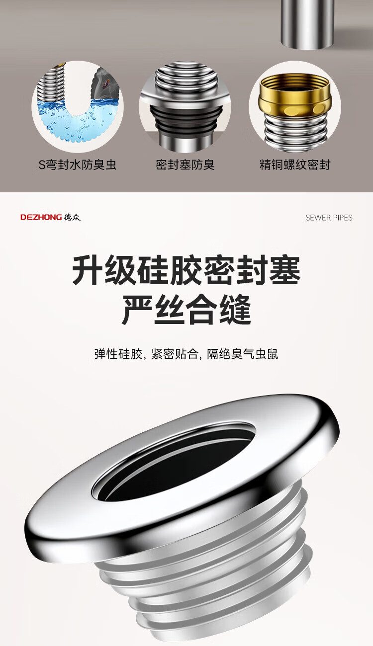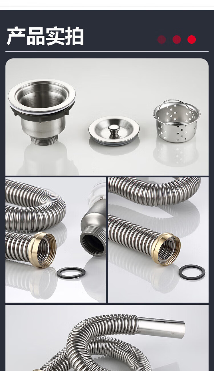 Dezhong kitchen sink drain pipe complete set, anti-odor and hot-resistant kitchen drain pipe, single sink dishwashing pool 304 stainless steel drain pipe accessories P9