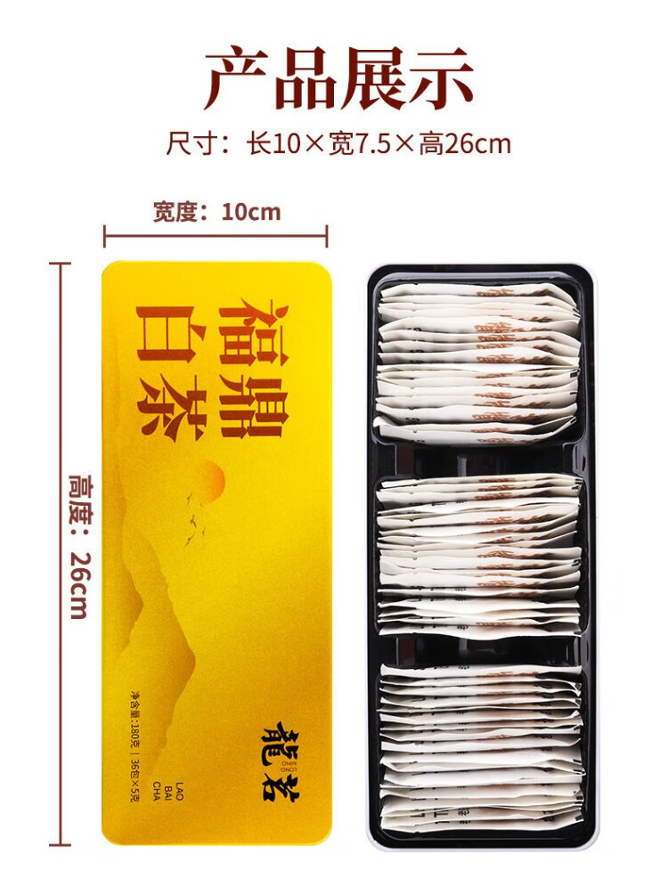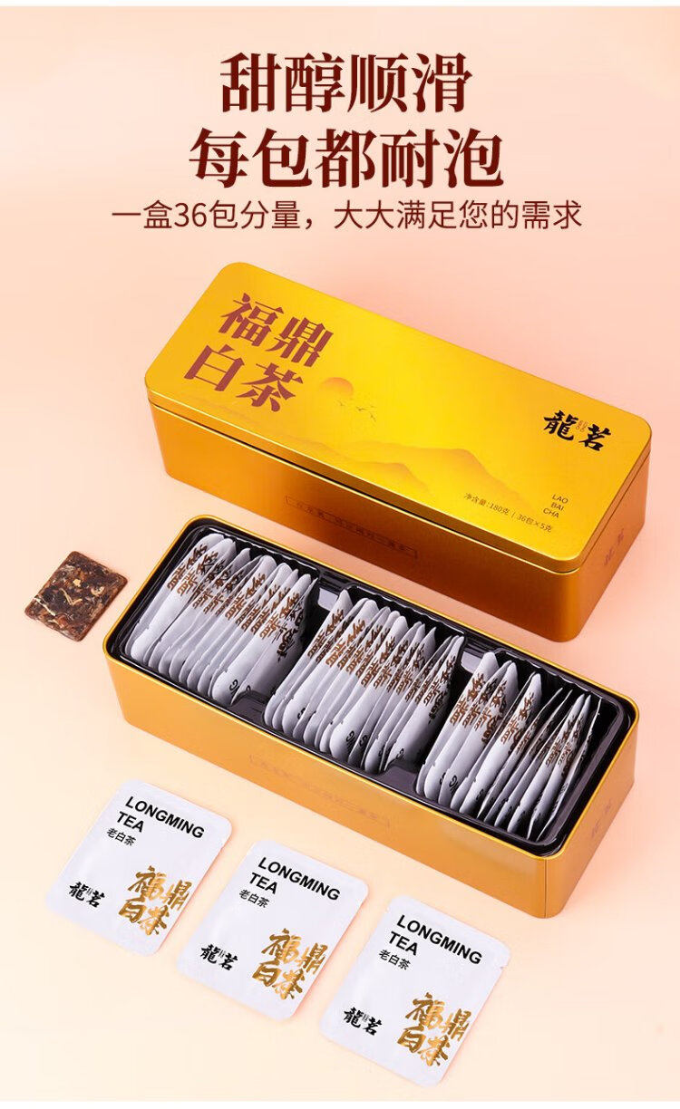 Longming Old White Tea Fuding White Tea 2018 Shoumei Square Slices Souvenir Tea 36 bags/180g