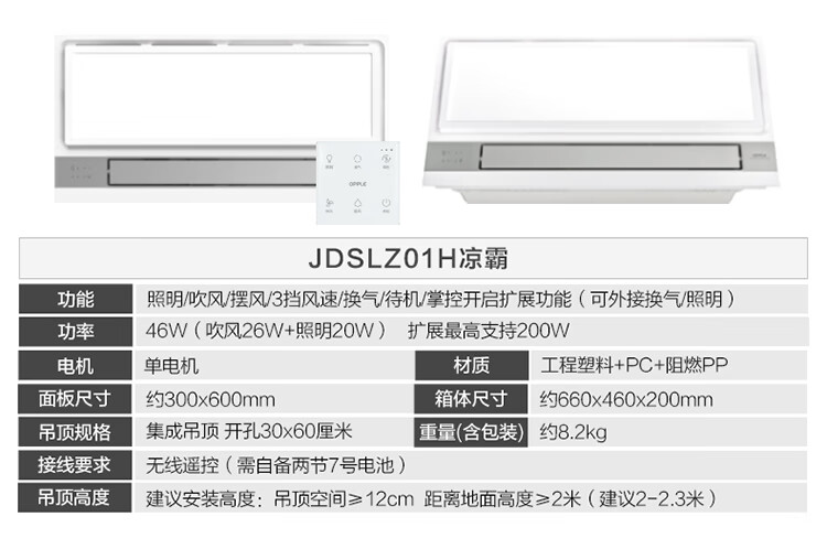 Op Lighting DC kitchen dedicated cooling fan air conditioning fan air cooler ventilation lighting three-in-one embedded LZ01H