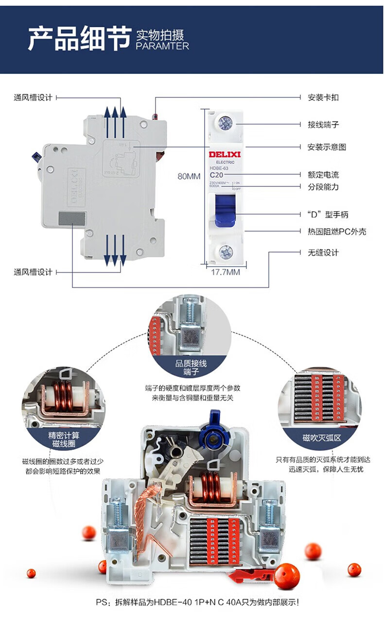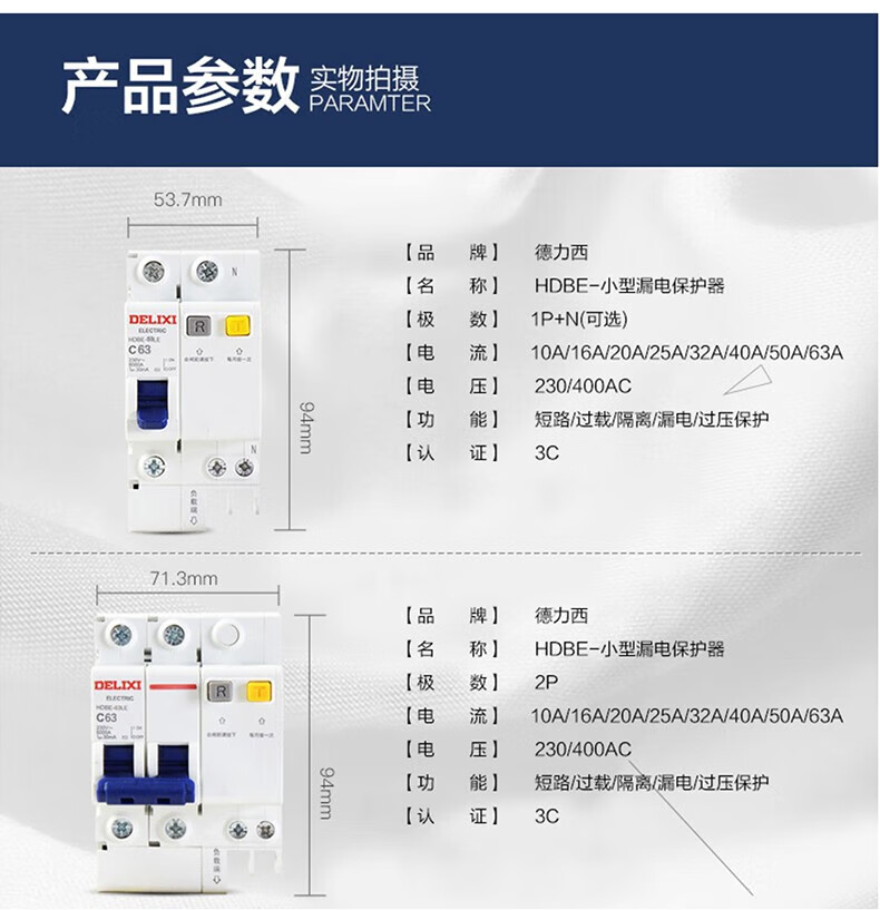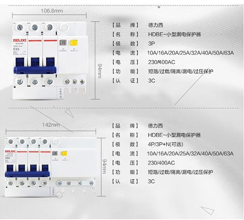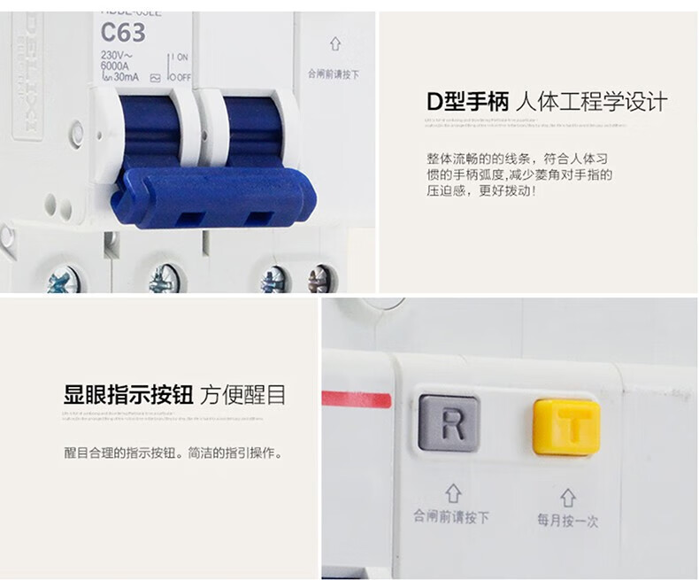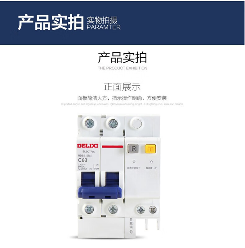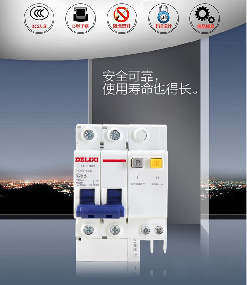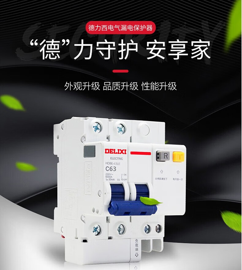 Delixi Electric air switch circuit breaker air leakage protector HDBE-63LE 2P C type 40A