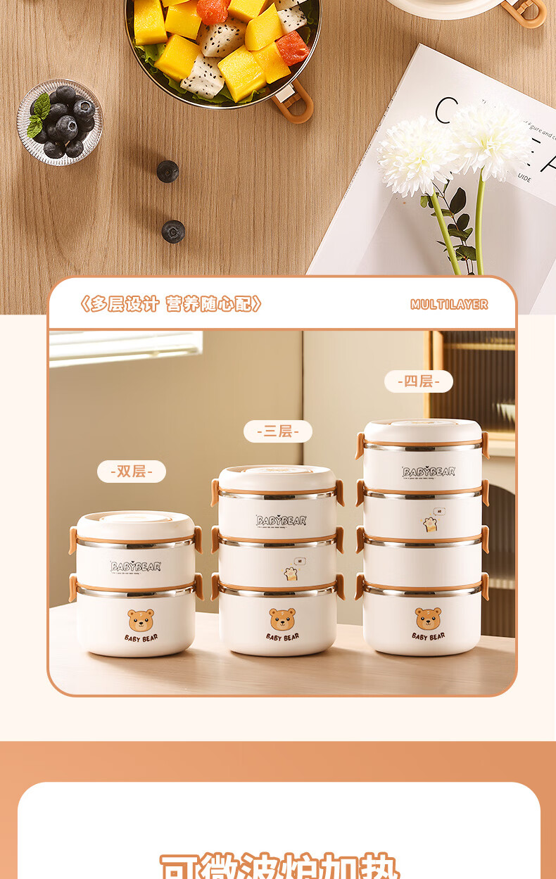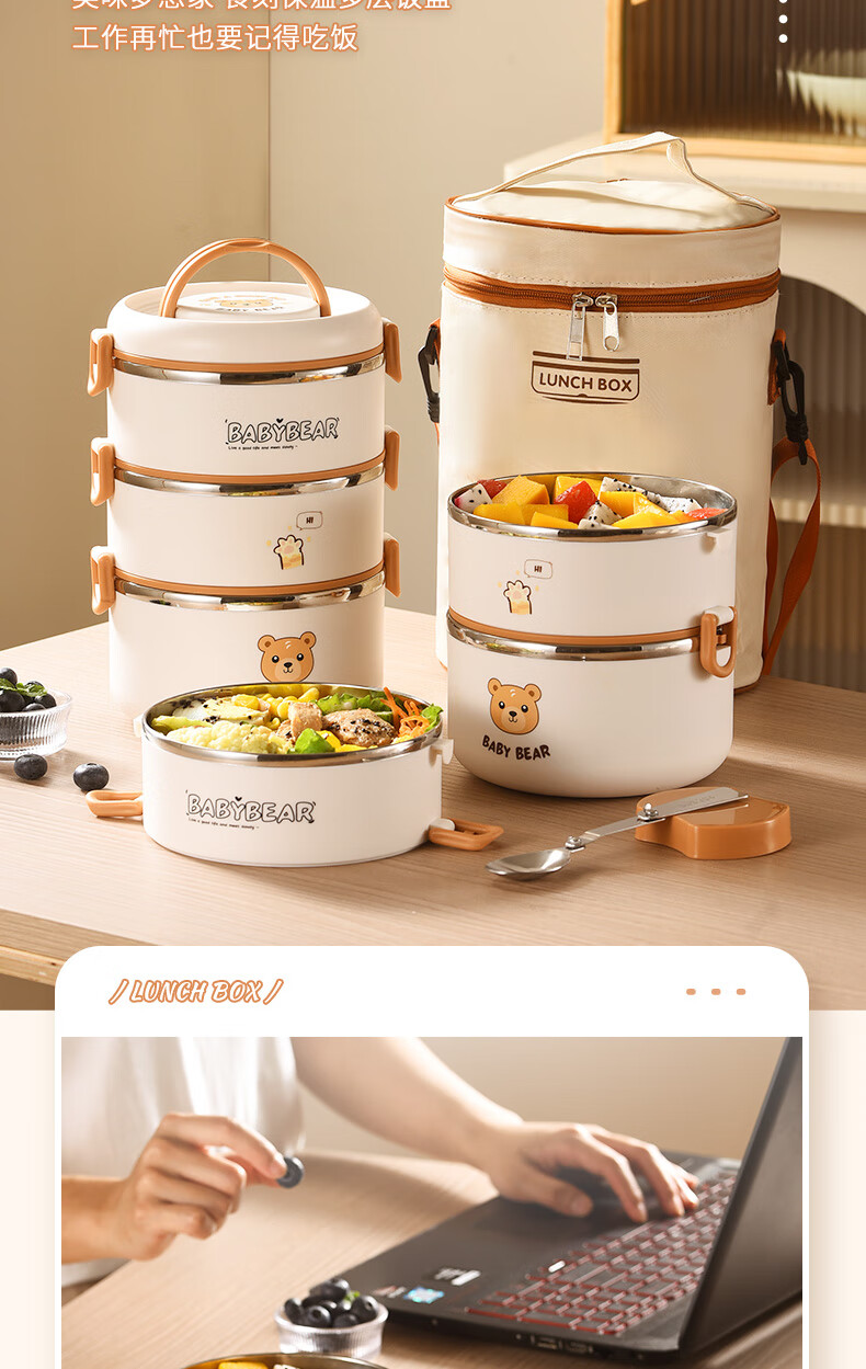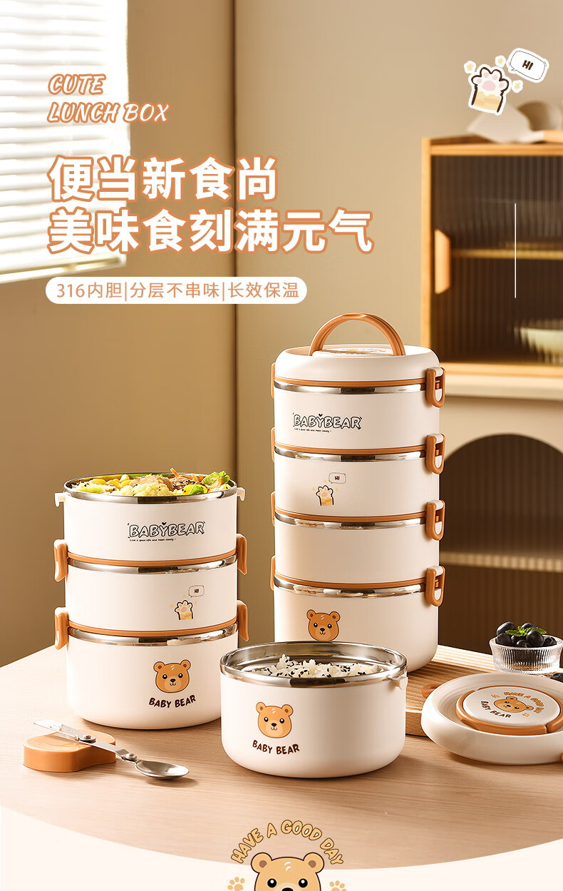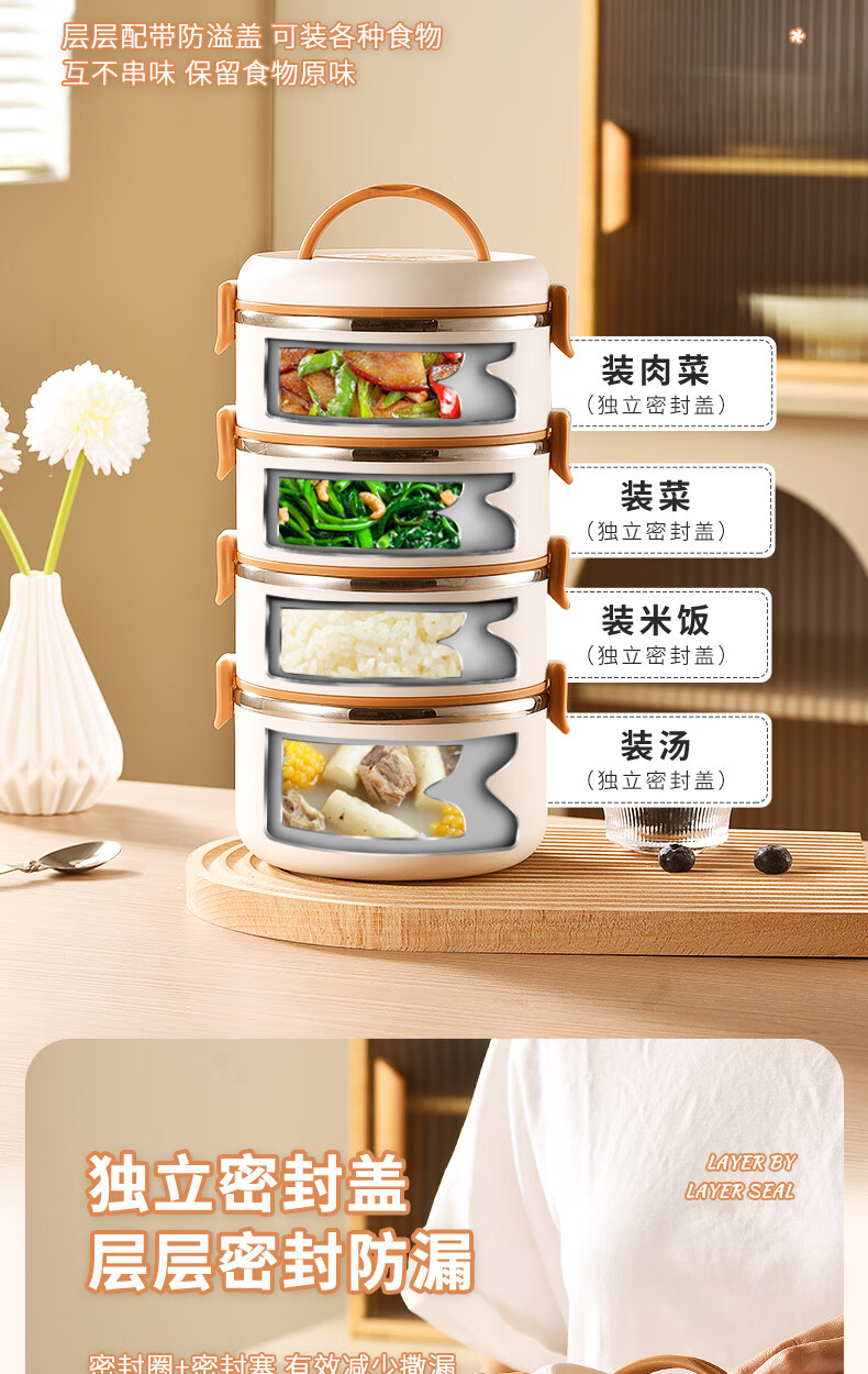 PAKCHOICE Insulated Lunch Box 24-hour extra-long thermal insulation office worker can microwave multi-layer large capacity 316 stainless steel lunch box