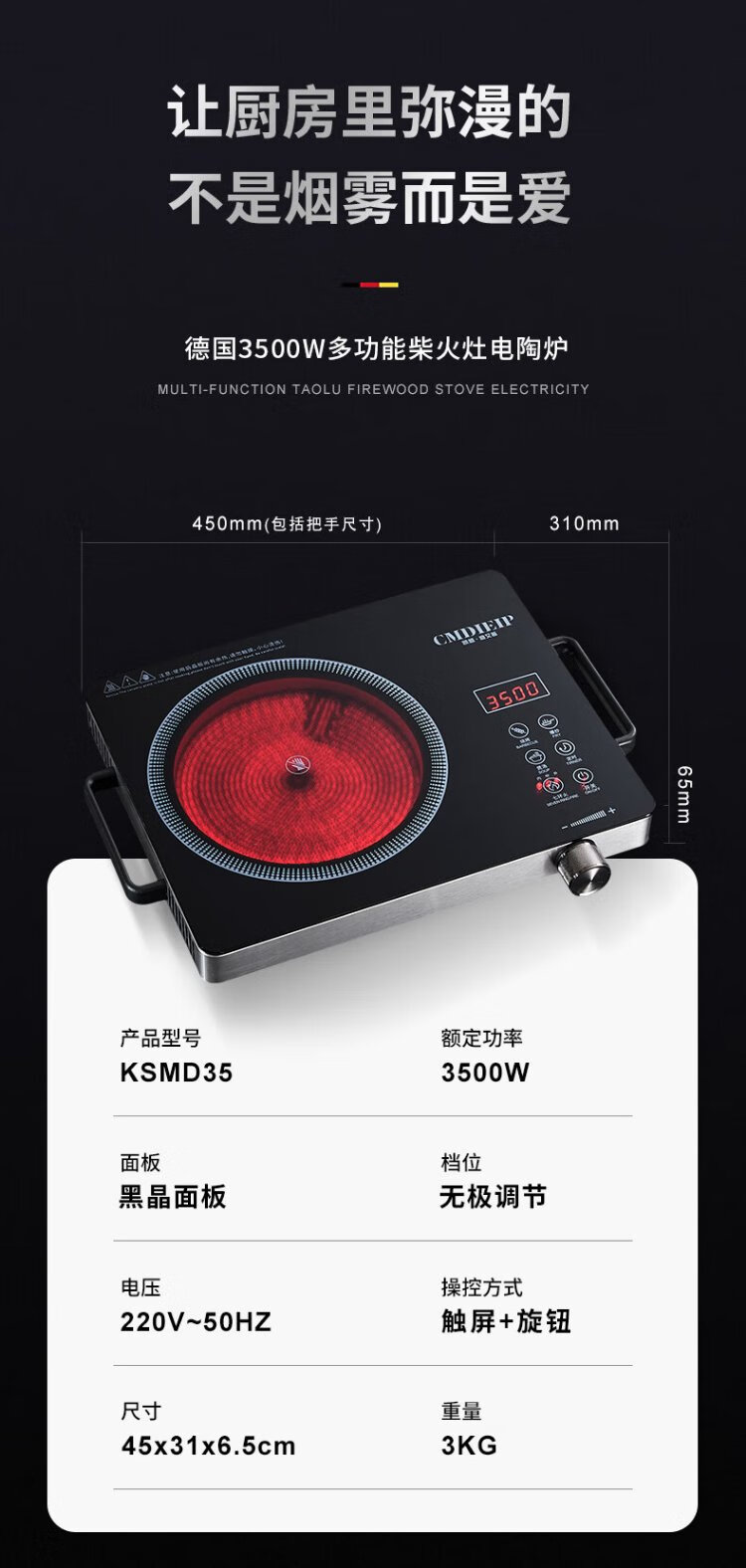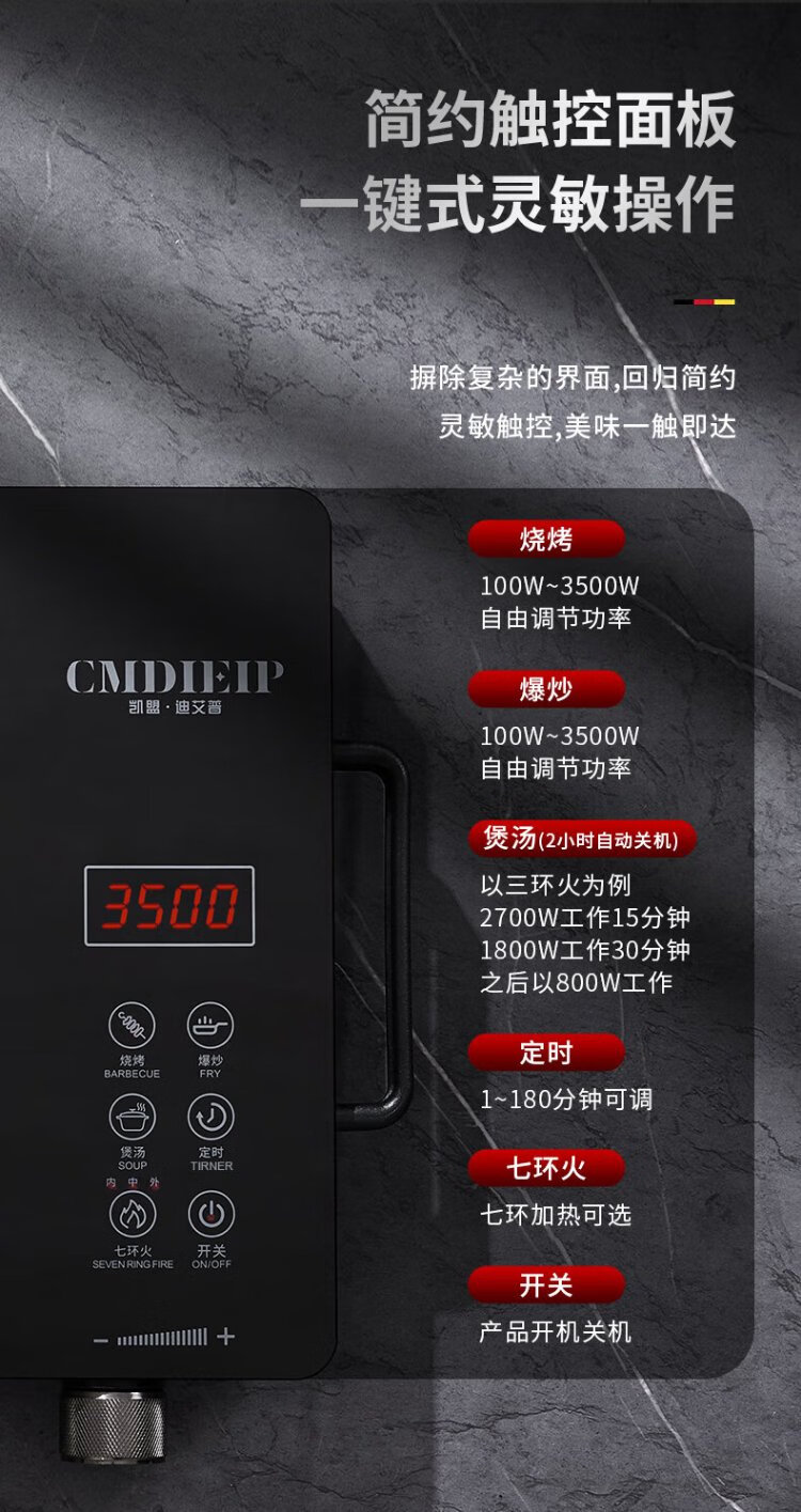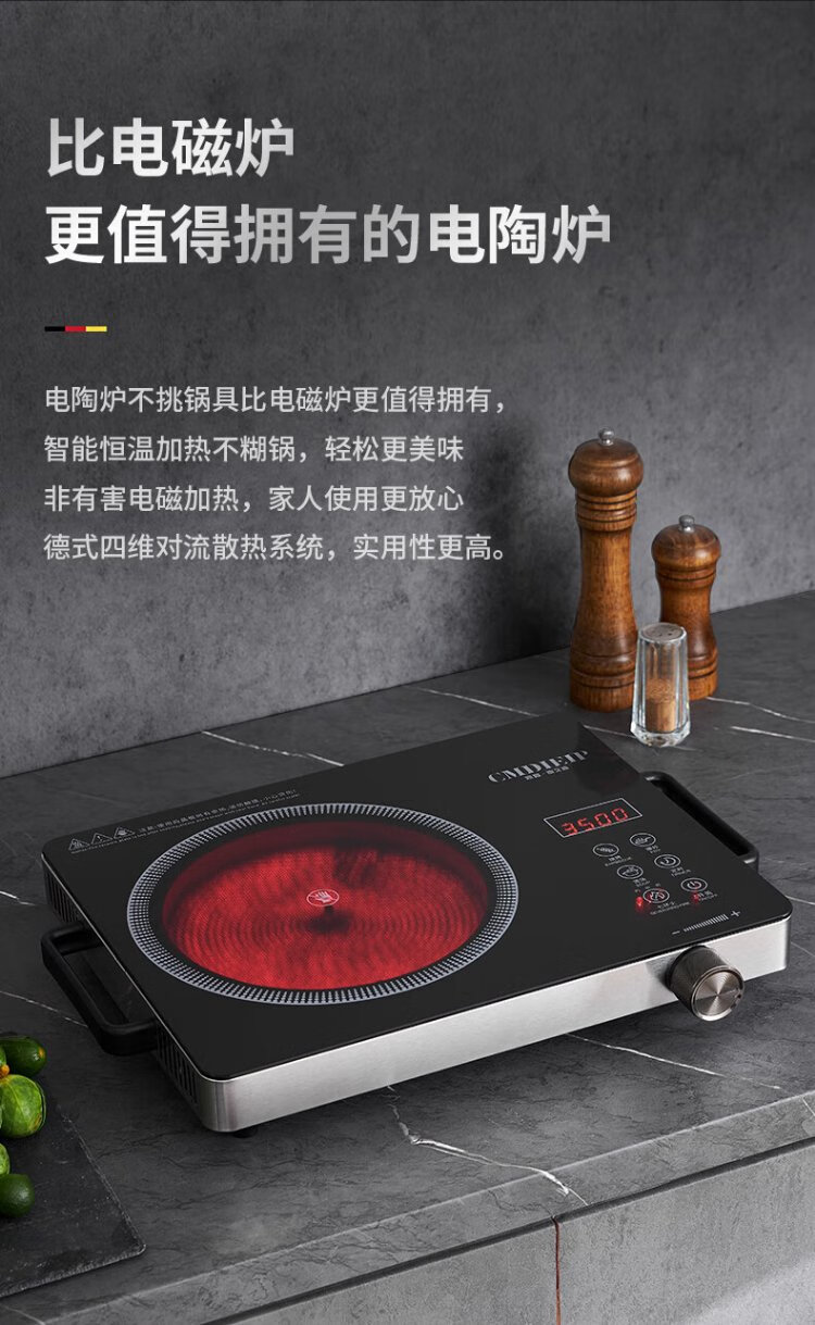 Cmdieip German Kaimeng commercial electric ceramic stove high-power electric fire stove measured 3500W fierce fire suitable for pregnant and infants without high-frequency radiation new cooking pot full set for home cooking