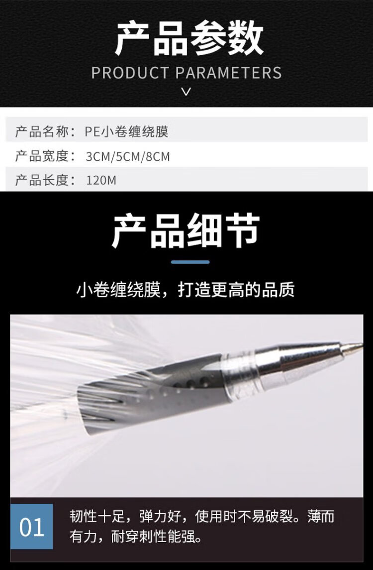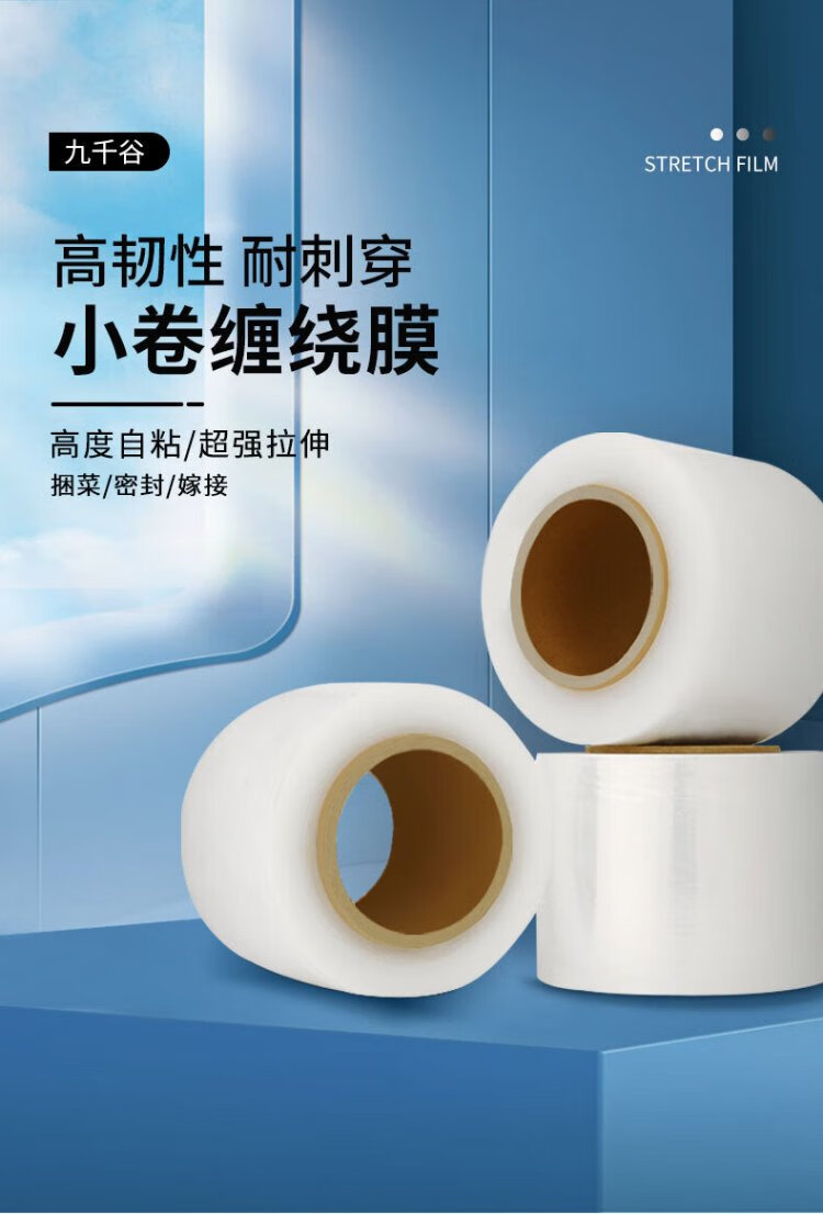 Jiuqiangu stretch film width 5cm* length 120m 6 rolls Hand-use small roll PE stretch film industrial packaging stretch film take-out leak-proof packaging box sealing cling film grafting film
