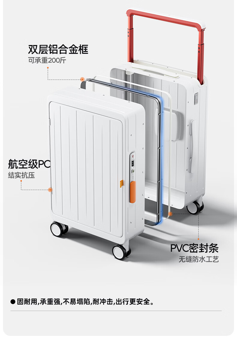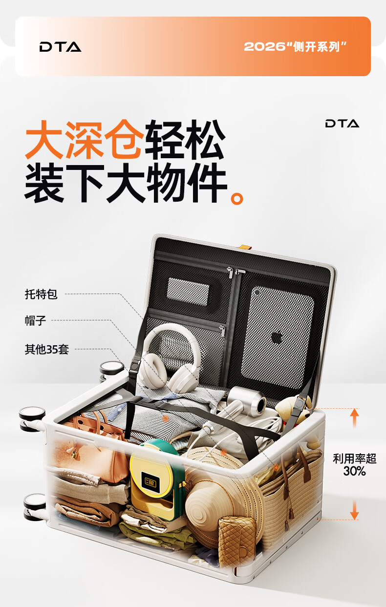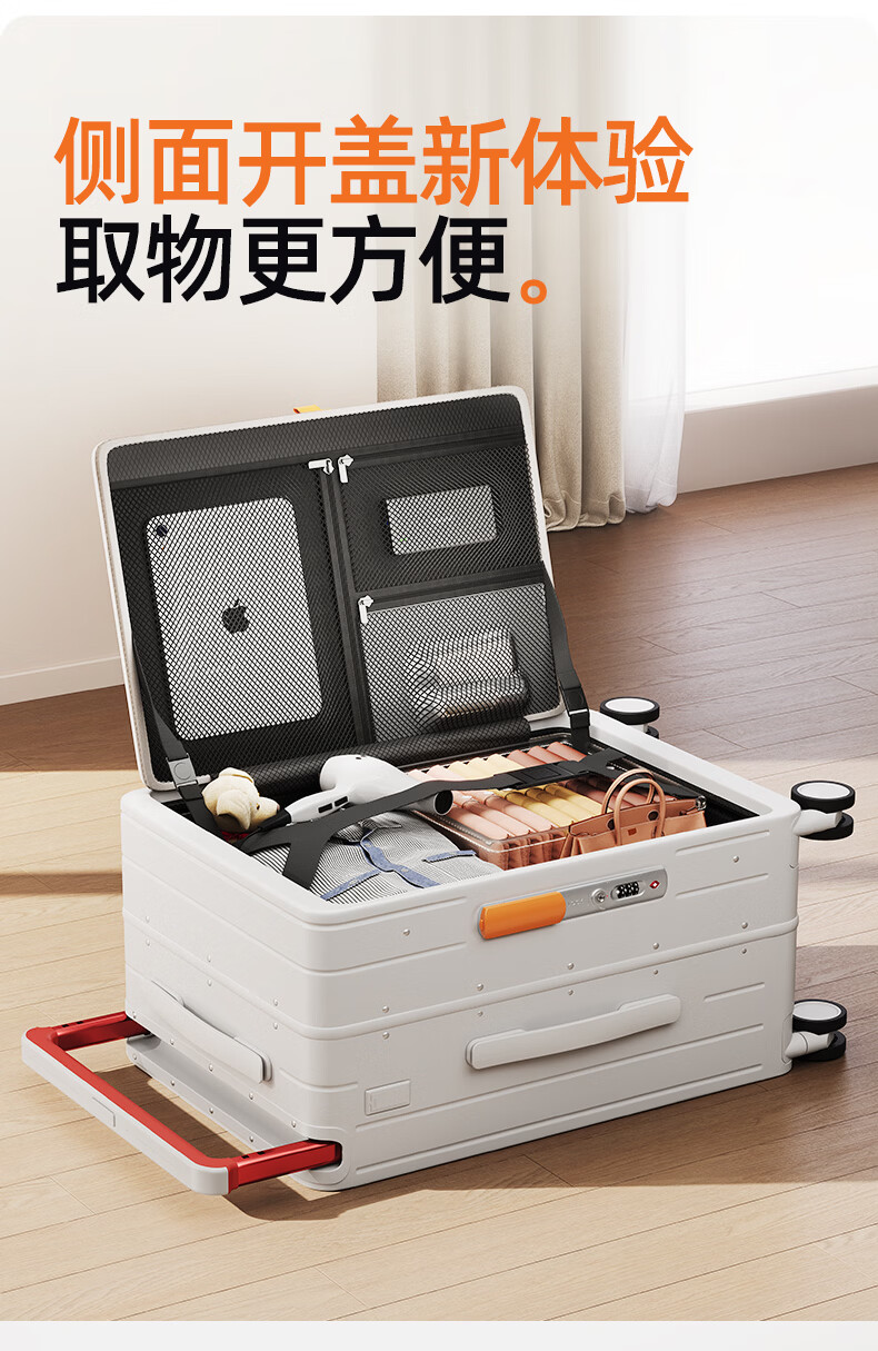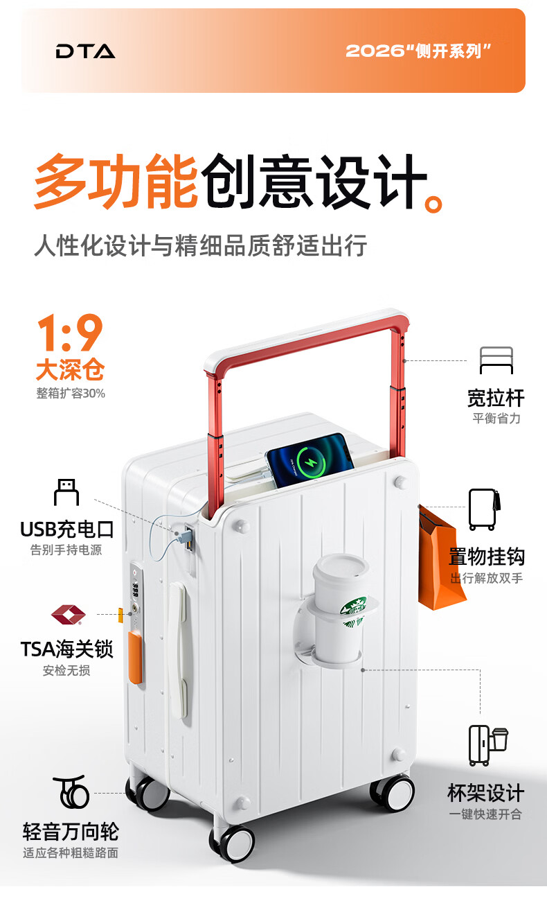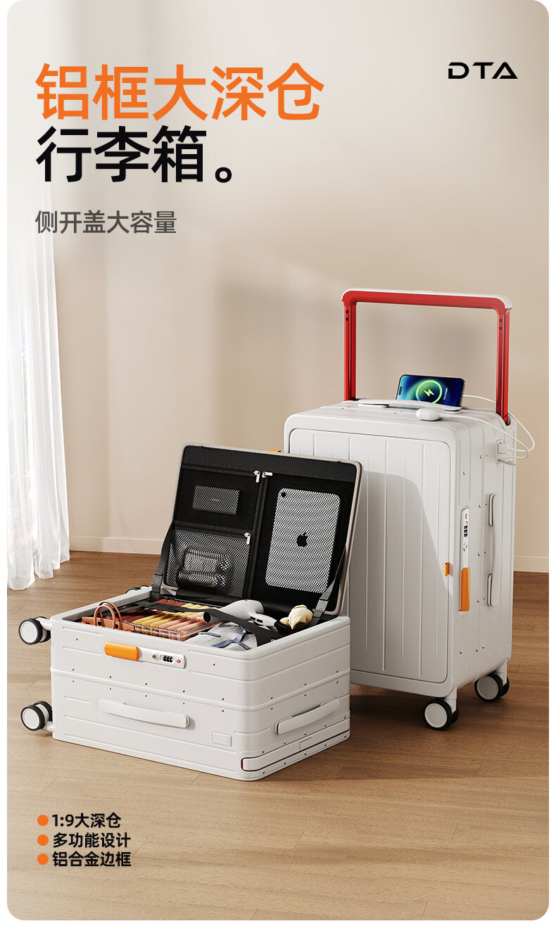 DTA side-opening suitcase large-capacity trolley case women's multi-functional password box travel leather case men's white 24 inches