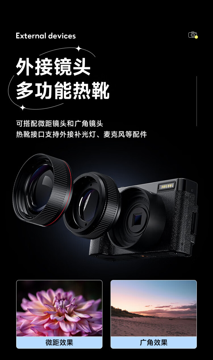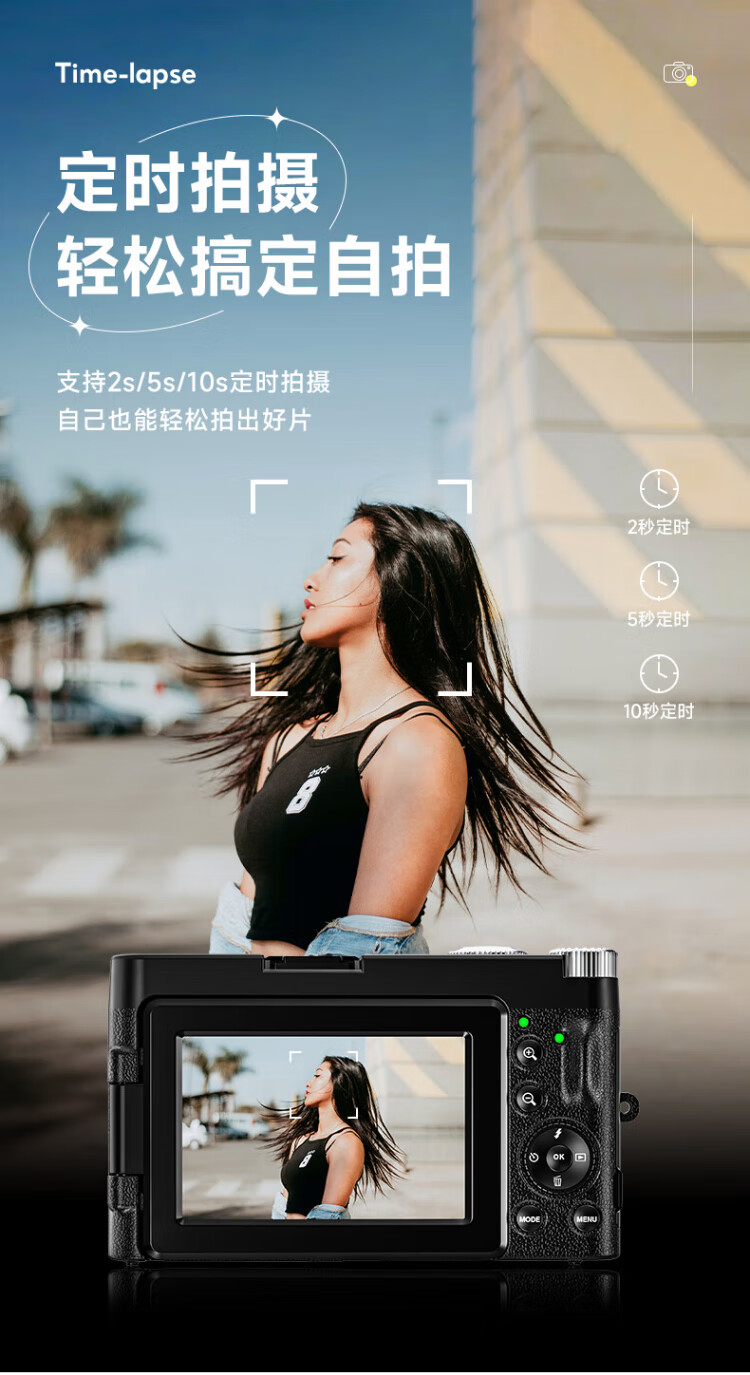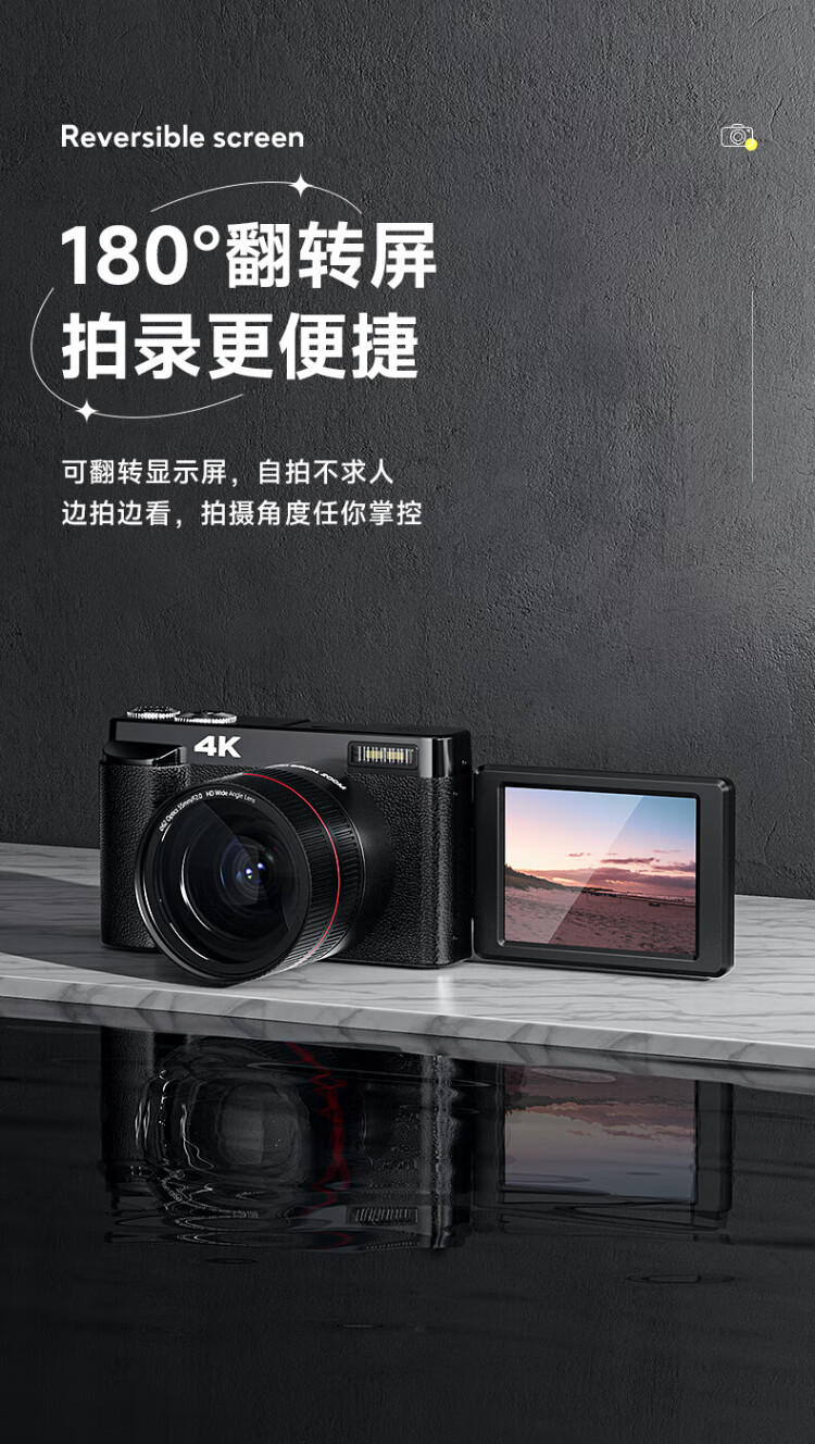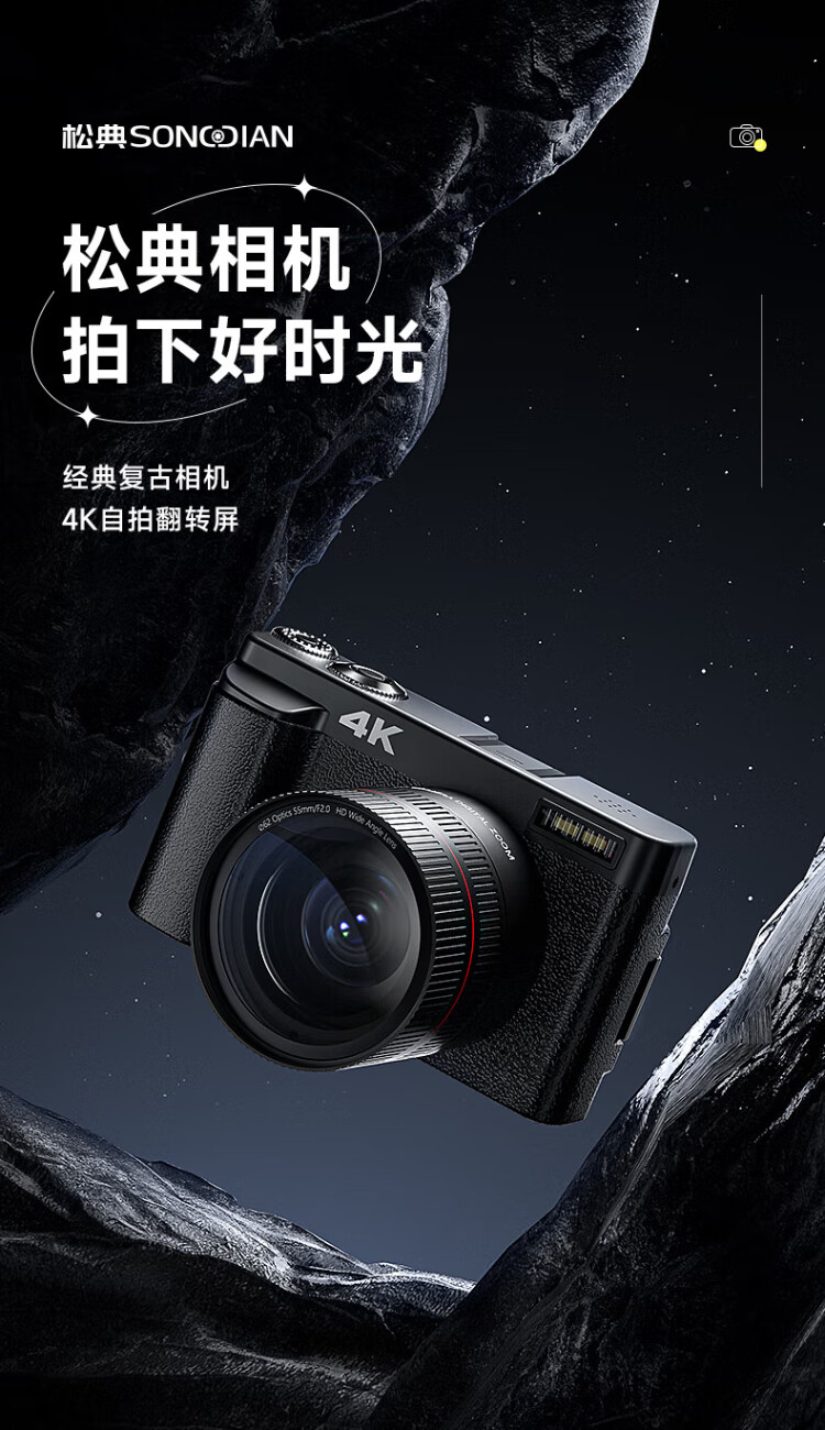 SONGDIAN digital camera replaces CCD entry-level fool mirrorless vlog video student flip selfie camera DC101AF official standard + wide-angle lens set 64G memory