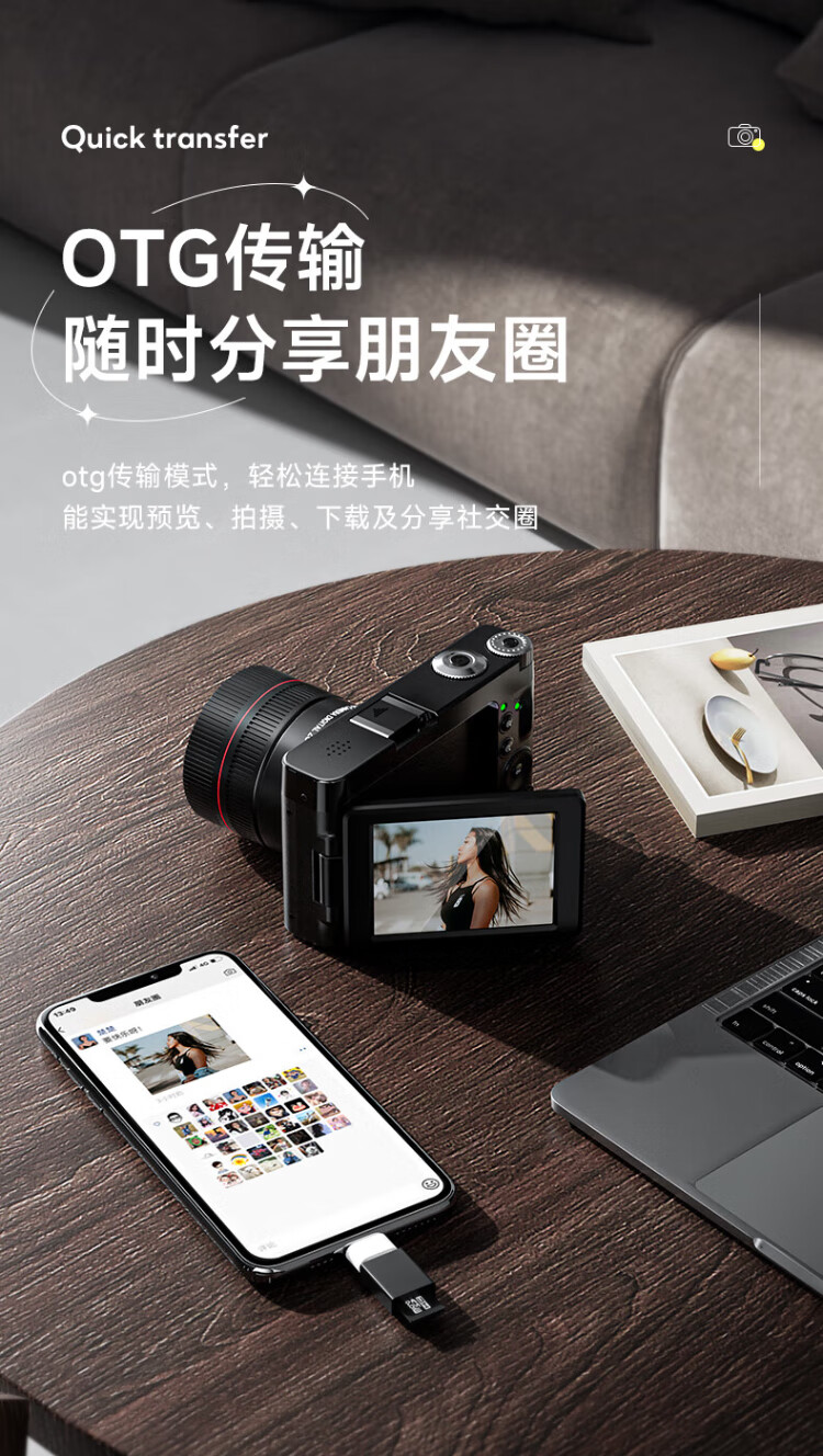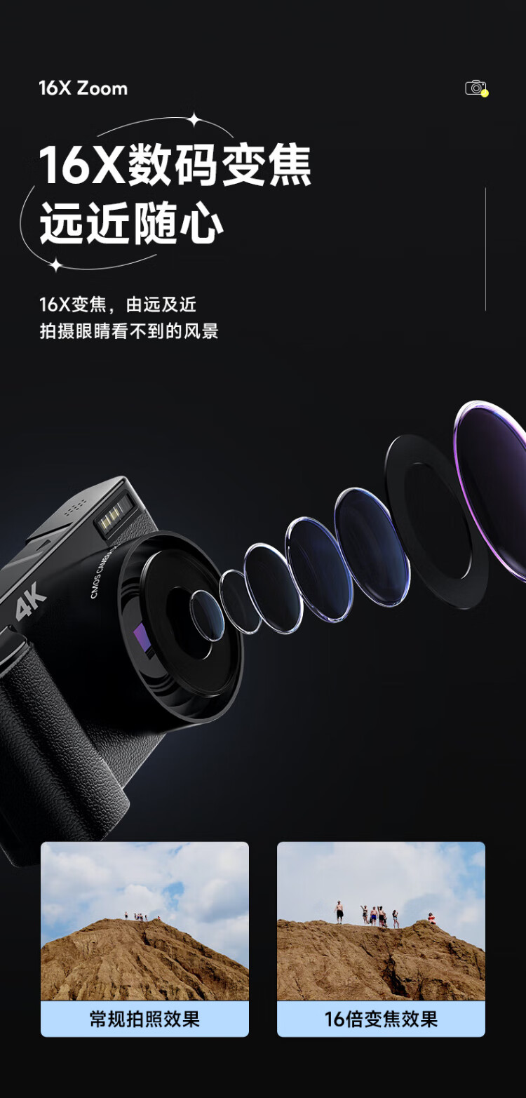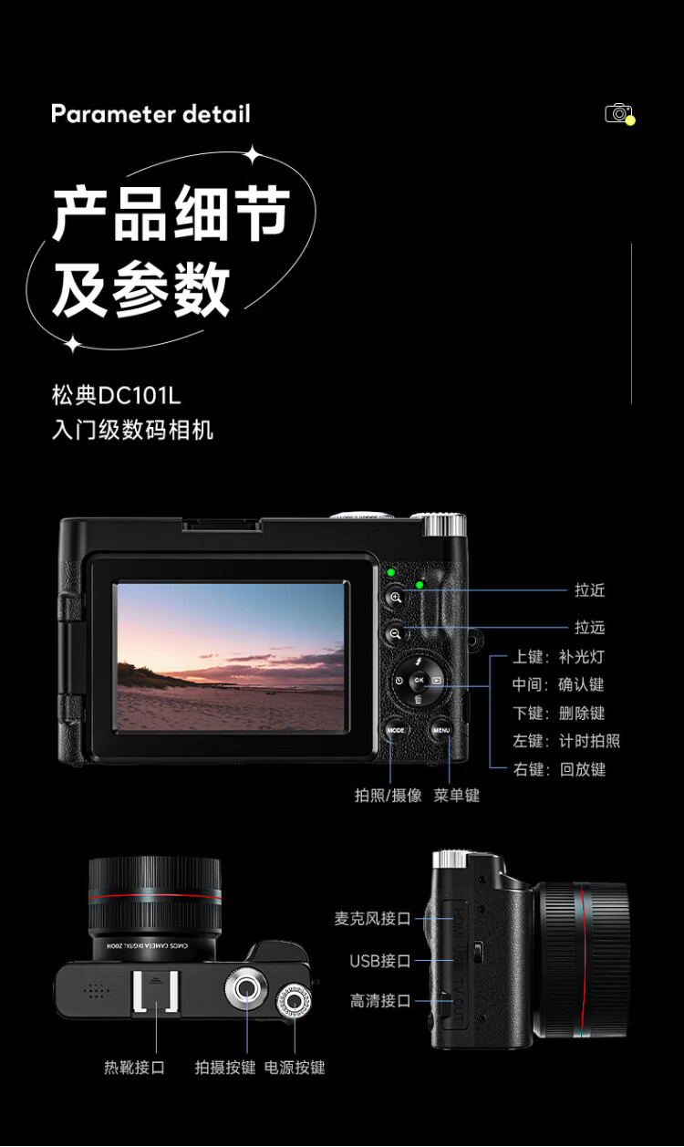 SONGDIAN digital camera replaces CCD entry-level fool mirrorless vlog video student flip selfie camera DC101AF official standard + wide-angle lens set 64G memory