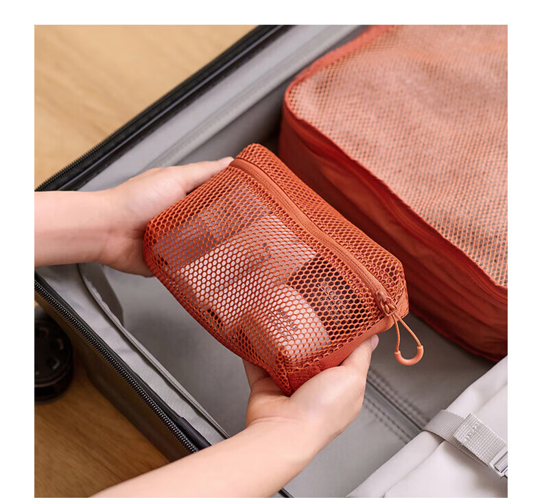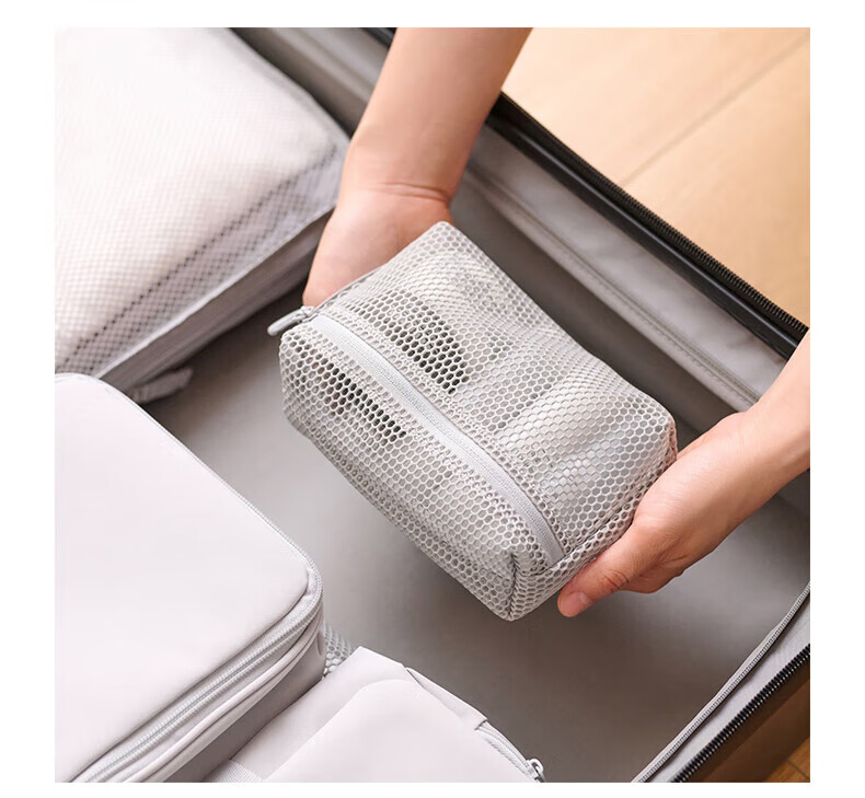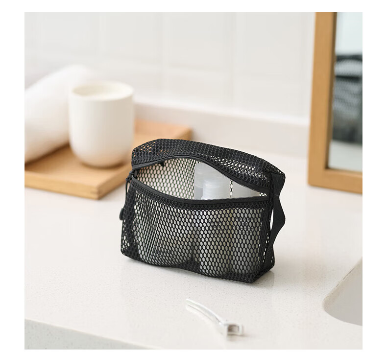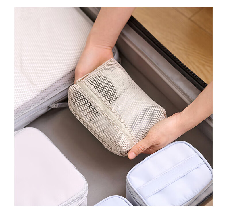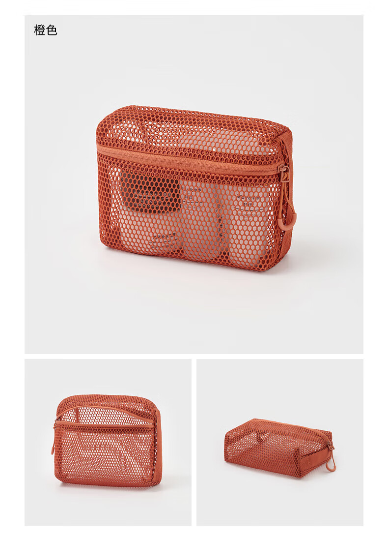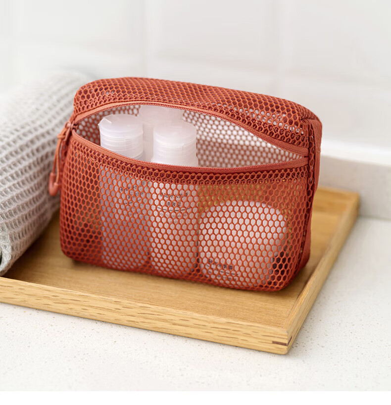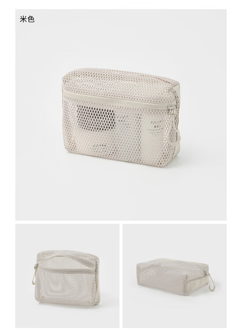 MUJI recycled polyester fiber three-dimensional mesh bag beige approximately 16x11x5cm