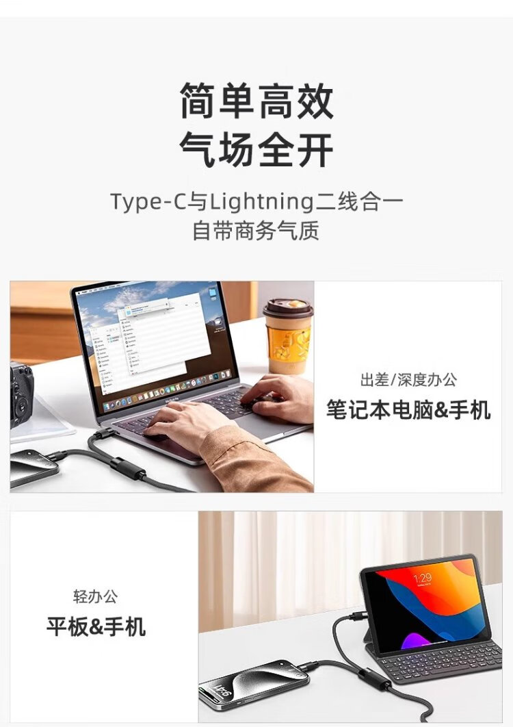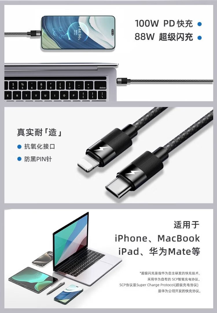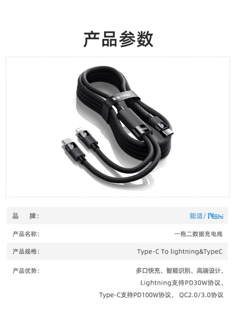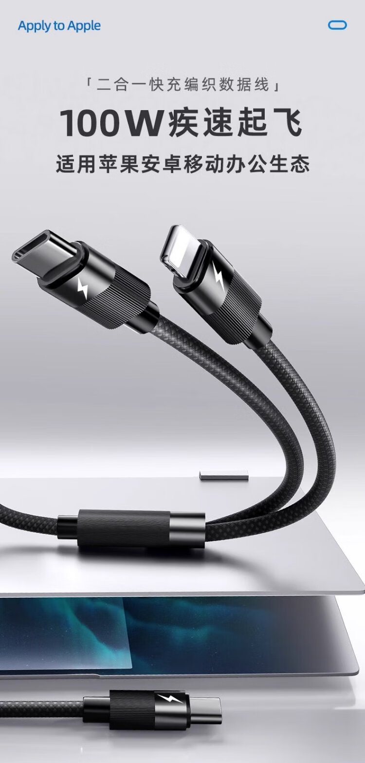 Suitable charging cable typec two-in-one Apple 15 data cable 100w fast charging suitable for Huawei Honor Xiaomi oppo notebook Switch car one to two PD1 meter black