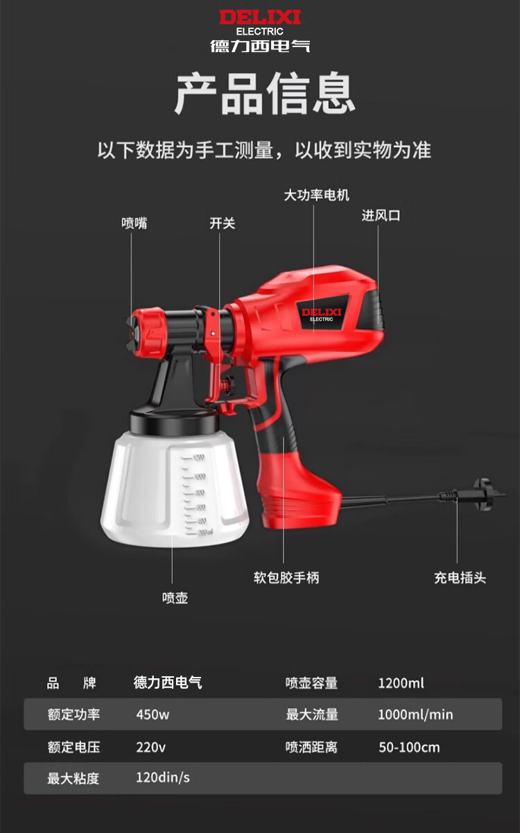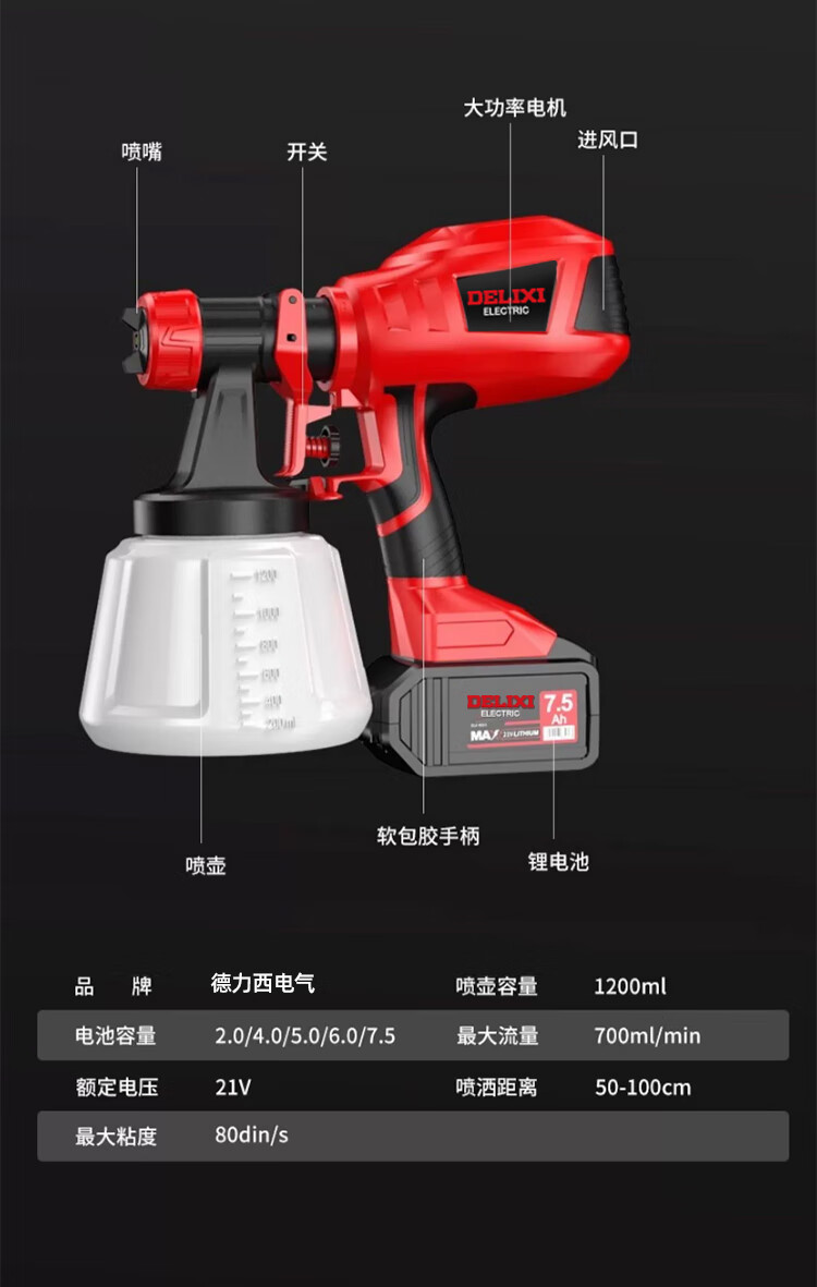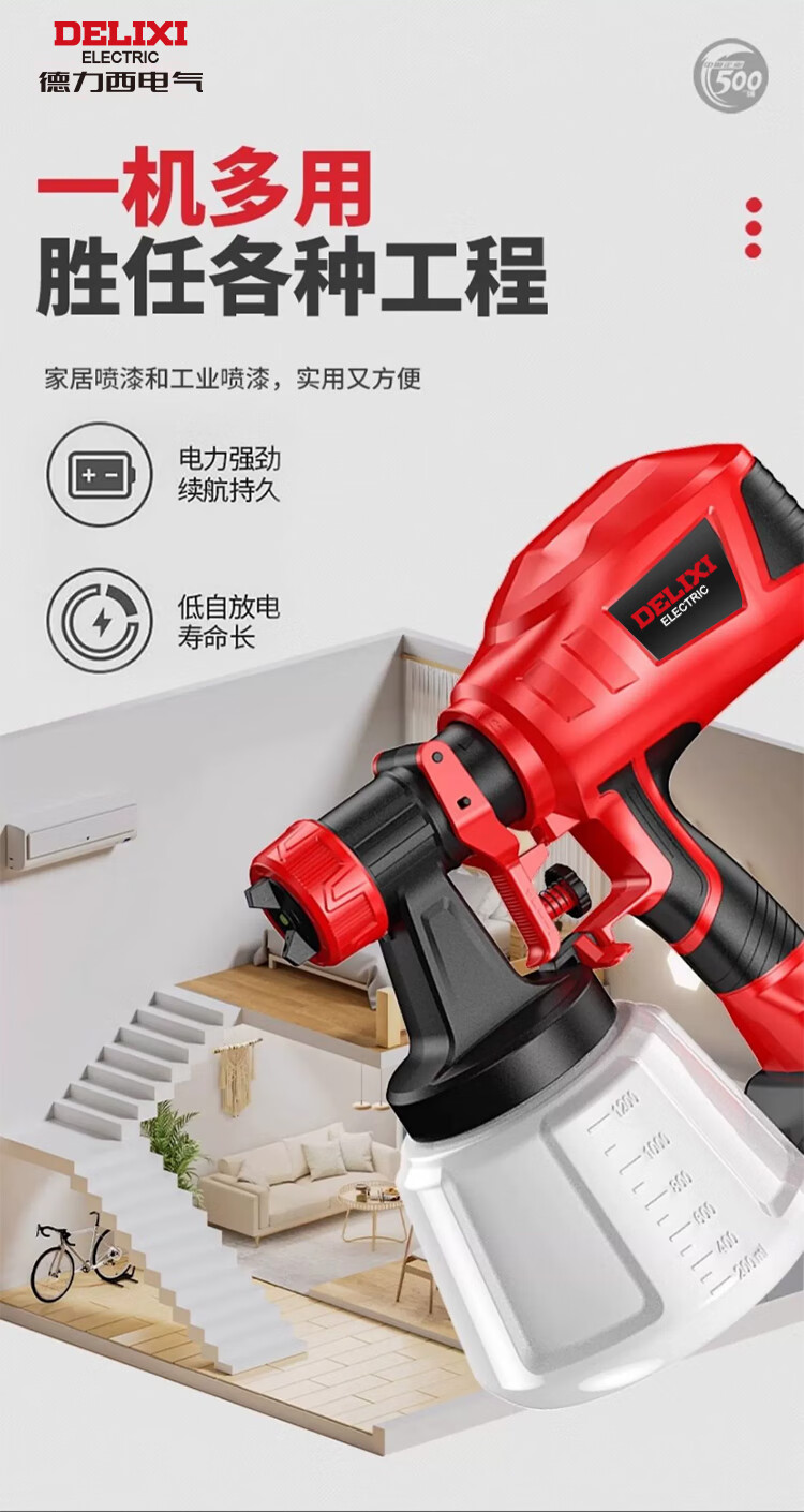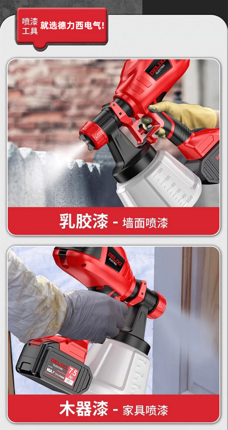 Delixi electric spray paint gun paint spray gun lithium-ion spray paint high atomization spray bottle latex paint artifact spray machine plug-in model