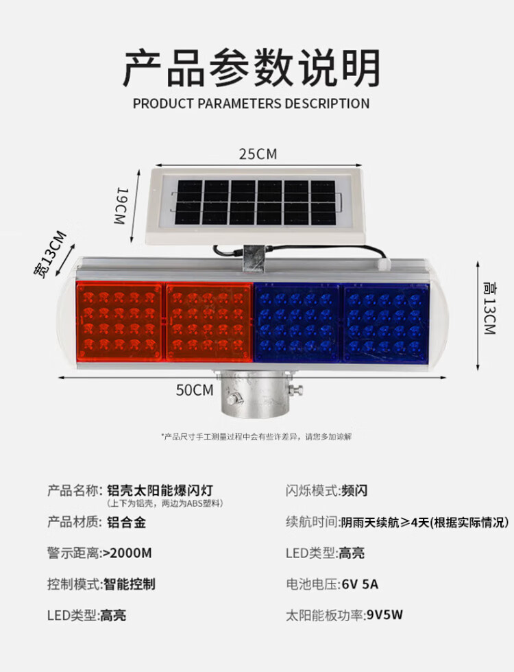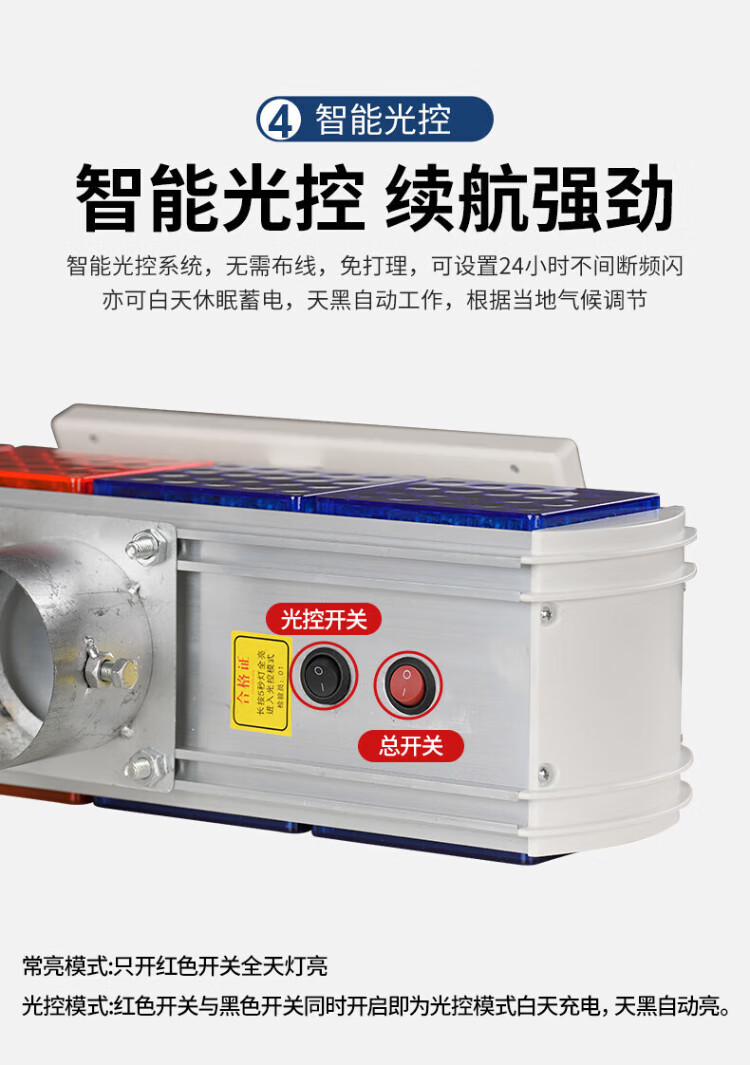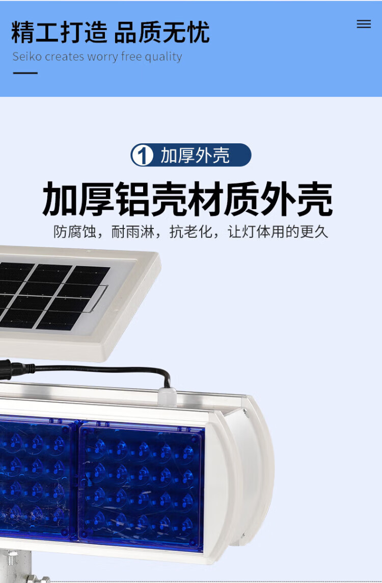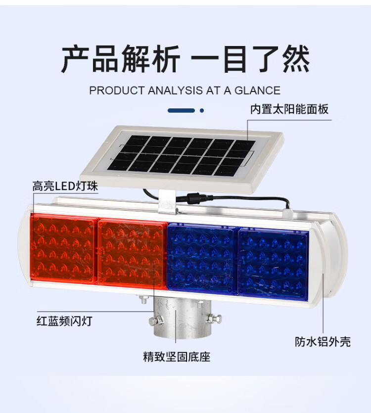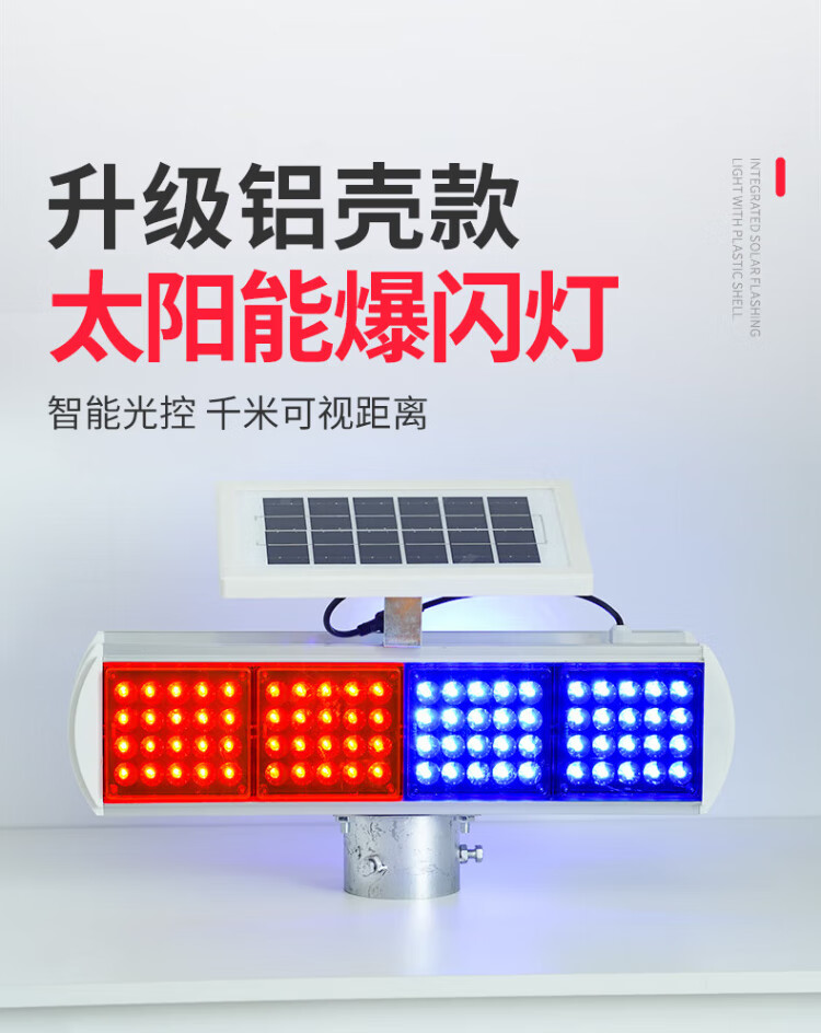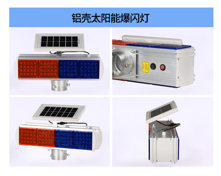 Baige solar flash warning light, road traffic construction barricade light, nighttime highway strobe LED signal indicator light, aluminum alloy four-light double-sided split model