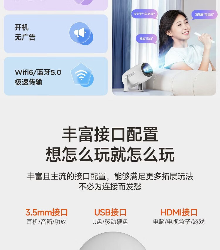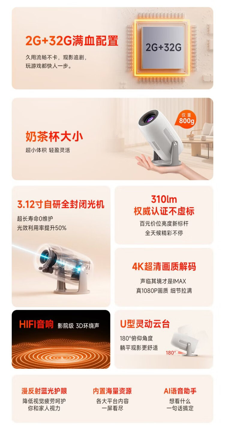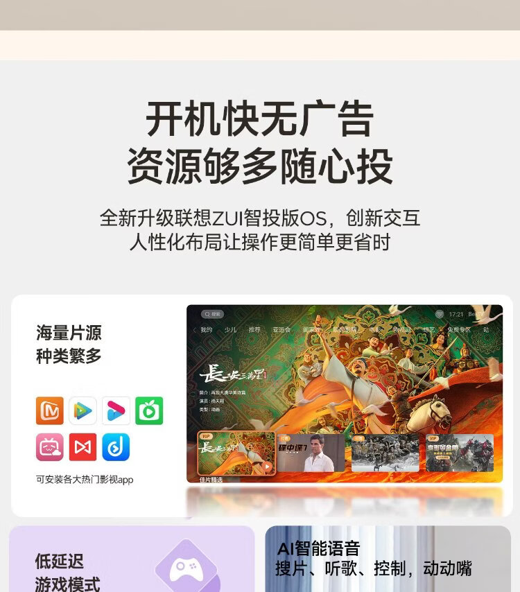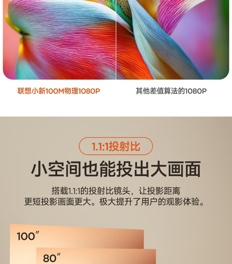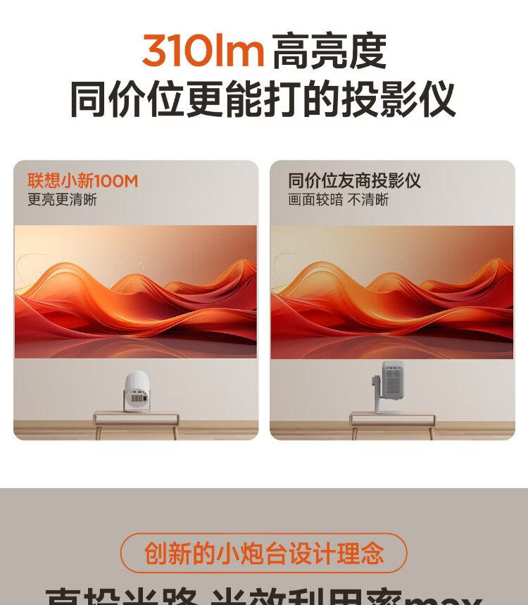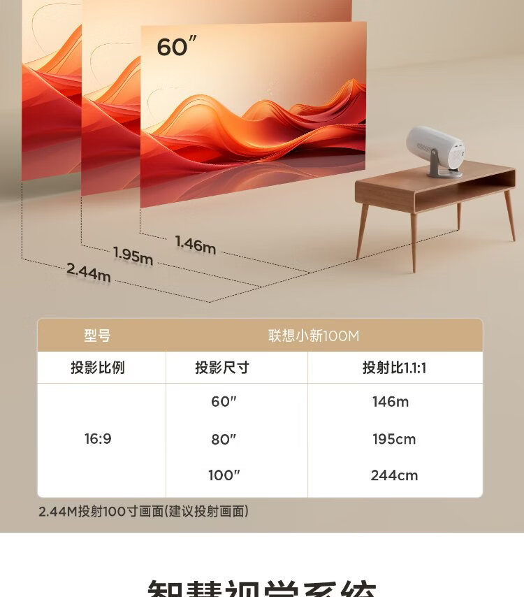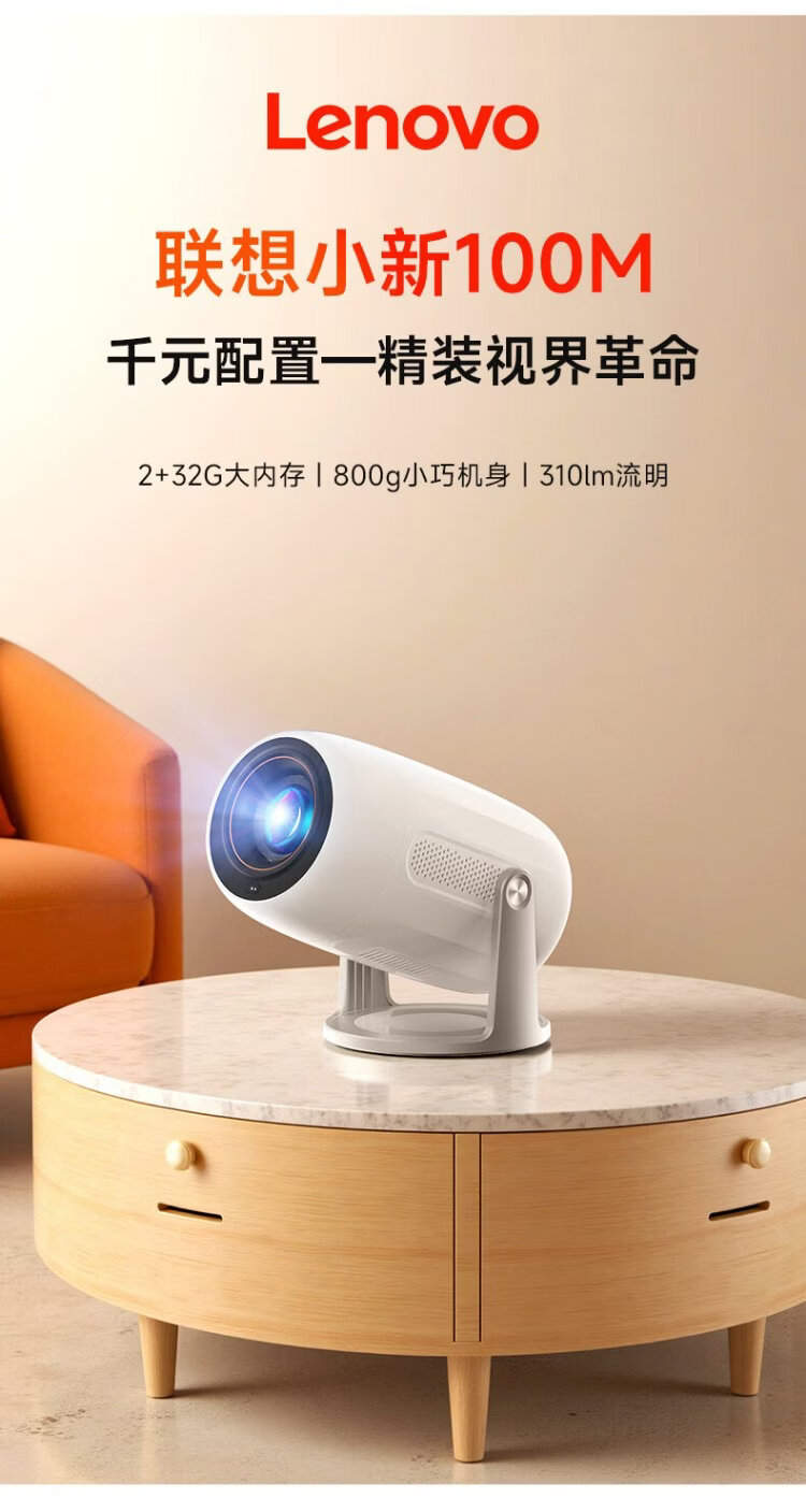 Lenovo 2025 Xiaoxin 100M PTZ Projector Residential Home 1080P HD Smart Portable Home Bedroom Theater Projector (2+32G Laser Focus)