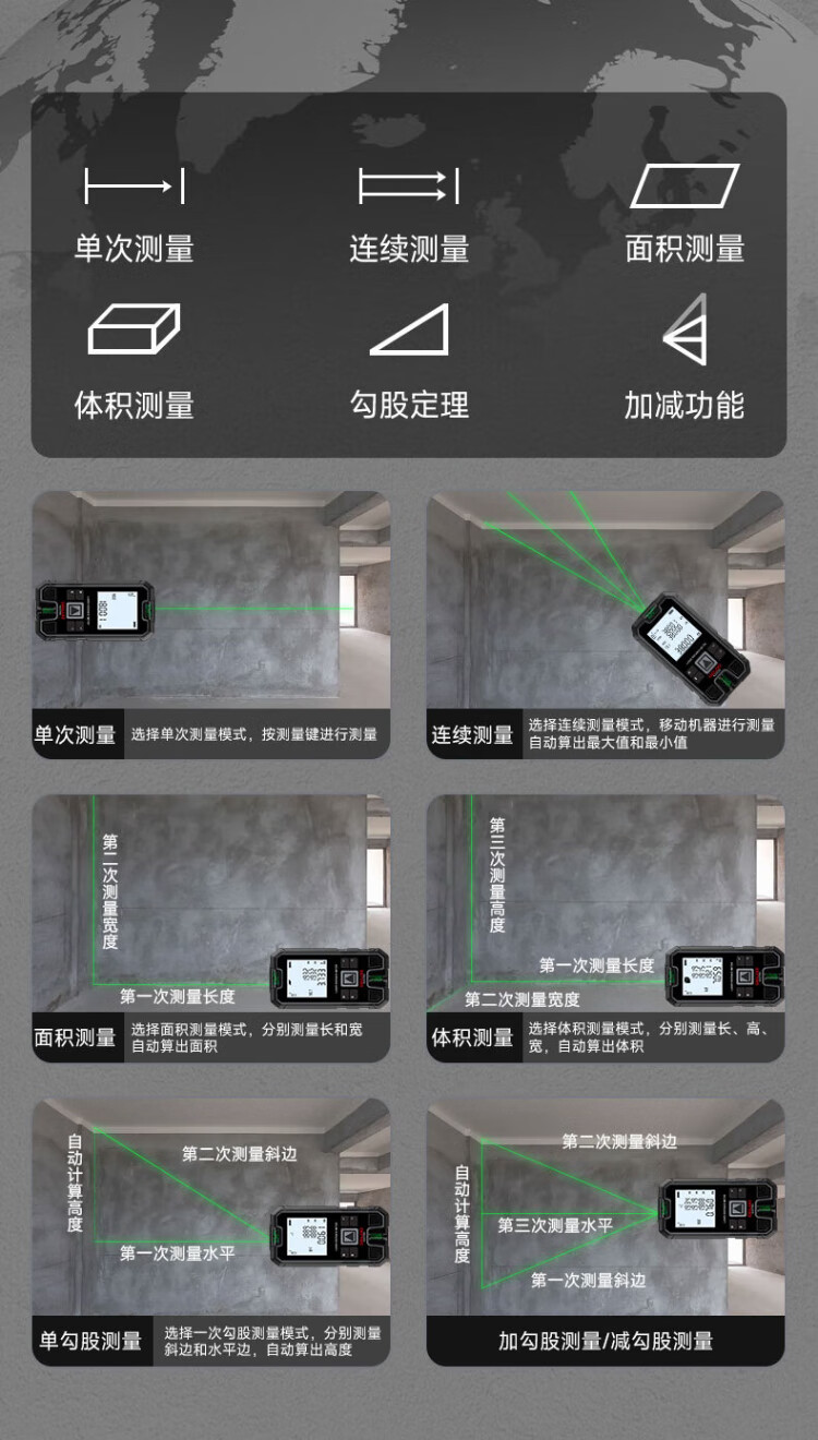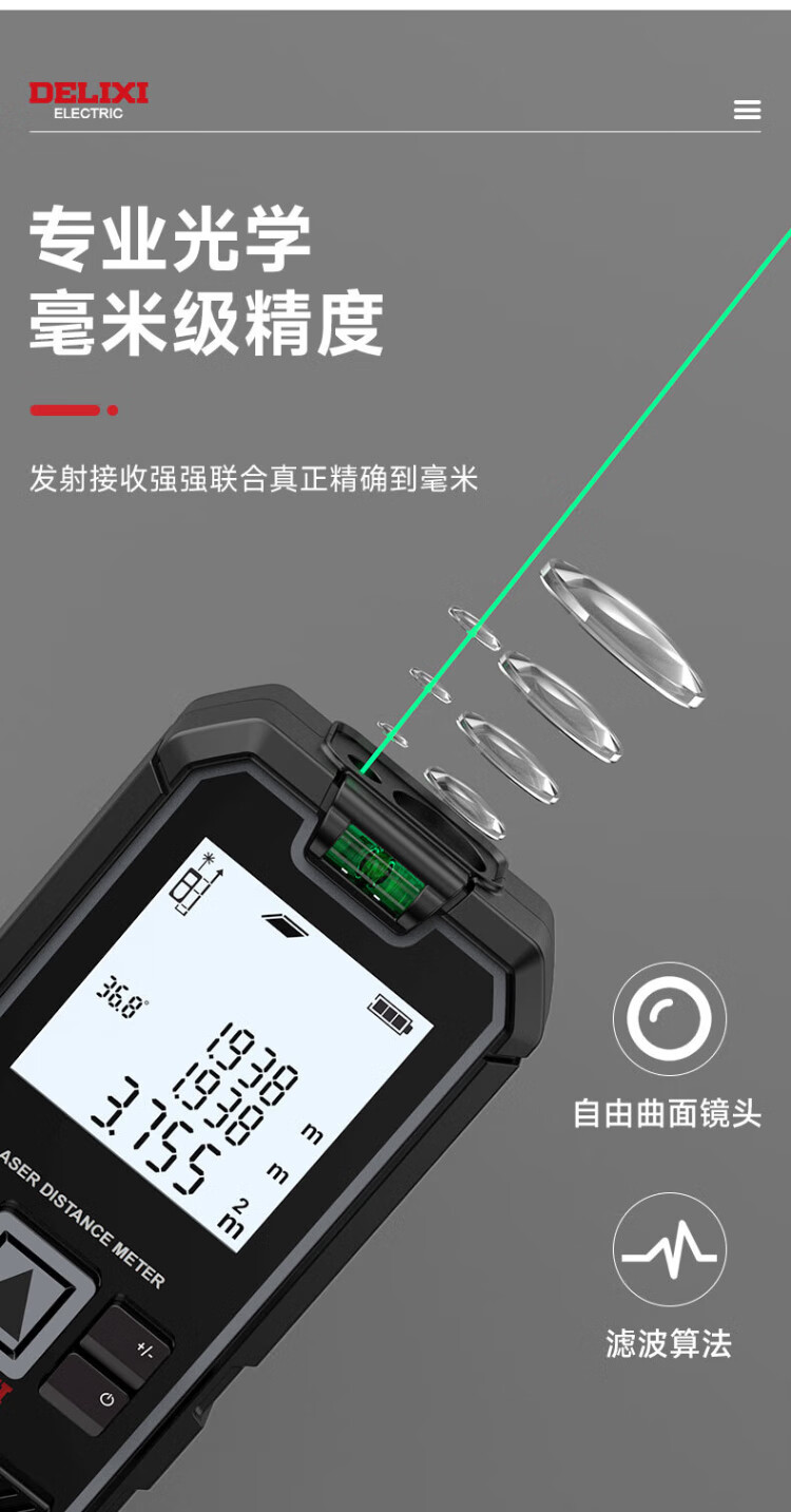 DELIXI ELECTRIC rangefinder green light laser ruler handheld millimeter high-precision electronic ruler household room measuring instrument lithium battery voice model 120m