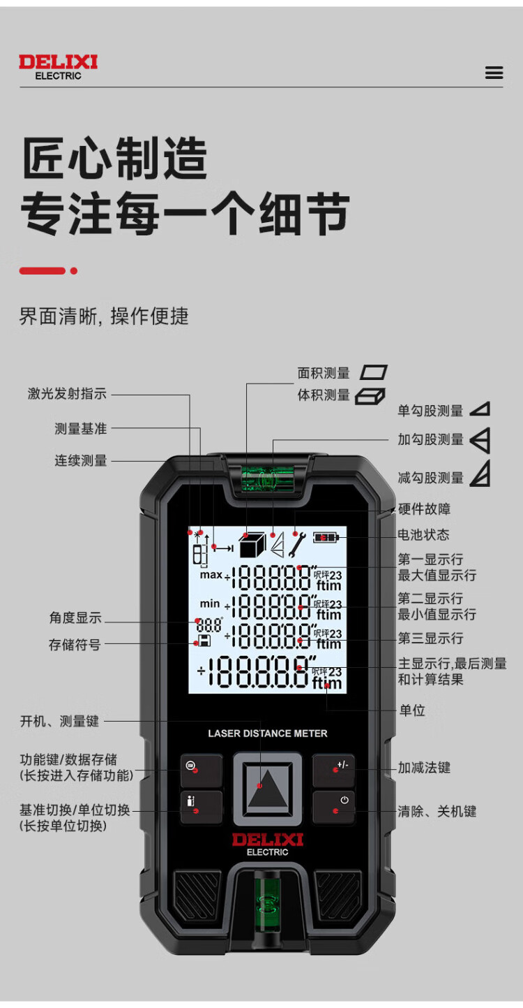 DELIXI ELECTRIC rangefinder green light laser ruler handheld millimeter high-precision electronic ruler household room measuring instrument lithium battery voice model 100m