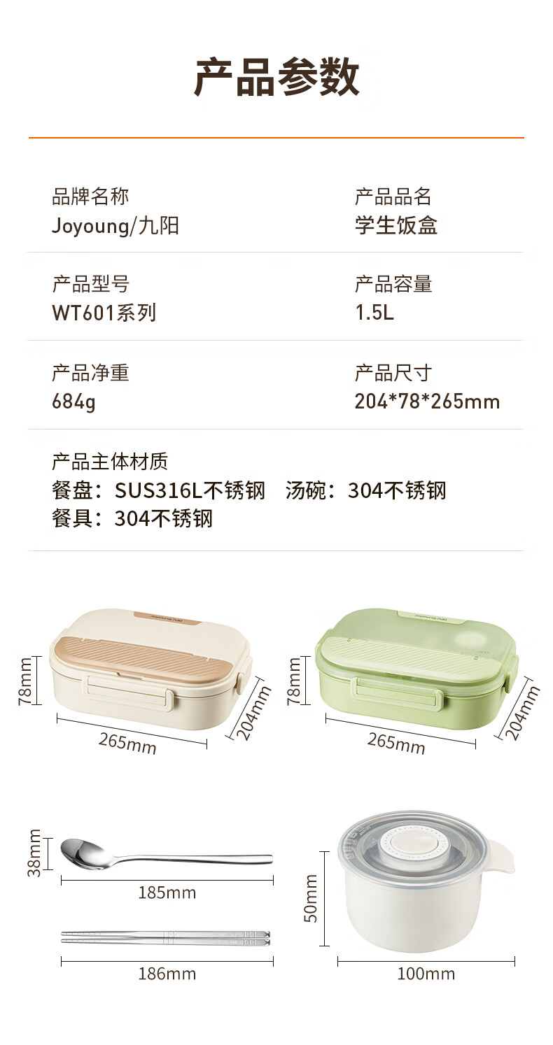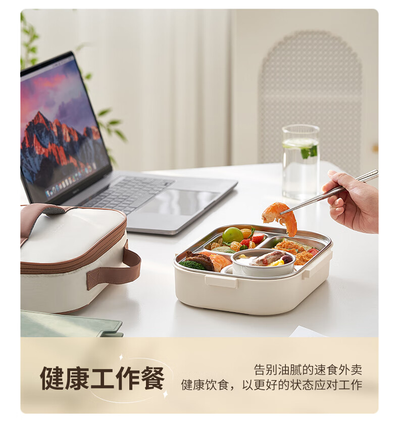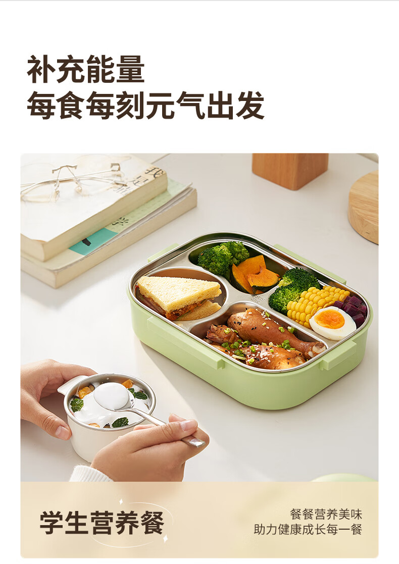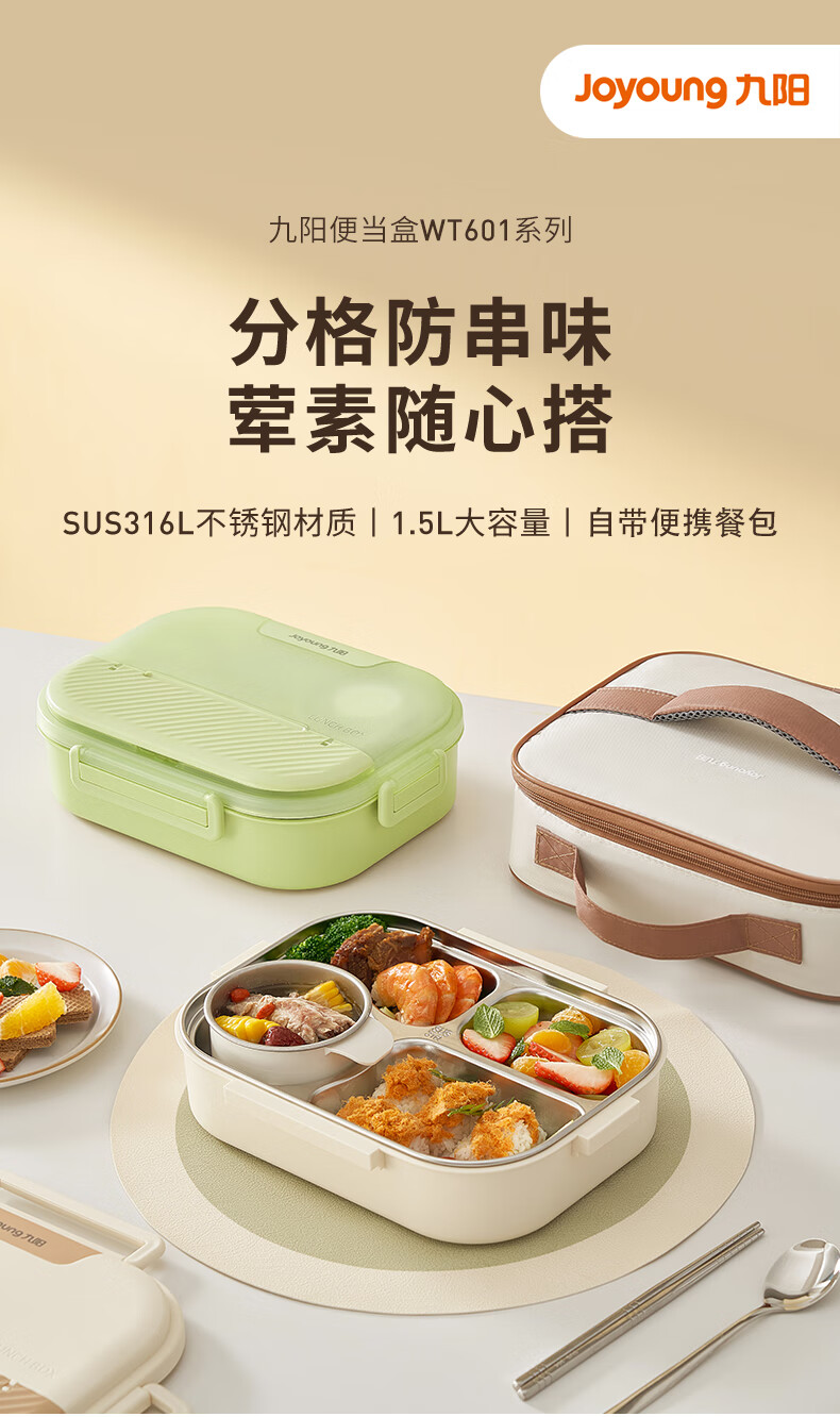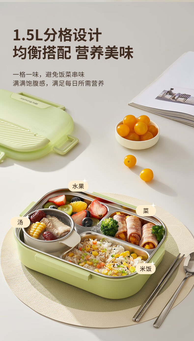 Joyoung 316L lunch box for students and office workers with chopsticks and spoons large capacity four-compartment lunch box 1500ML white